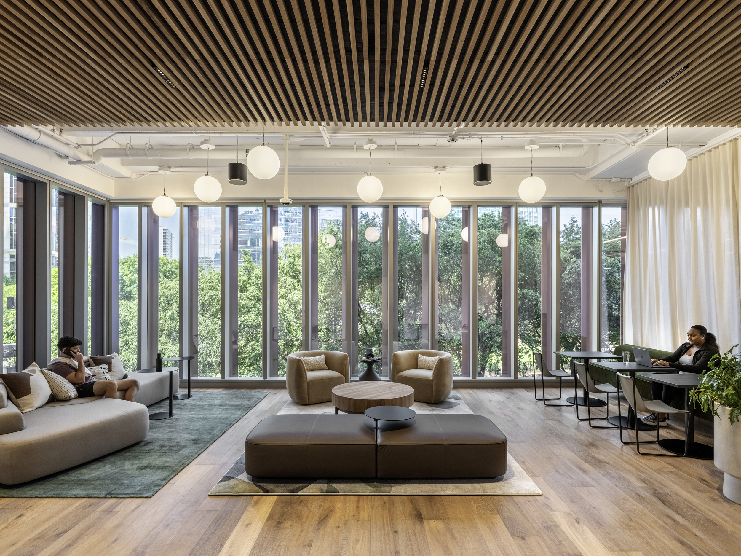“By deploying one of architecture's oldest structural principles - the timber post and beam - into a collective swarm, the Bloomberg Student Center becomes an embodiment of activity, diversity, and togetherness. The central 'living room' tying the spaces together is sure to become a new arena for both expressing and witnessing the student experience at Johns Hopkins.”