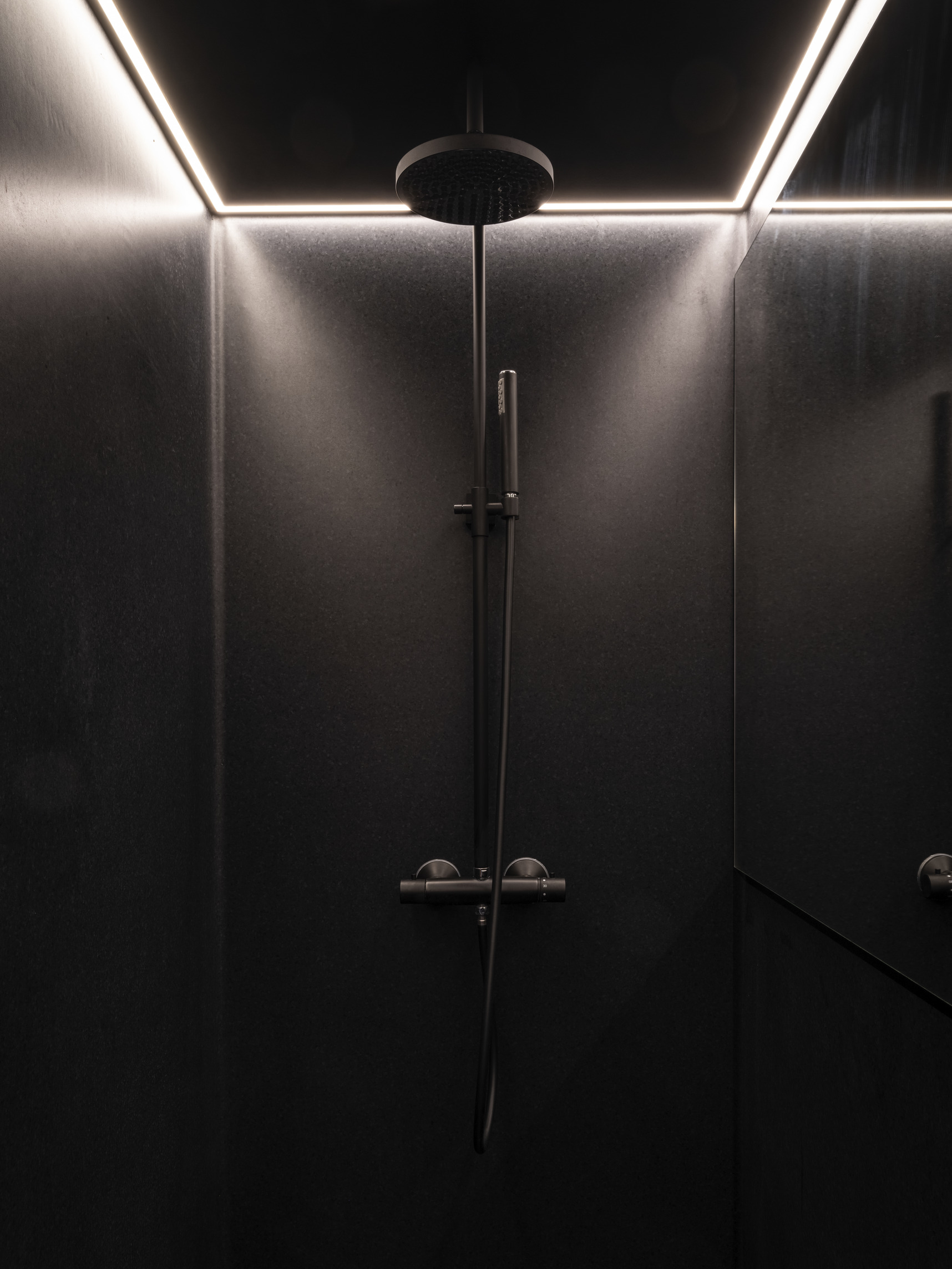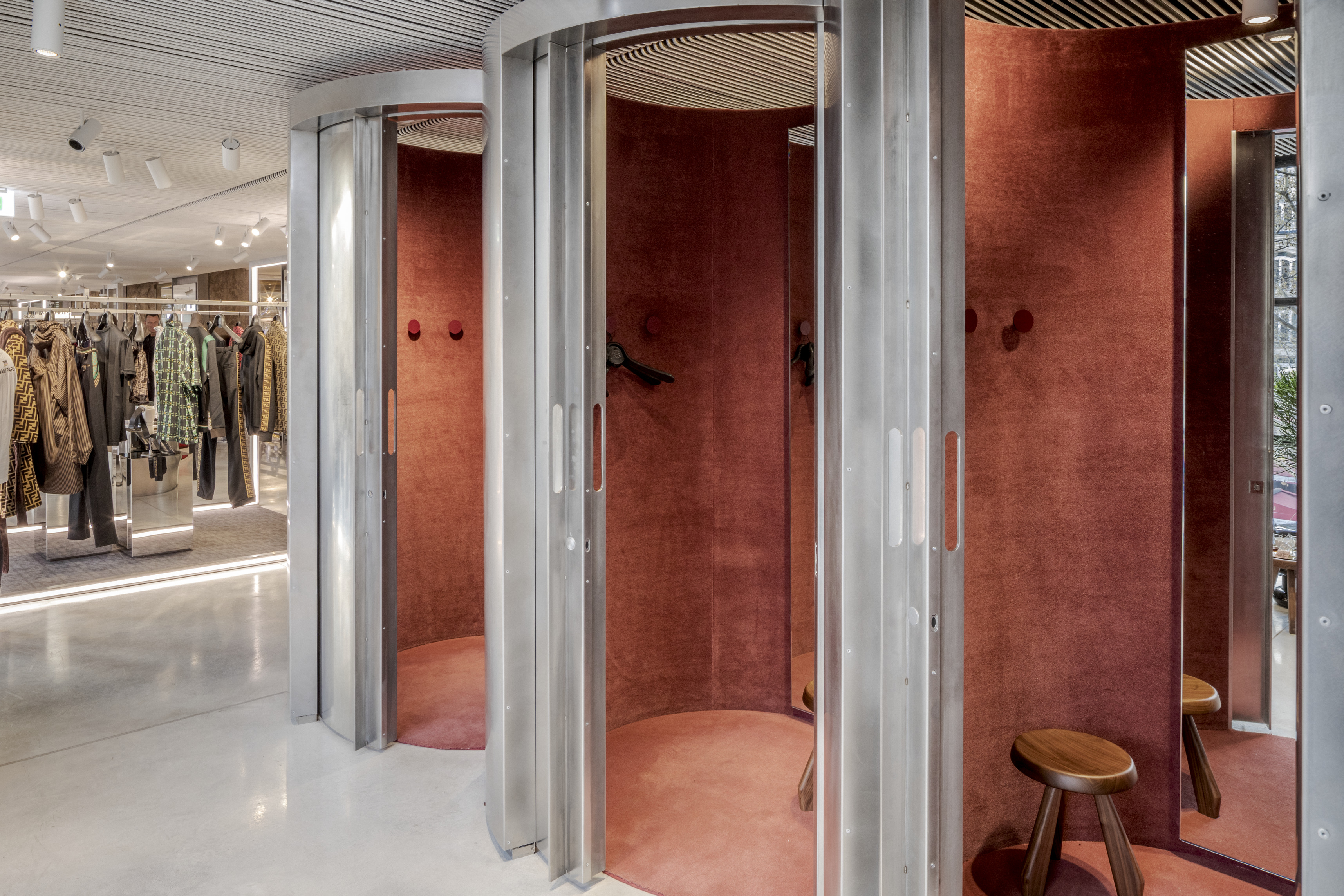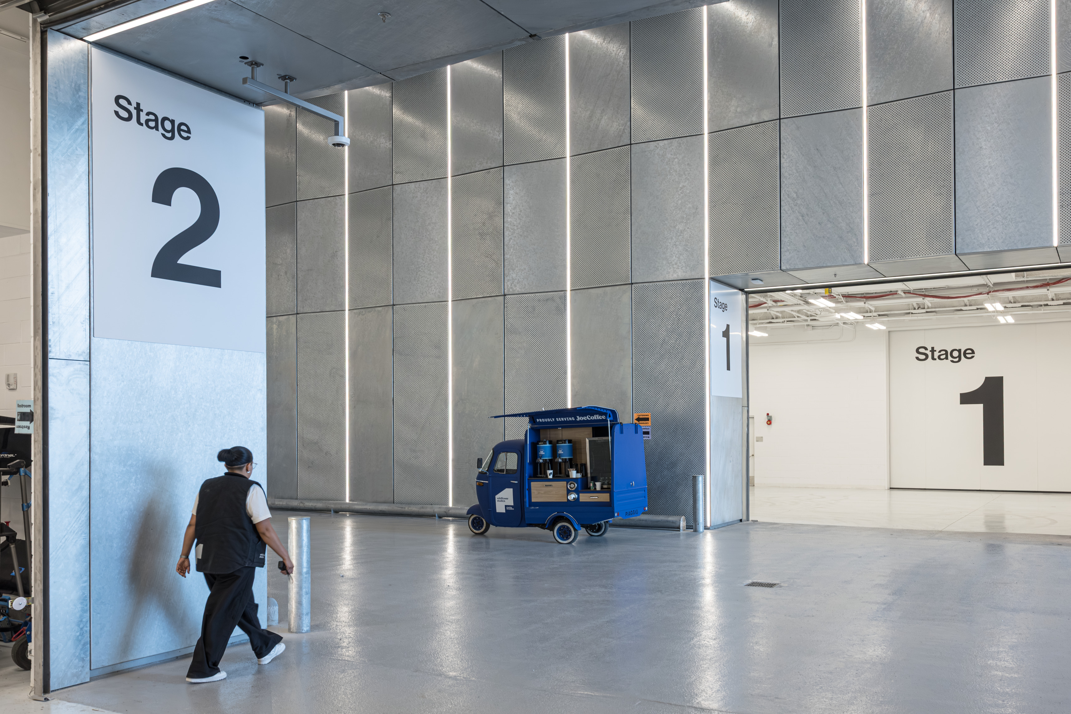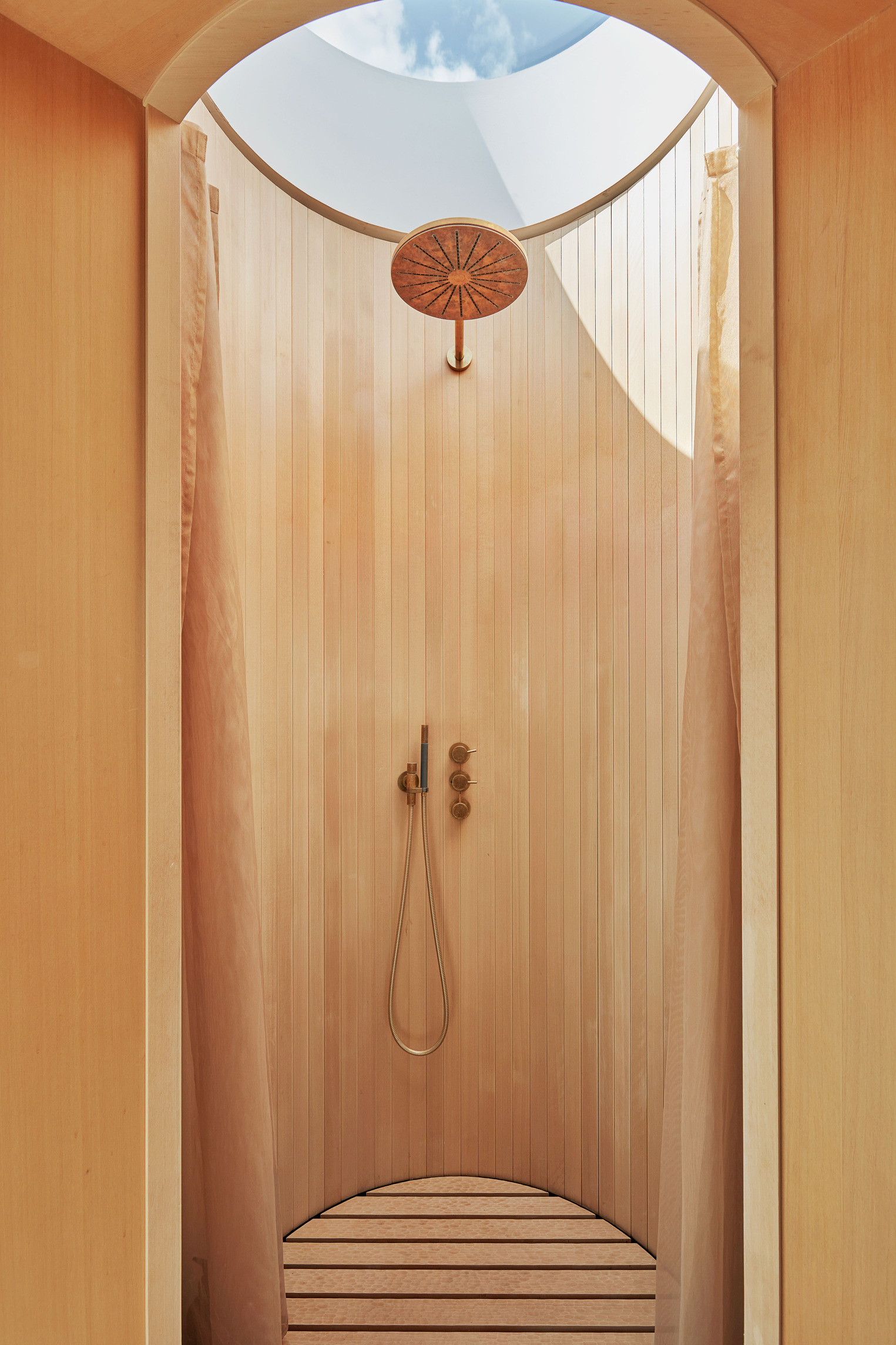 Inside, natural light enters through clerestories and skylights, animating the galleries with a play of shadow and reflection.