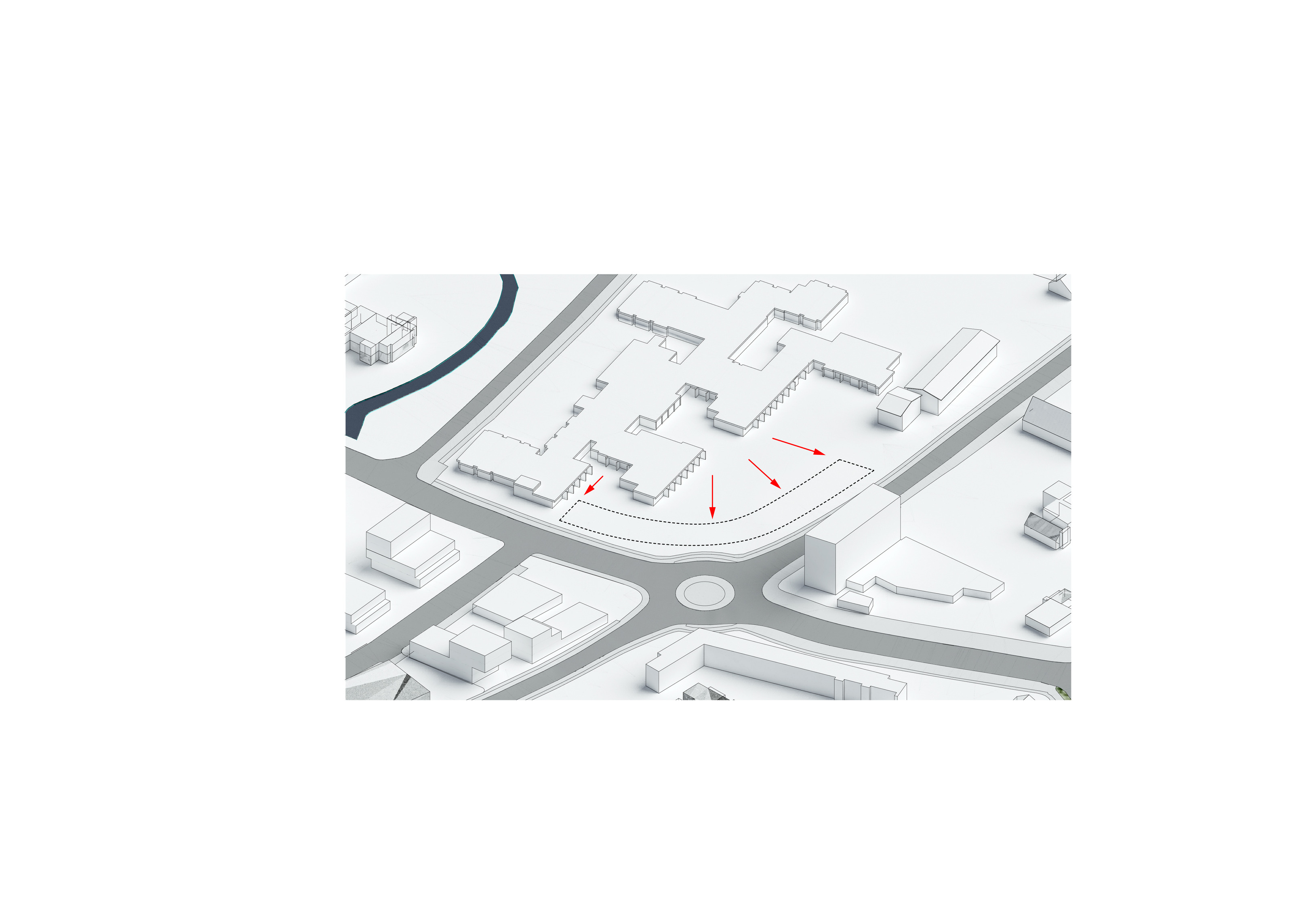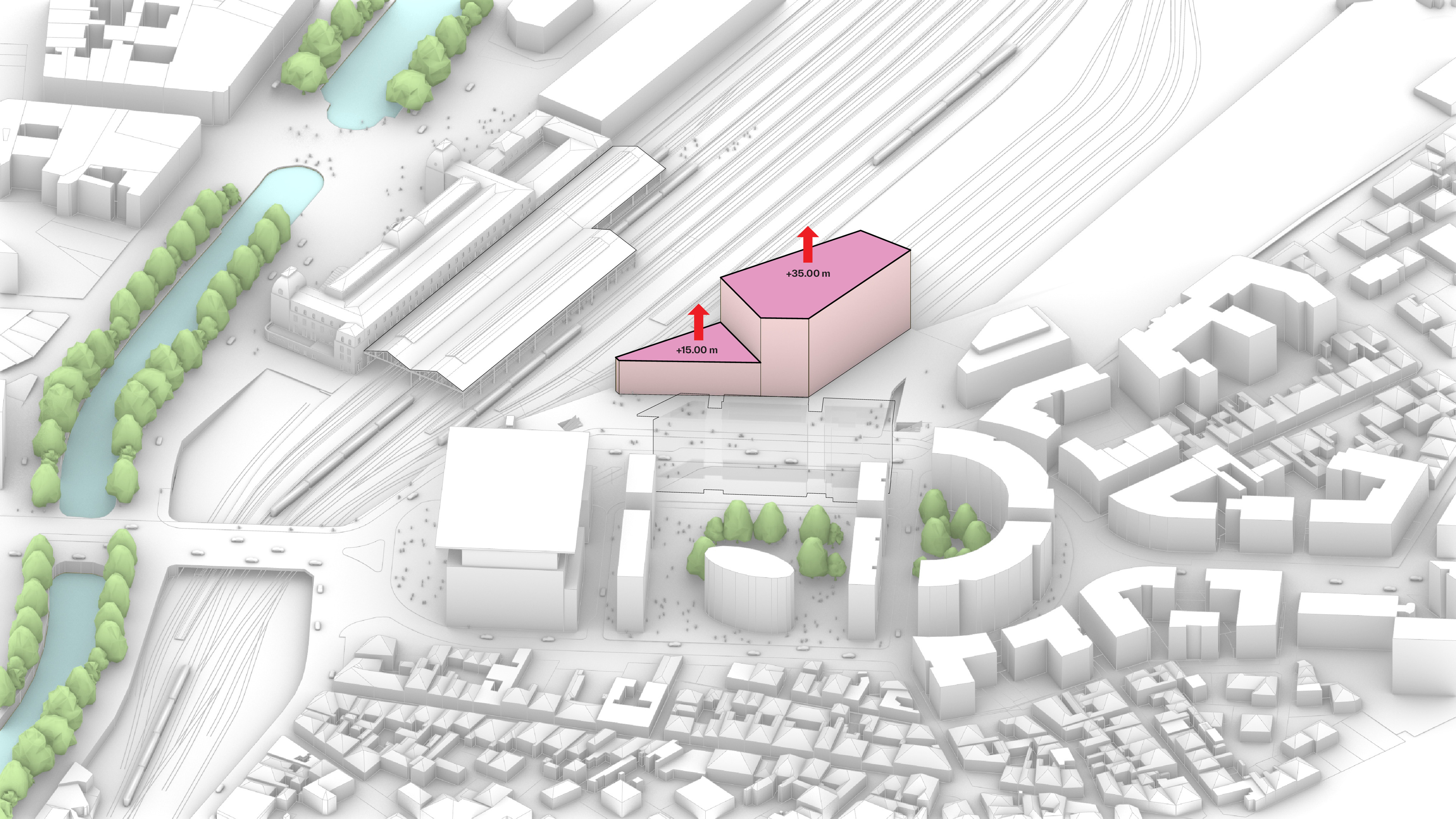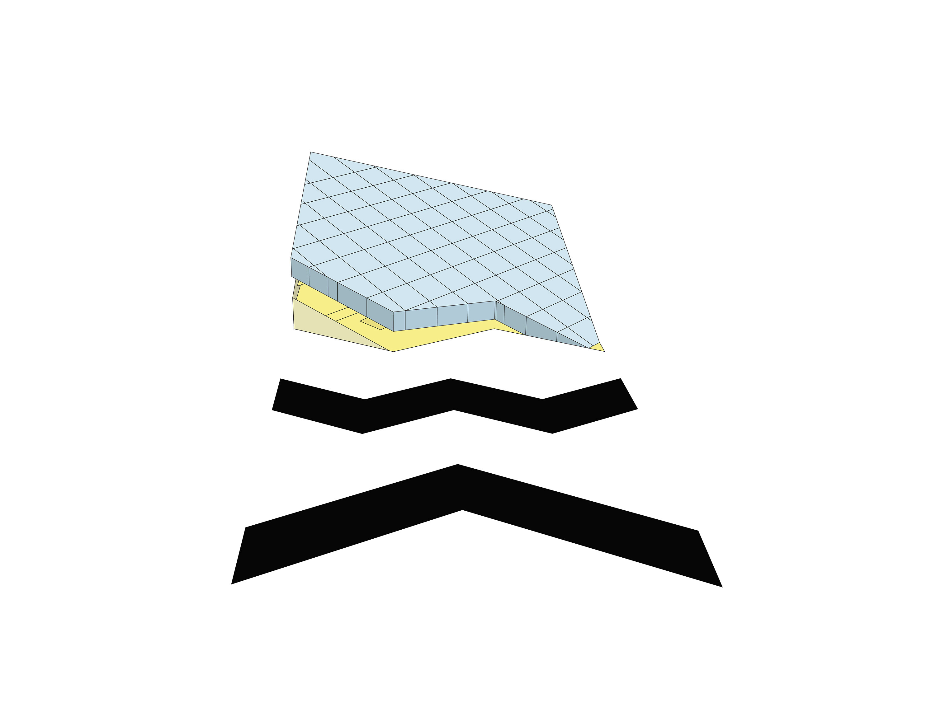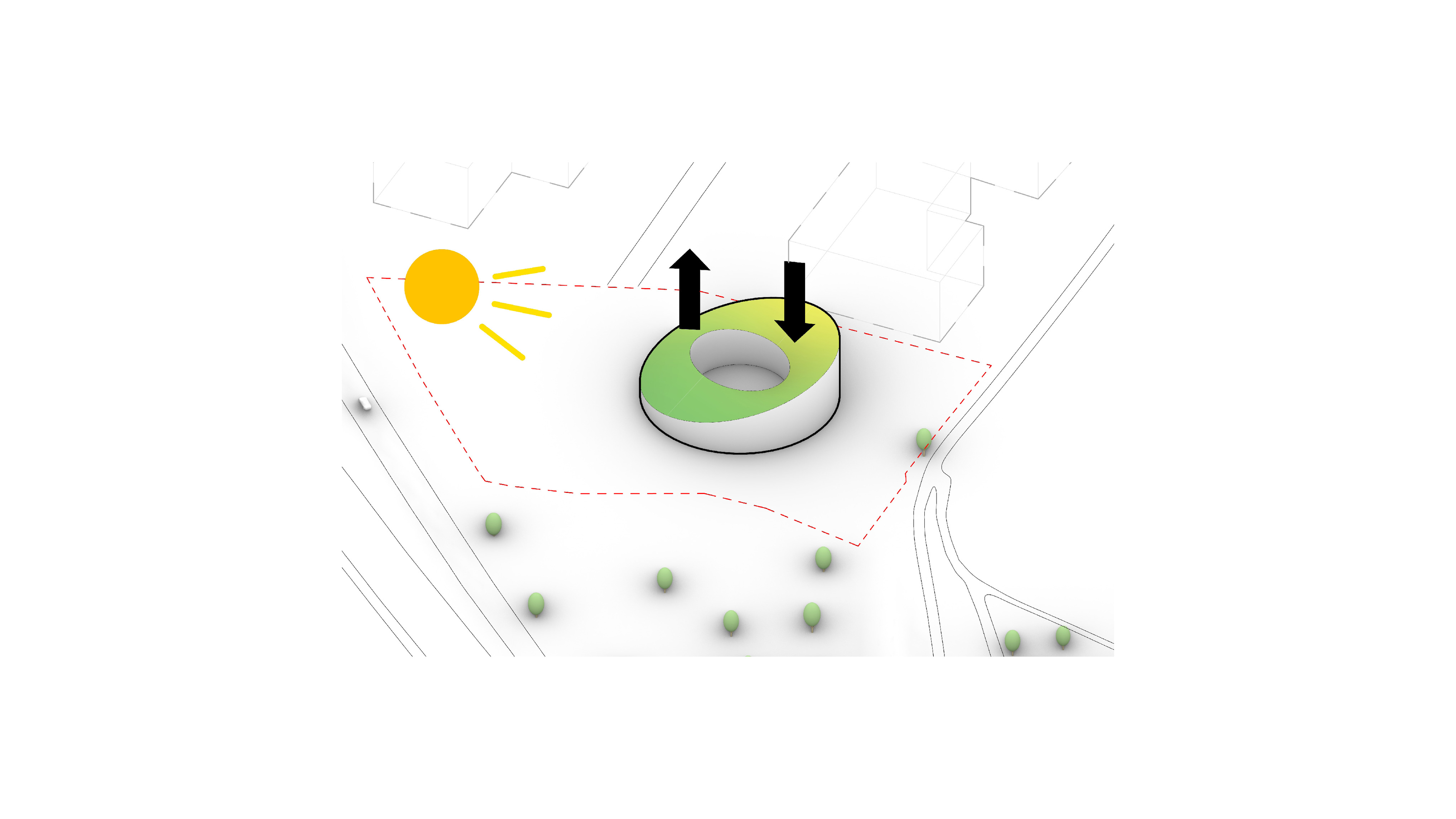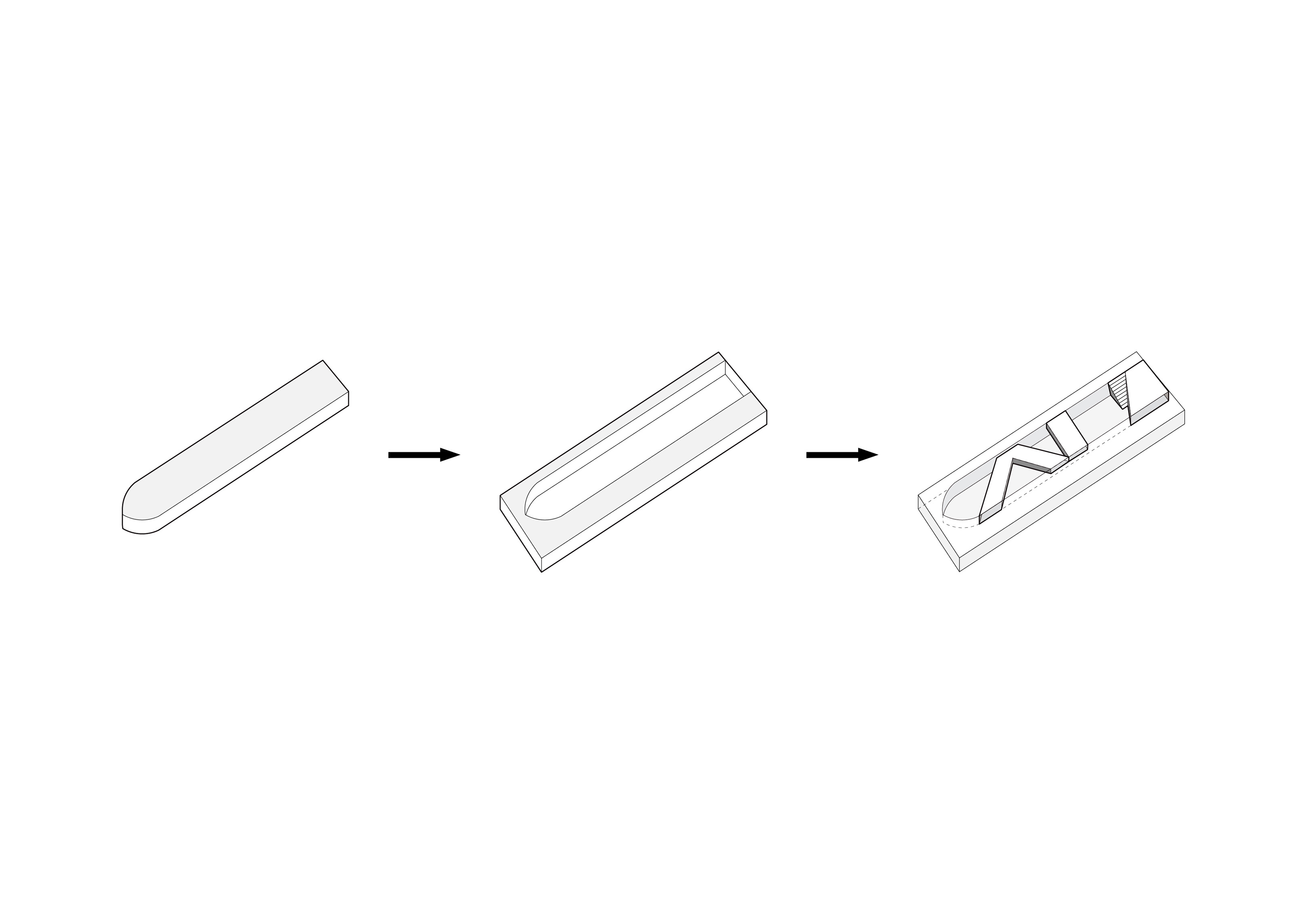 The timber structure and facades draw on Rouen’s tradition of half-timbered houses, while the roofline recalls the sails of its maritime history. From the city side, the PV-covered roof hovers above a new public forecourt that extends the urban fabric to the river. The forecourt combines open plazas paved in local stone with pockets of planting and trees, creating shaded gathering areas and green buffers around the building. Rainwater collected from the roof irrigates the planting, while paths connect the site with its surroundings and guide visitors to the entrances.