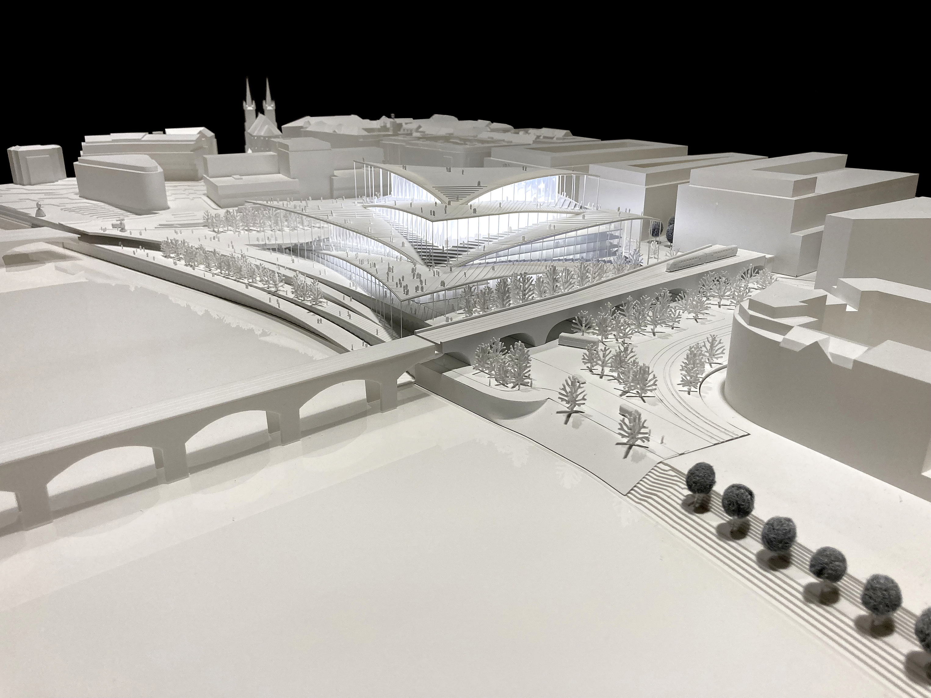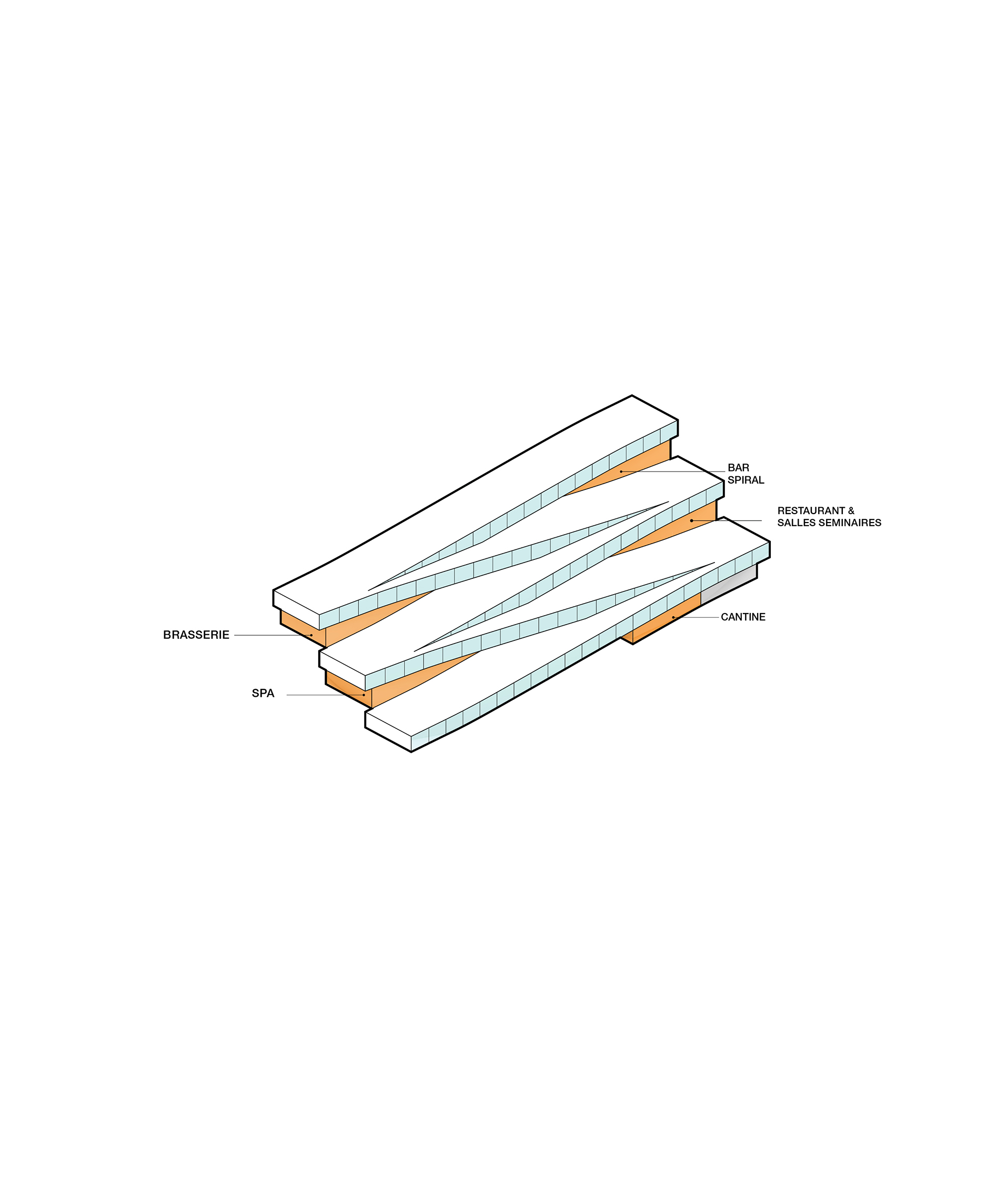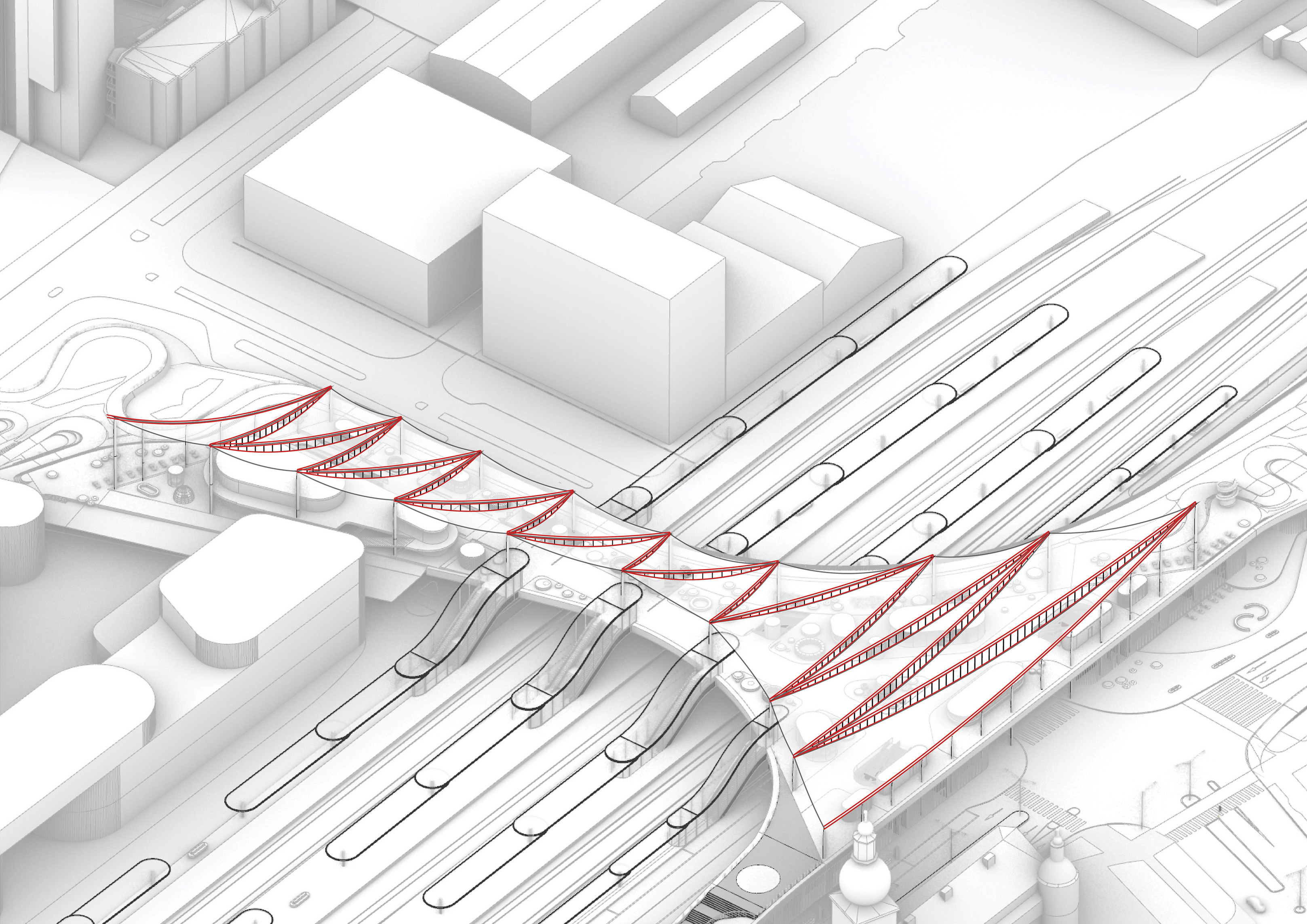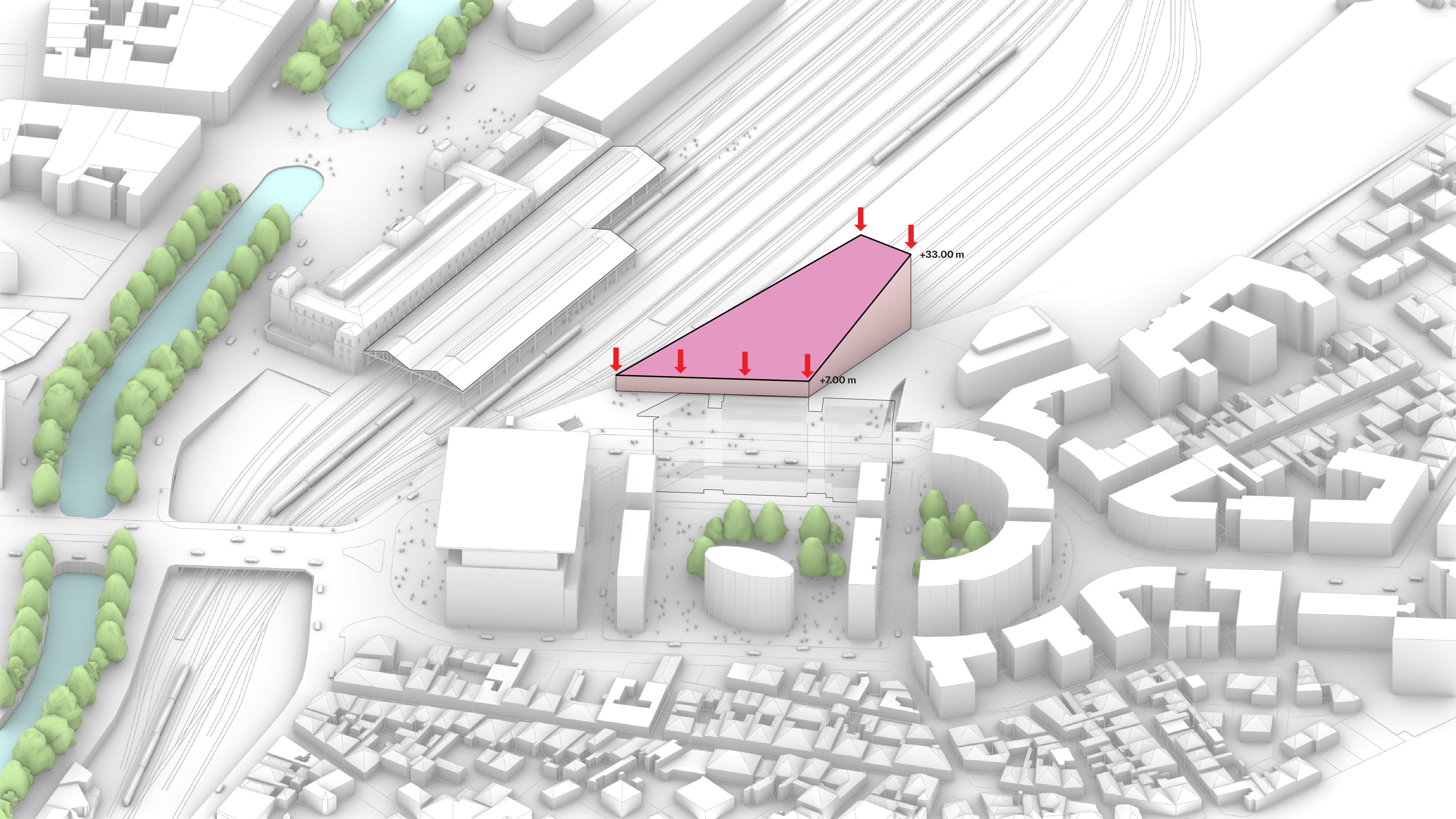 “Rising along the Seine, The Sail introduces a new silhouette to Rouen with its sweeping roofline paying tribute to the city’s naval heritage and historic skyline of spires. The building greets visitors from the highway with a vertical façade, while on the city side, the roof creates sheltered canopies extending the foyer into a human-scaled public landscape. Built with mass timber construction, daylight-optimized interiors and an energy-producing roof, it is both a low-impact infrastructure and a cultural hub - offering an inclusive space for Rouen and its visitors.”