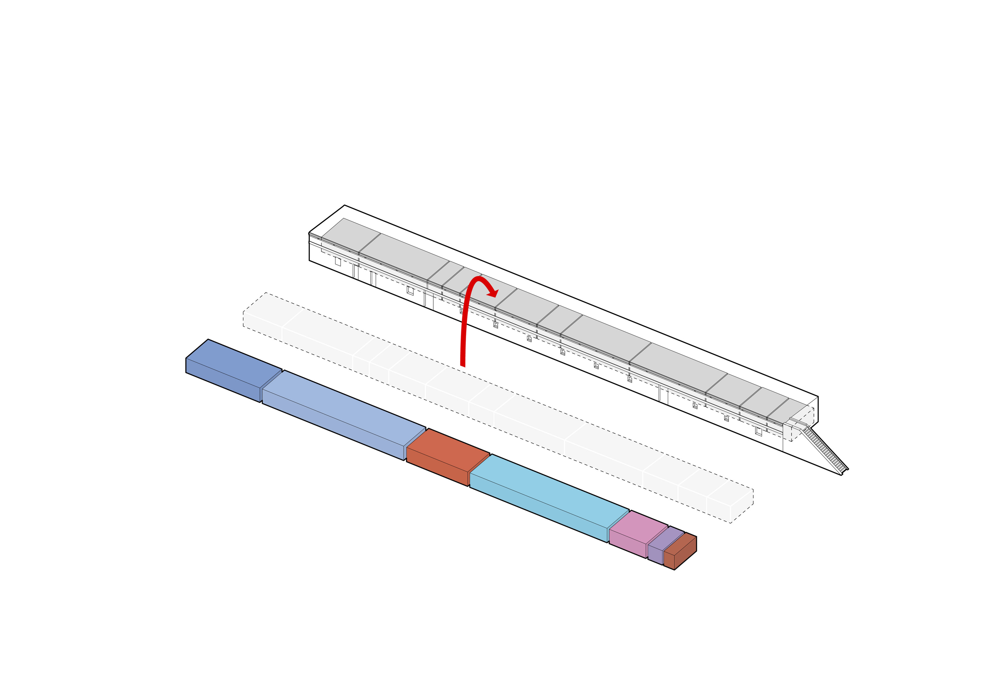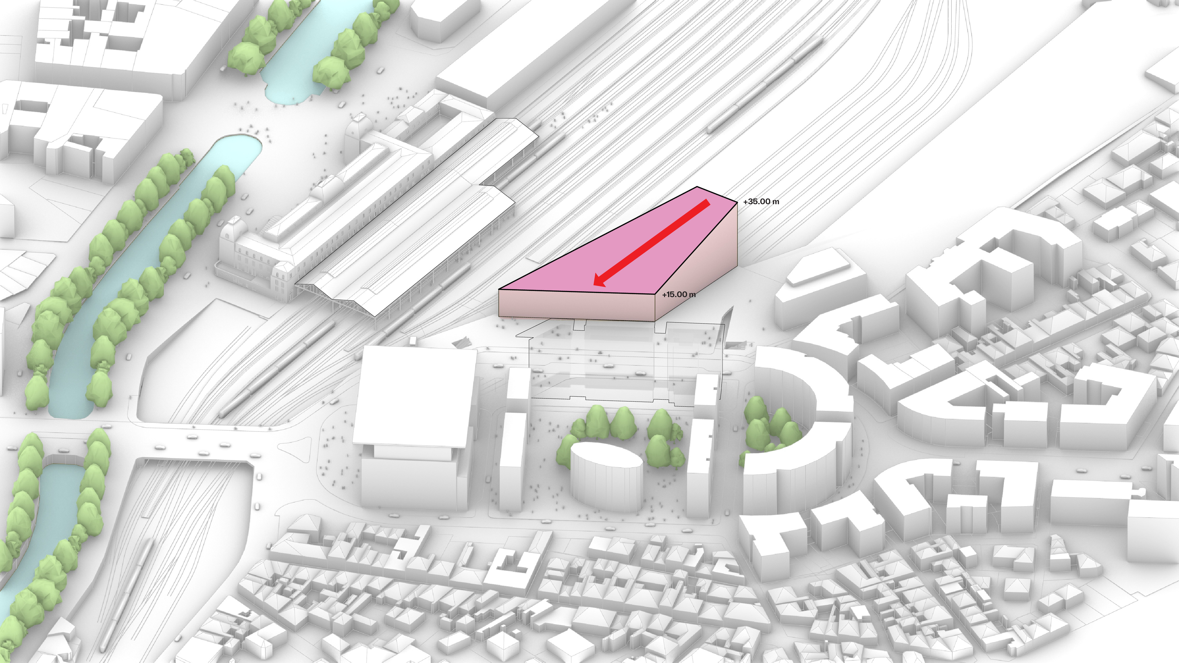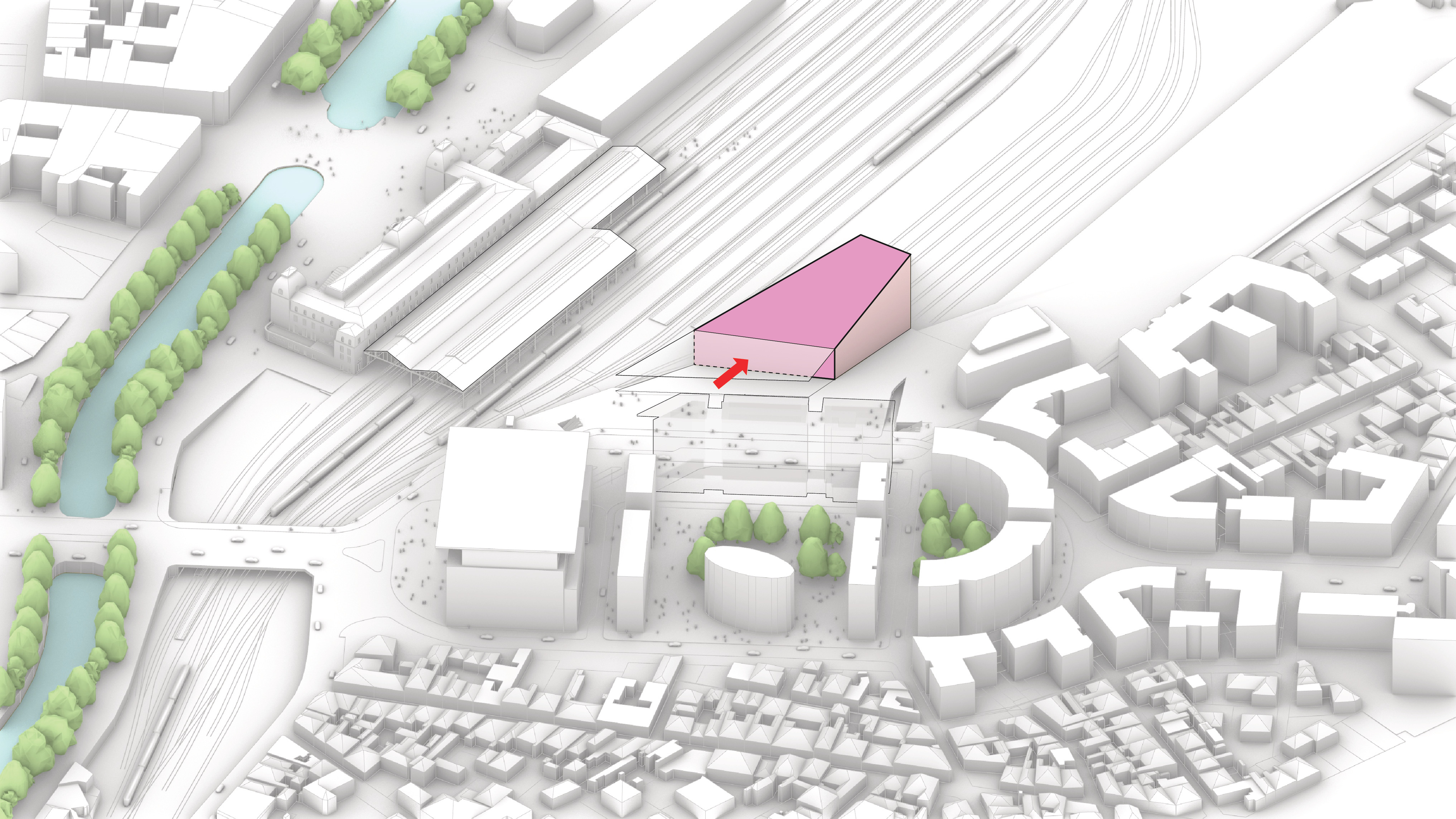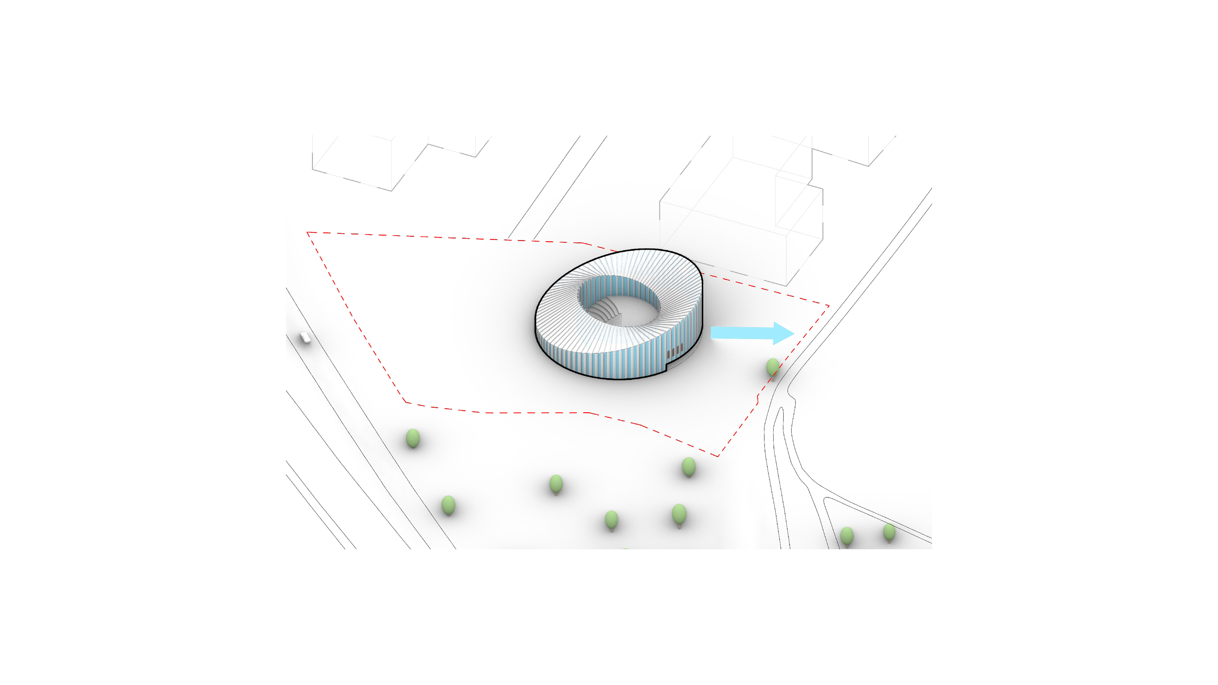 “Rising along the Seine, The Sail introduces a new silhouette to Rouen with its sweeping roofline paying tribute to the city’s naval heritage and historic skyline of spires. The building greets visitors from the highway with a vertical façade, while on the city side, the roof creates sheltered canopies extending the foyer into a human-scaled public landscape. Built with mass timber construction, daylight-optimized interiors and an energy-producing roof, it is both a low-impact infrastructure and a cultural hub - offering an inclusive space for Rouen and its visitors.”