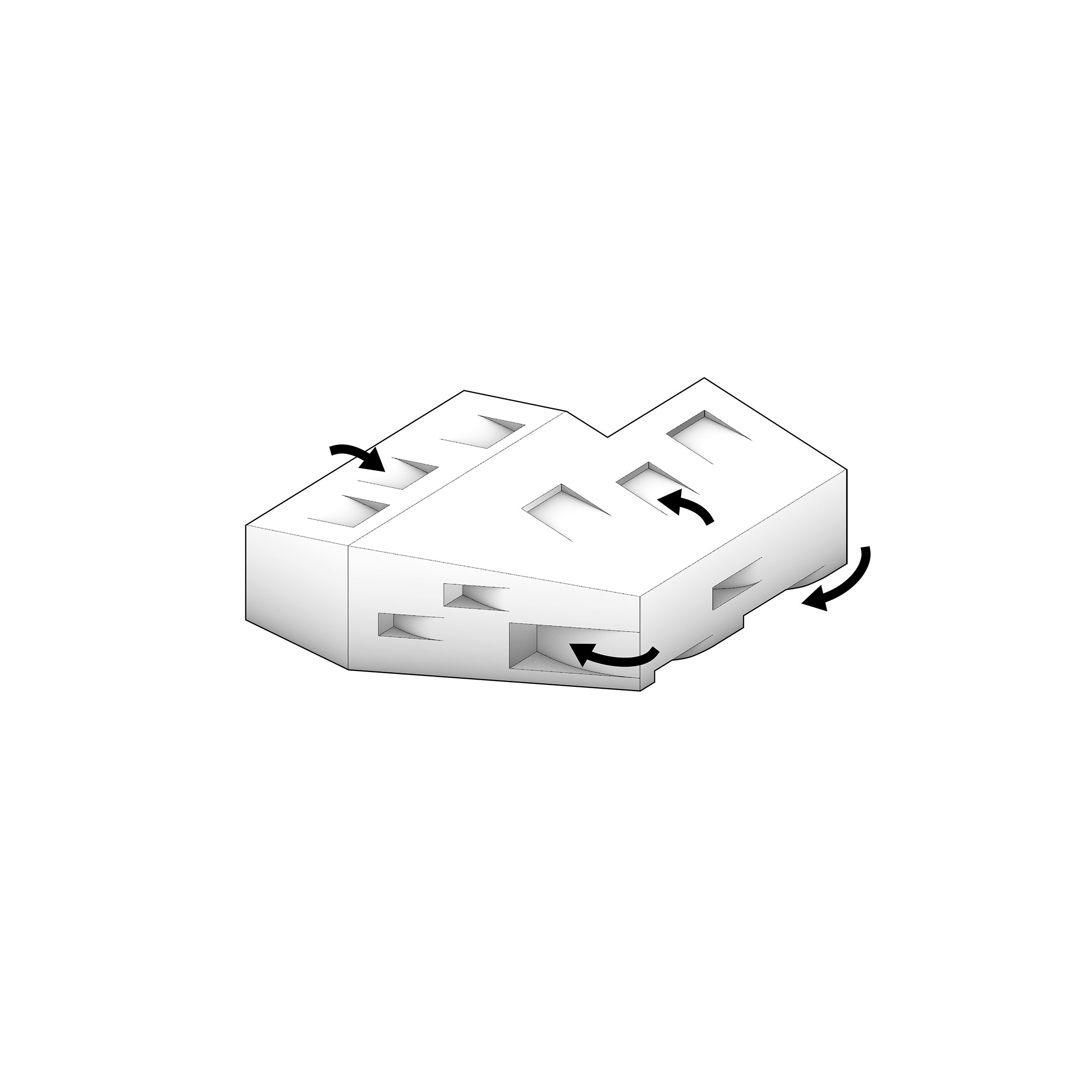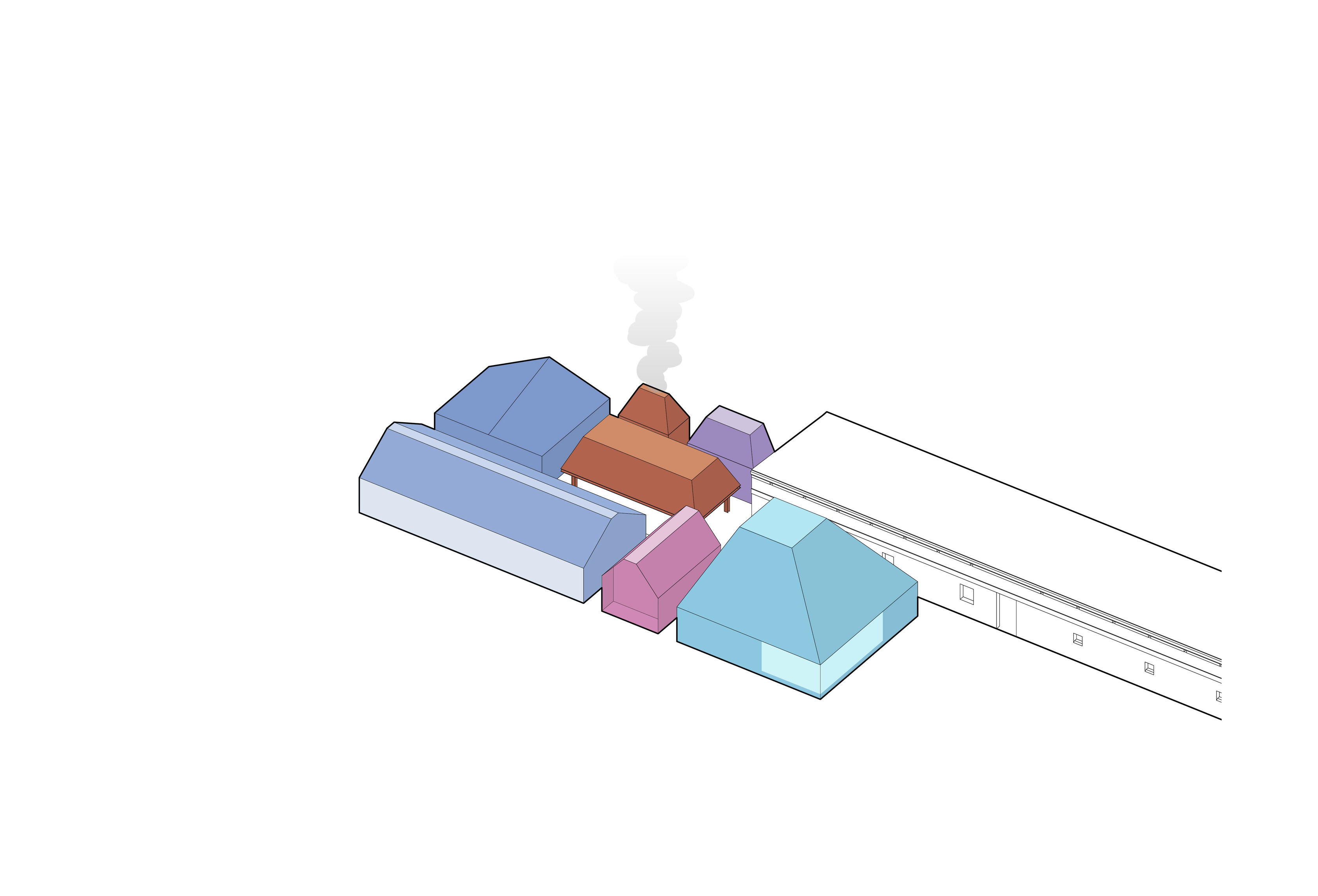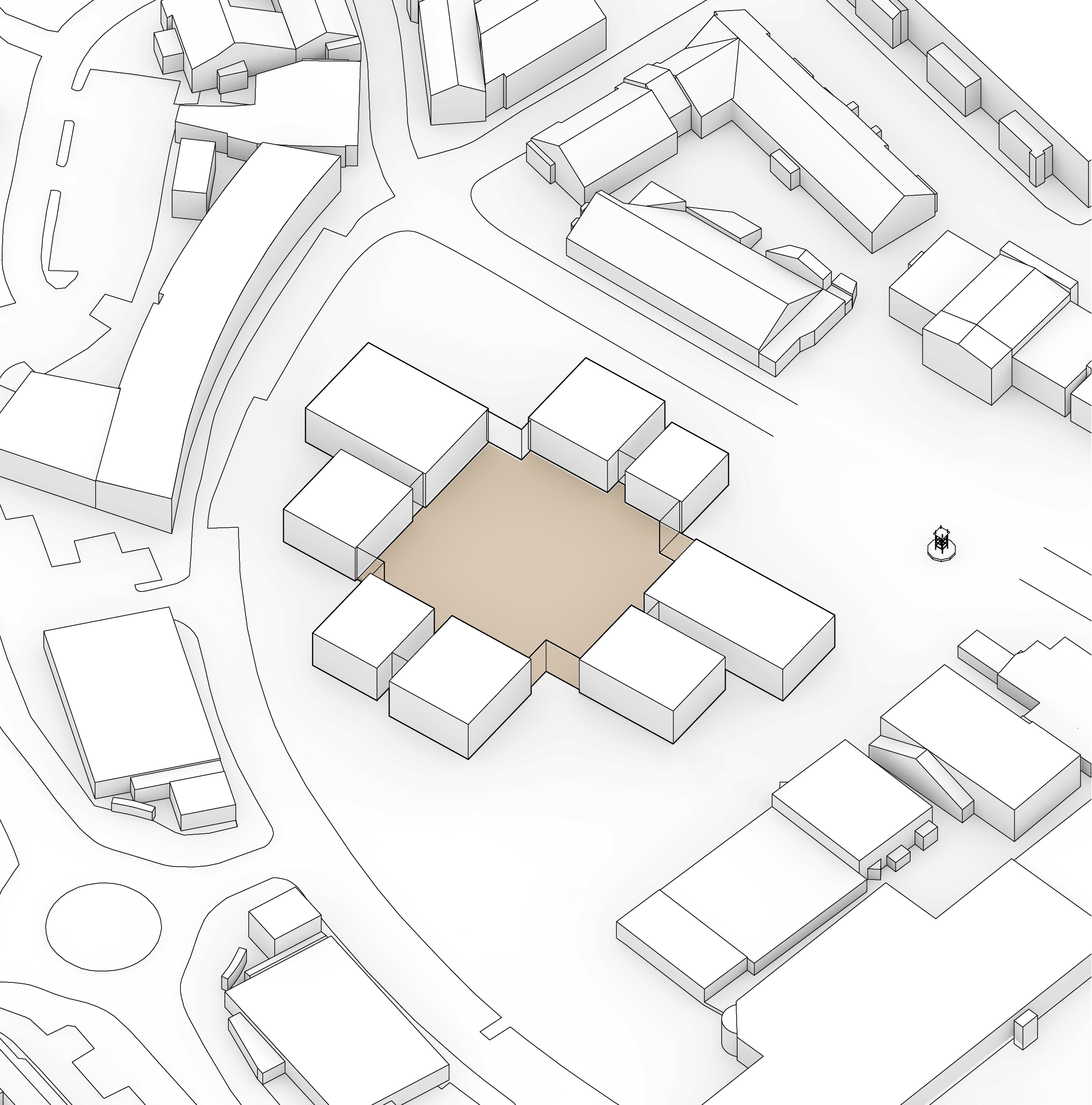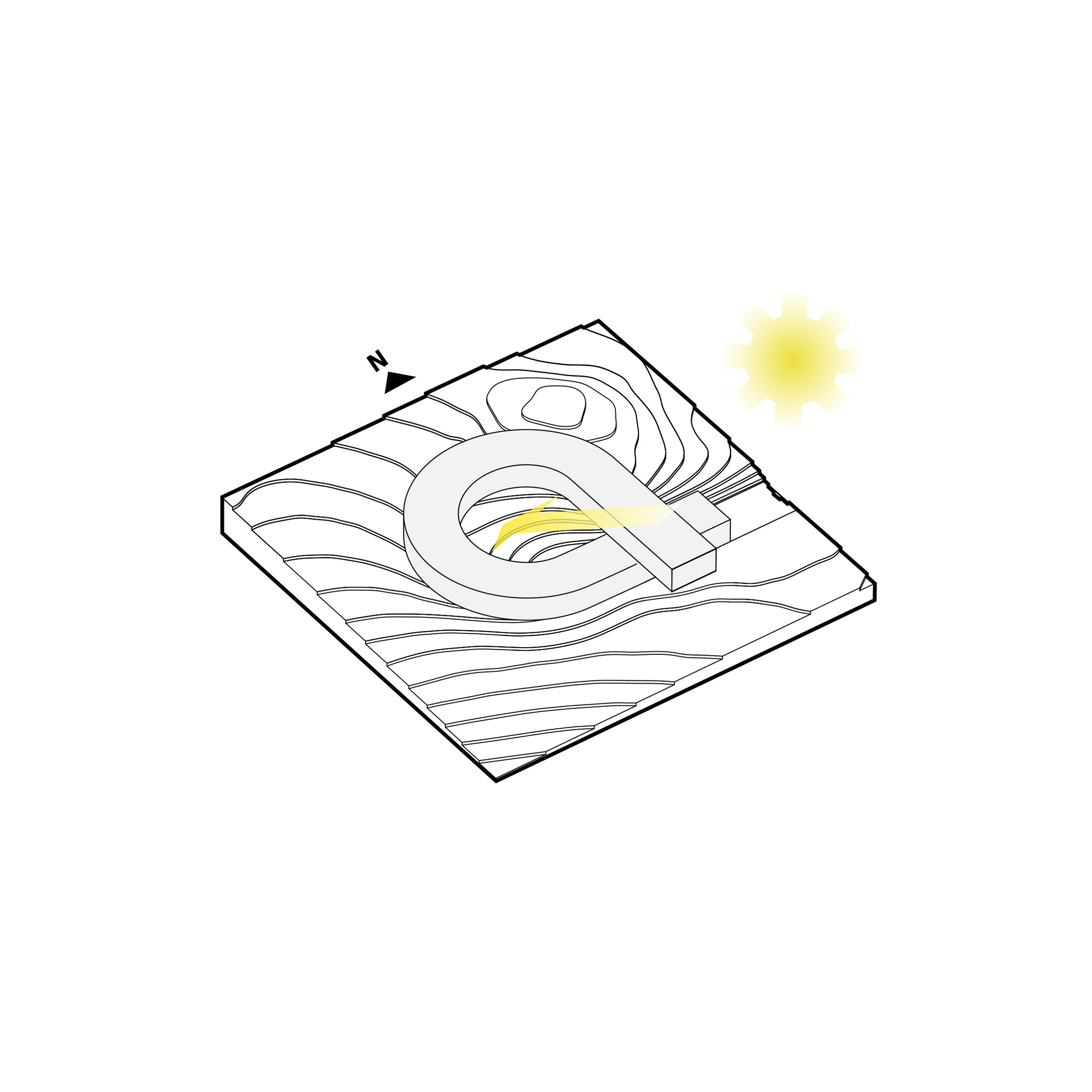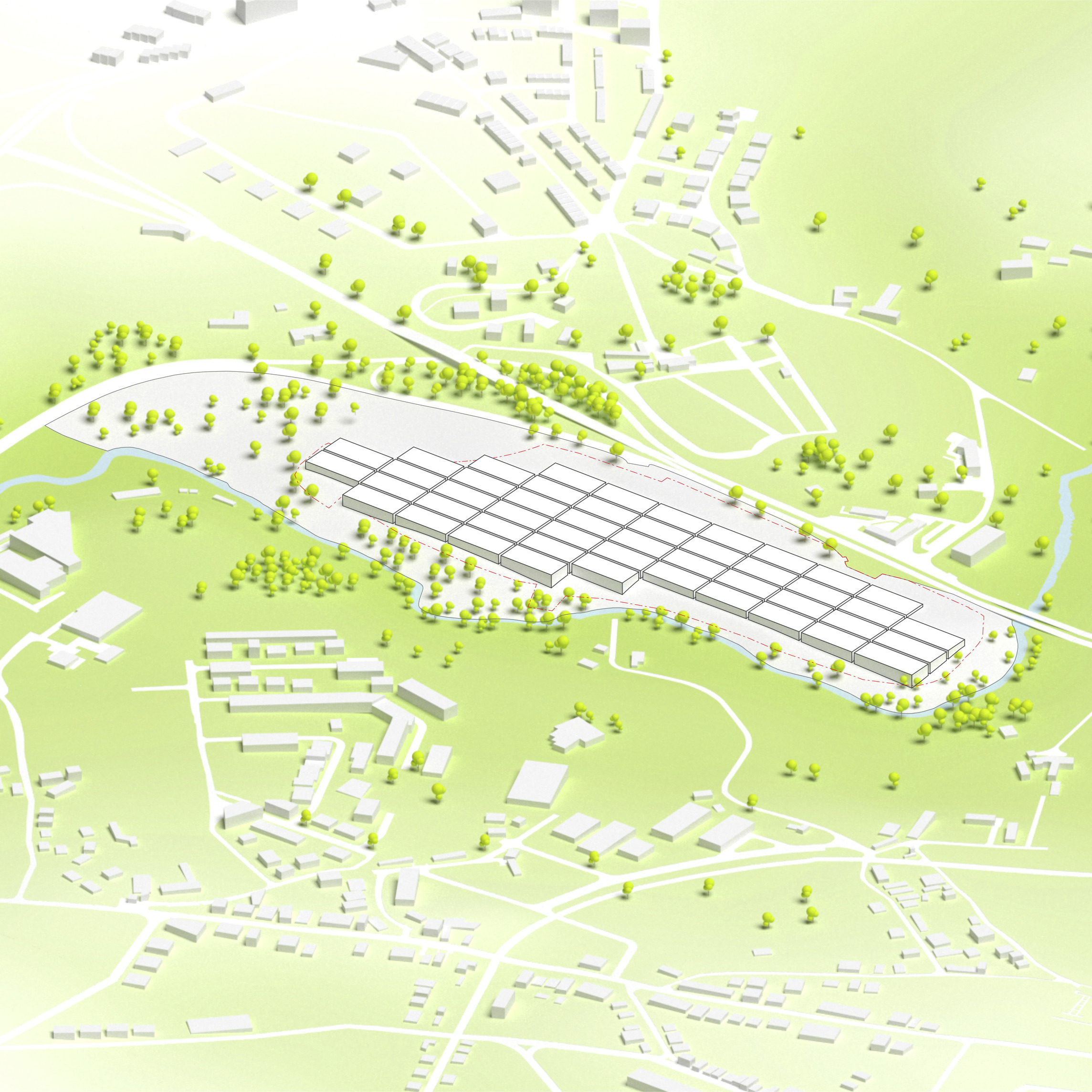 By using a clover structure in organizing the residential program each patient’s room is oriented toward its own part of the landscape – two sets of rooms facing the lake, and one set of rooms facing the surrounding hills. That way the intimate living program has been folded into the landscape being on a level with the lake. Between the functions emerges a new collective space that is embraced by offices and bed units and populated by small patios.