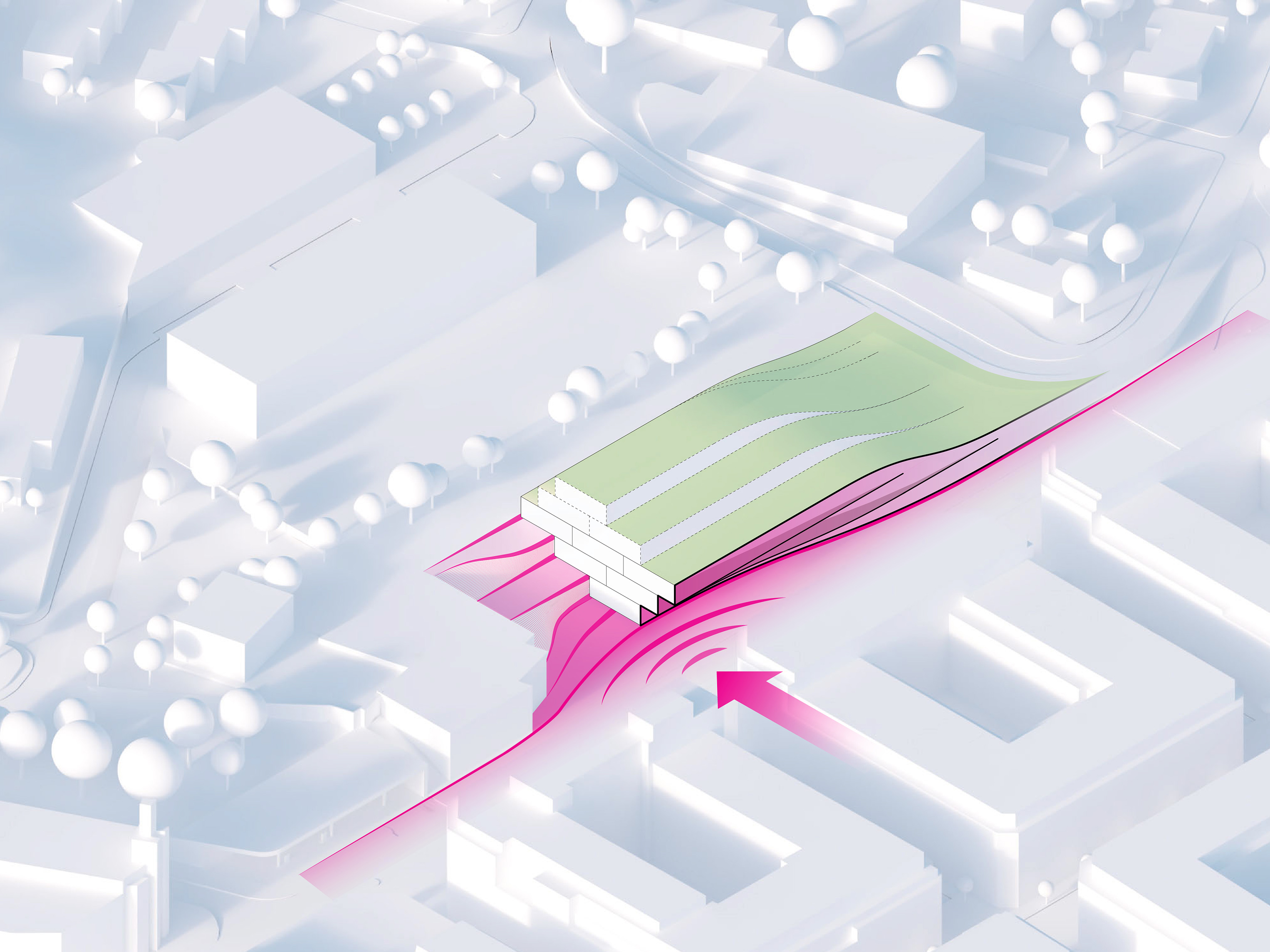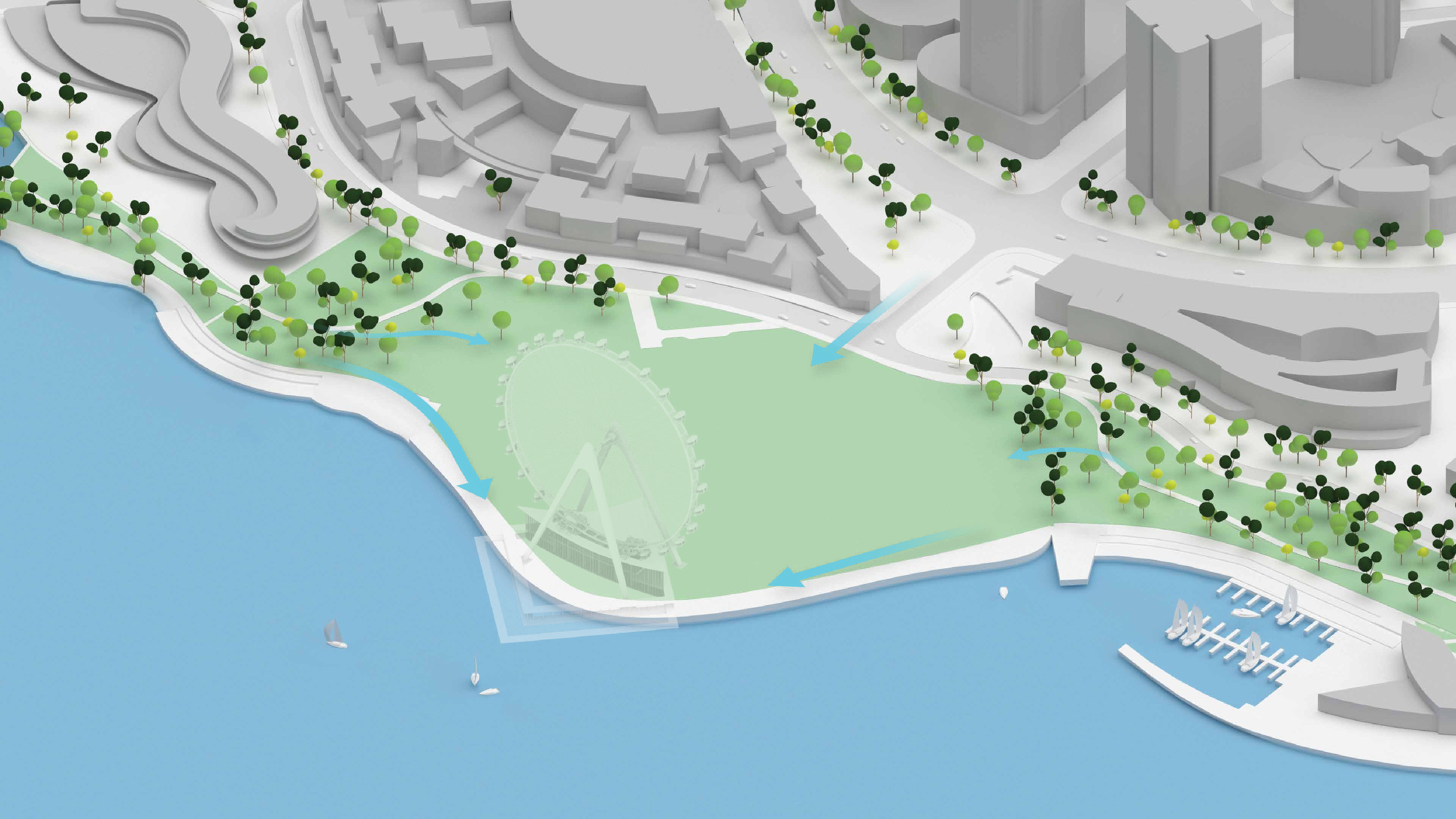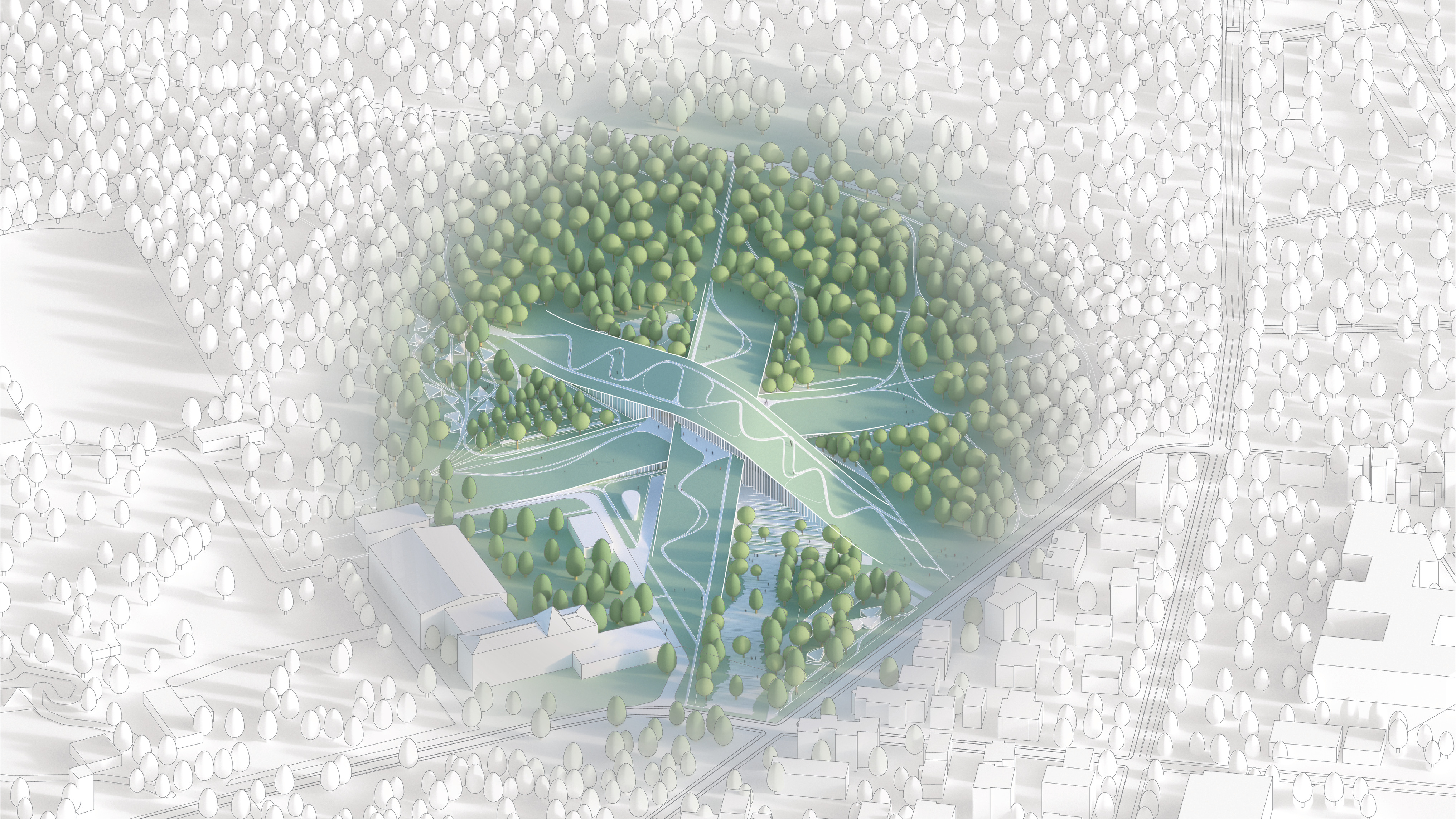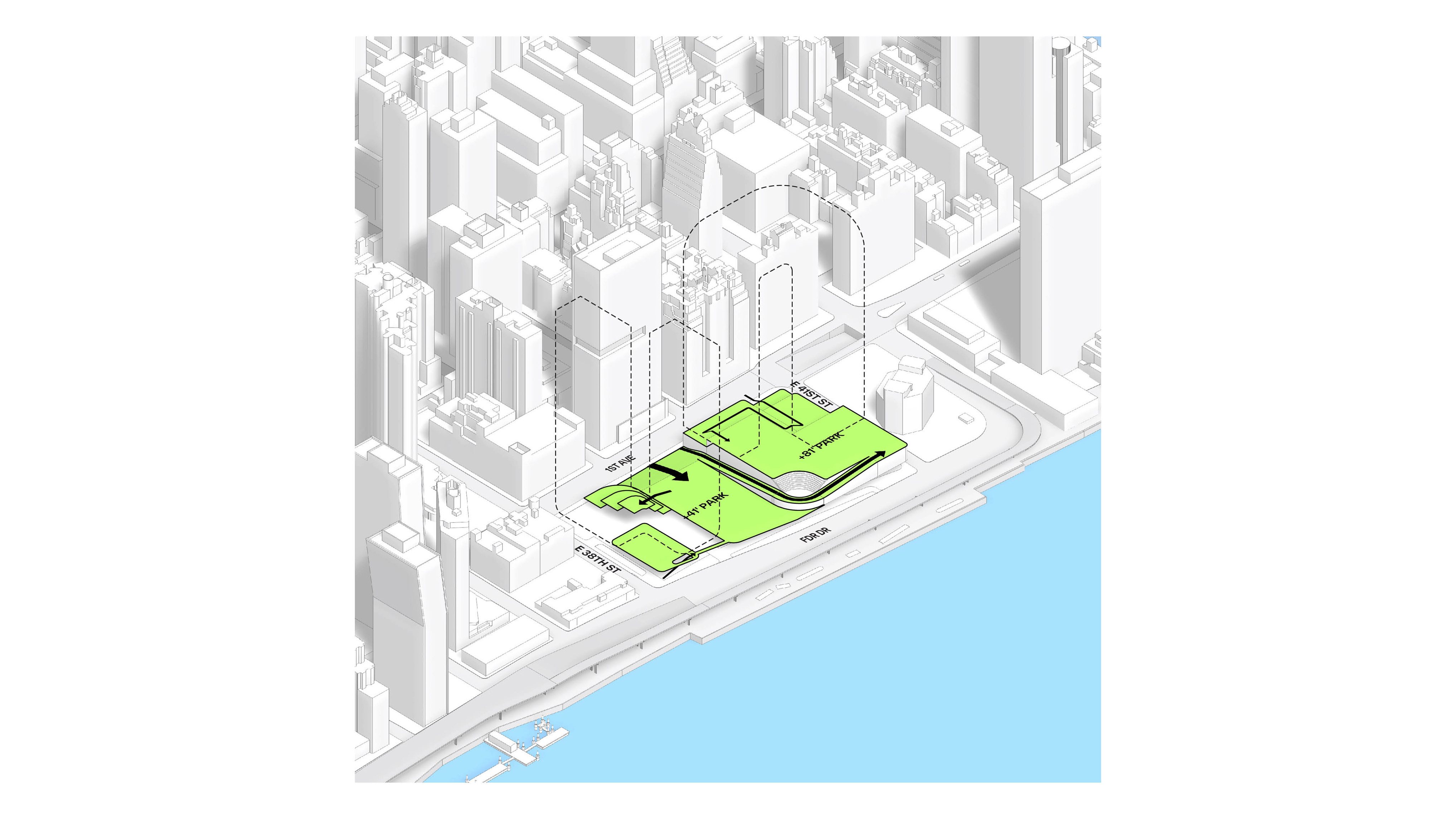 River Ring intends to complete the continuous public waterfront that stretches from Bushwick Inlet Park to Domino Park, addressing a major missing link in the public route from Williamsburg to Greenpoint. Located at an important junction where Metropolitan Avenue terminates at the East River, the masterplan extends the urban connection from the city grid out toward the water, encouraging people to explore the ecological park.