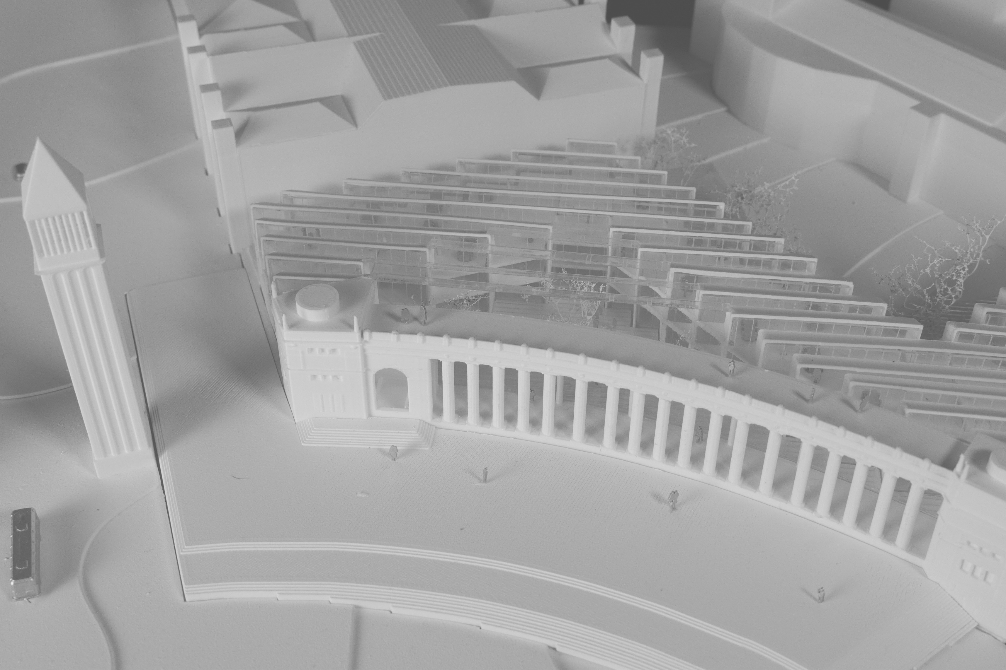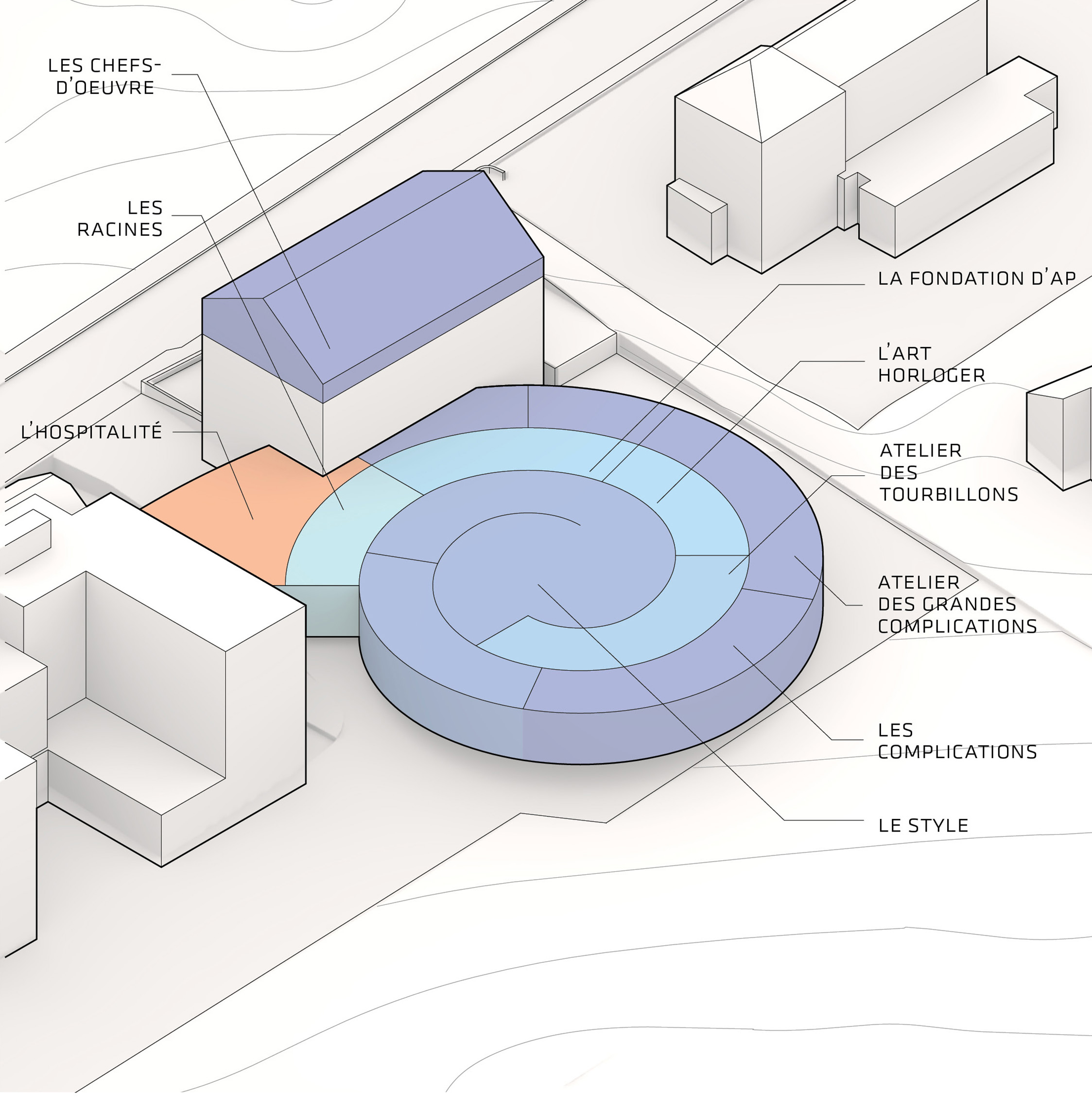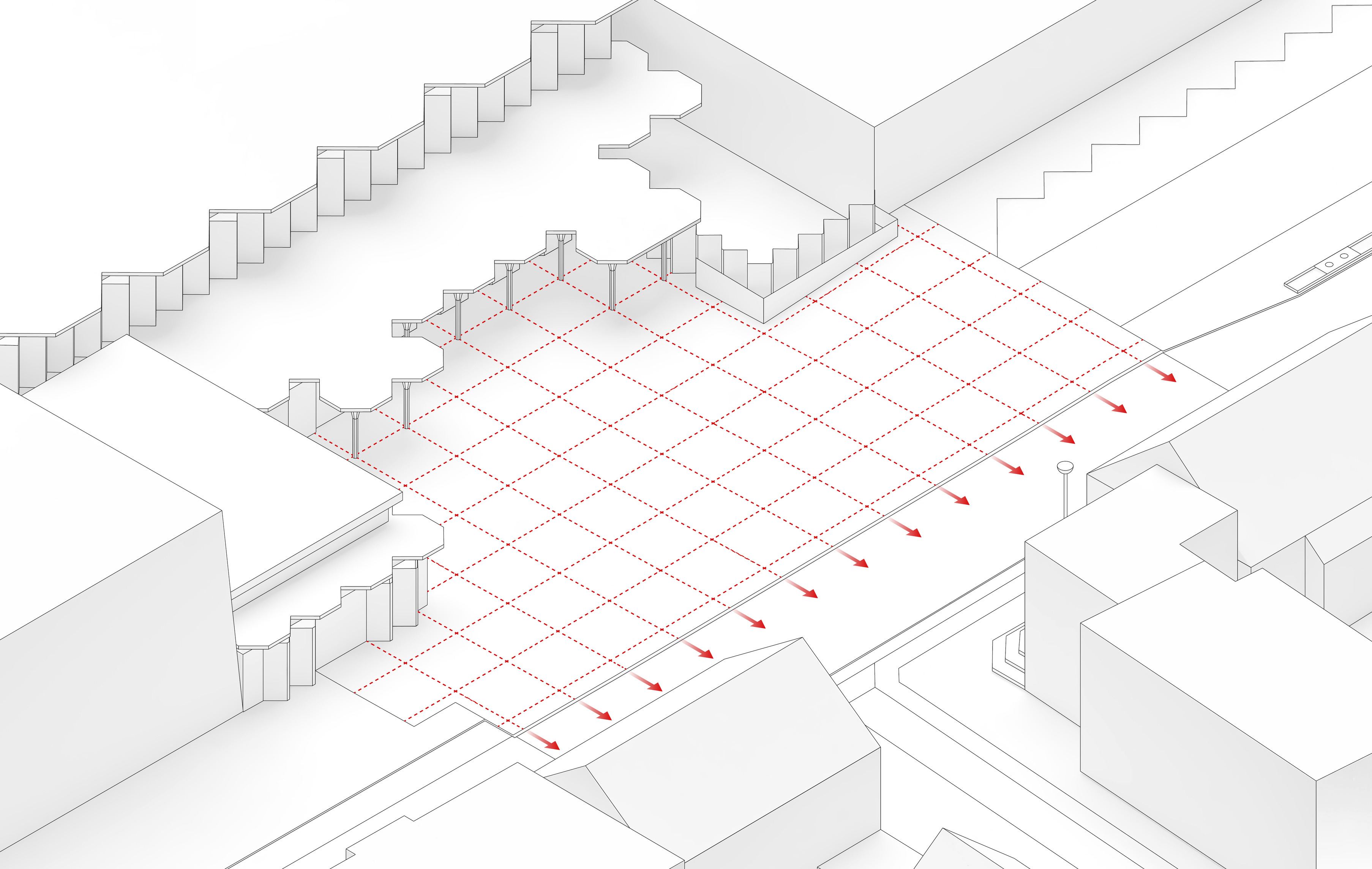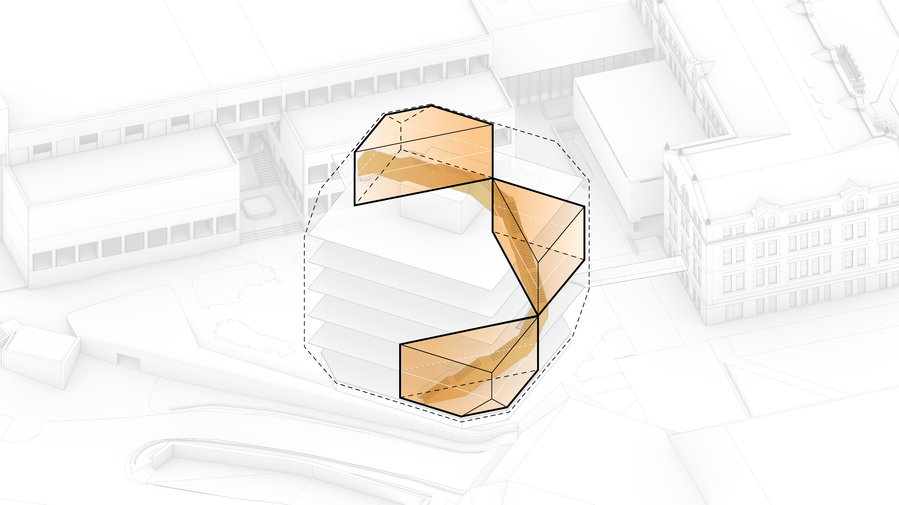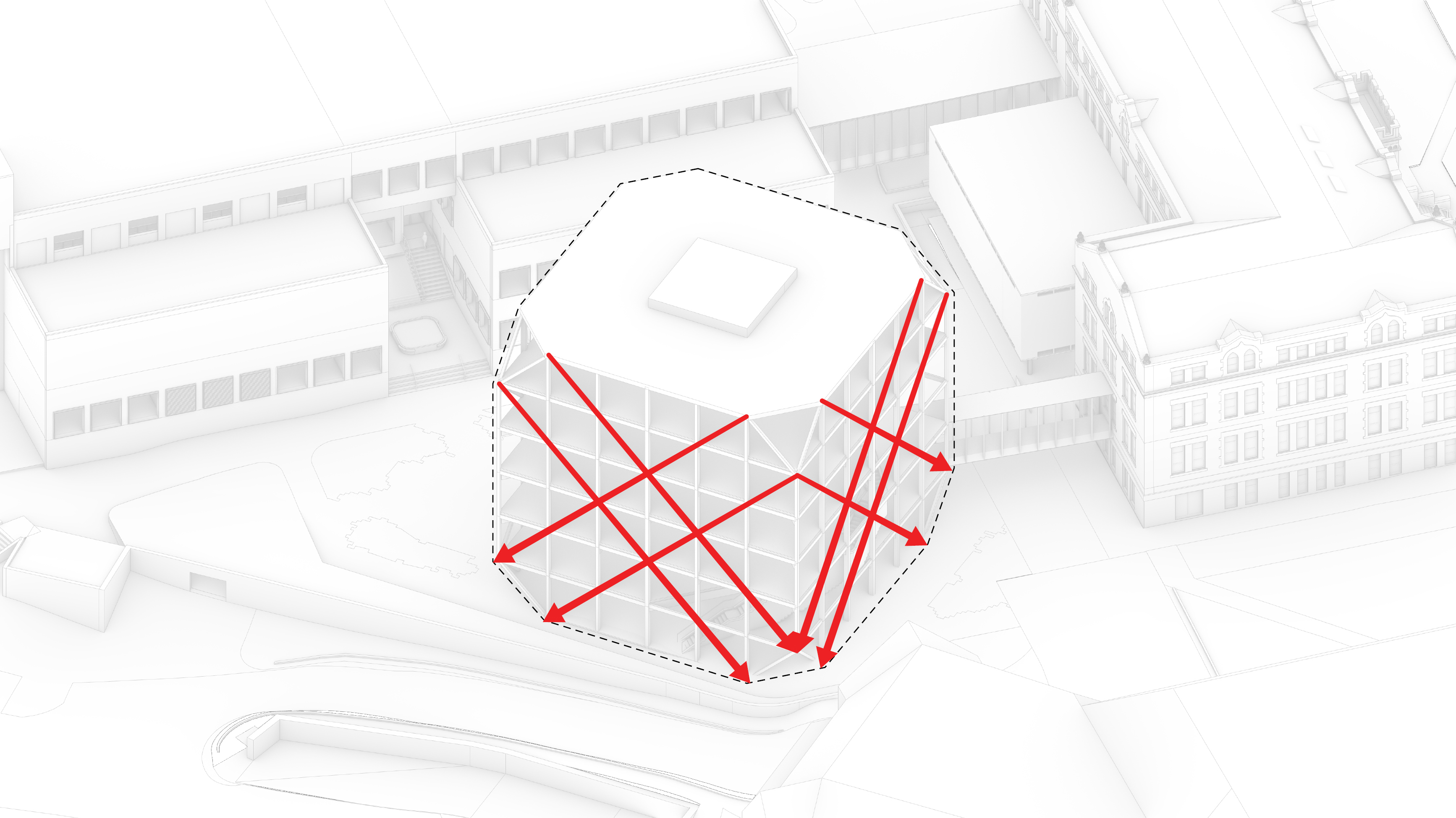 "The Robert Day Sciences Center brings together computer science, data science, and life sciences in one integrated environment. As the first completed building of our master plan for Claremont McKenna, it extends the north mall into a zigzag of malls, becoming a distributor of flows for the entire campus. We imagined the Sciences Center as a series of parallel building volumes side by side - with a public space in between - that are rotated in all the same directions as the mall. Even though each of the individual building volumes are rational, flexible, and capable of being computer labs or wet labs, the open atrium in between becomes a Piranesian social space where you can see fellow students, faculty, colleagues, and professors from every level. So even if you spend most of your time in a wet lab, computer lab, or classroom, there will still be many opportunities for sparks to fly between you and your fellow students, stimulating the exchange of ideas across the traditional silos of knowledge. In that sense, the Robert Day Sciences Center becomes a crucible where all of the different kinds of knowledge and all of the different kinds of students and teachers come together in one complex, three-dimensional learning environment."