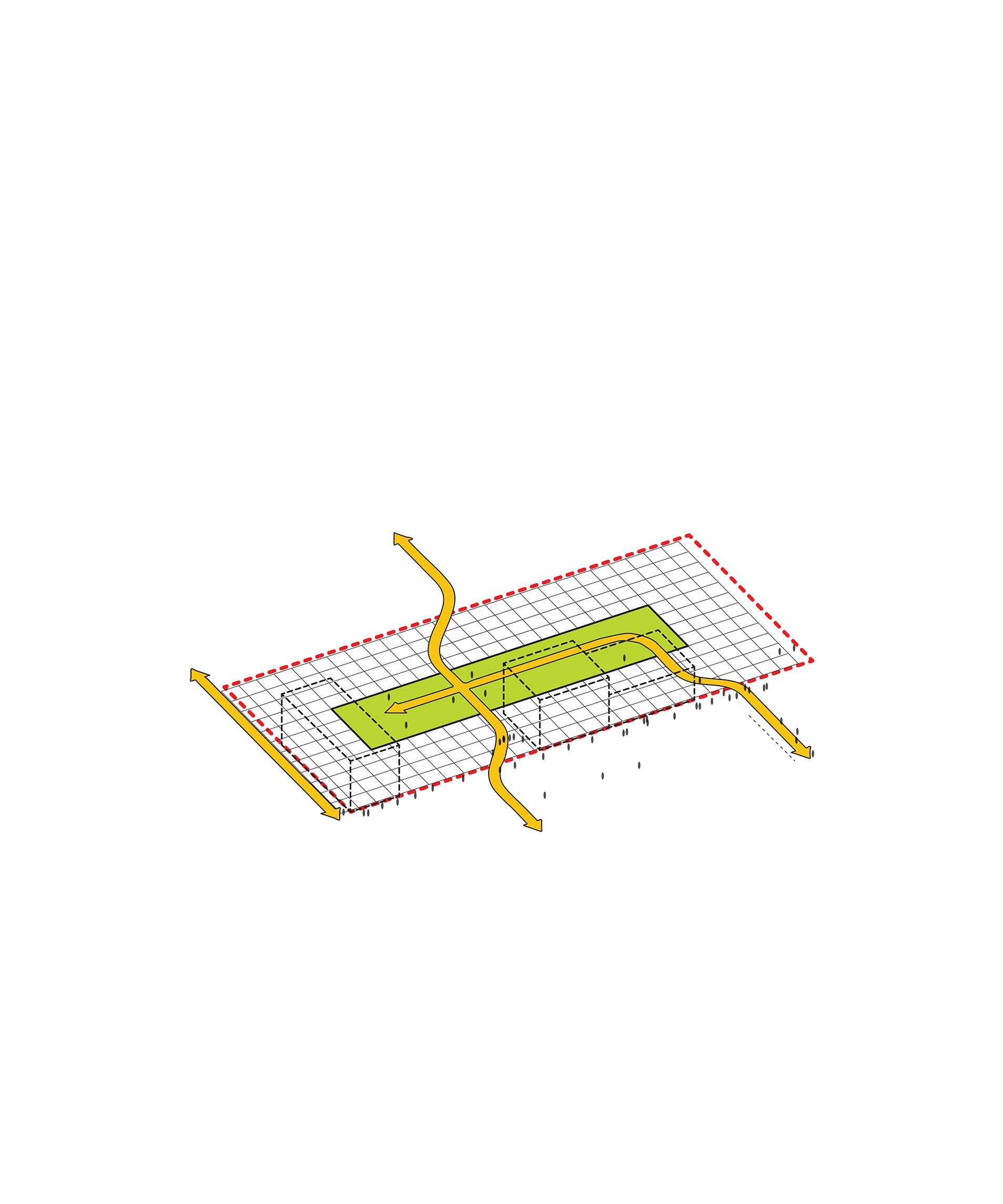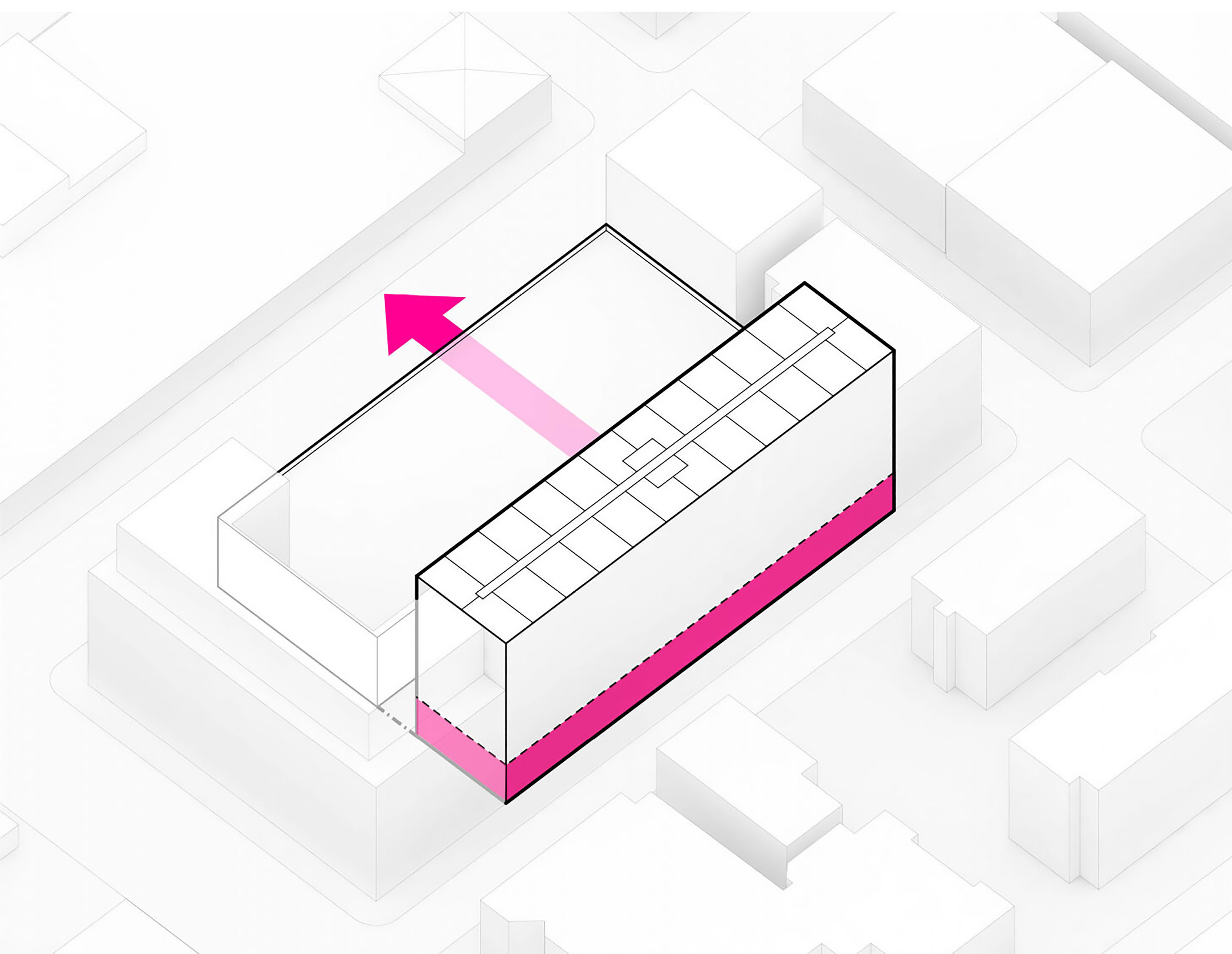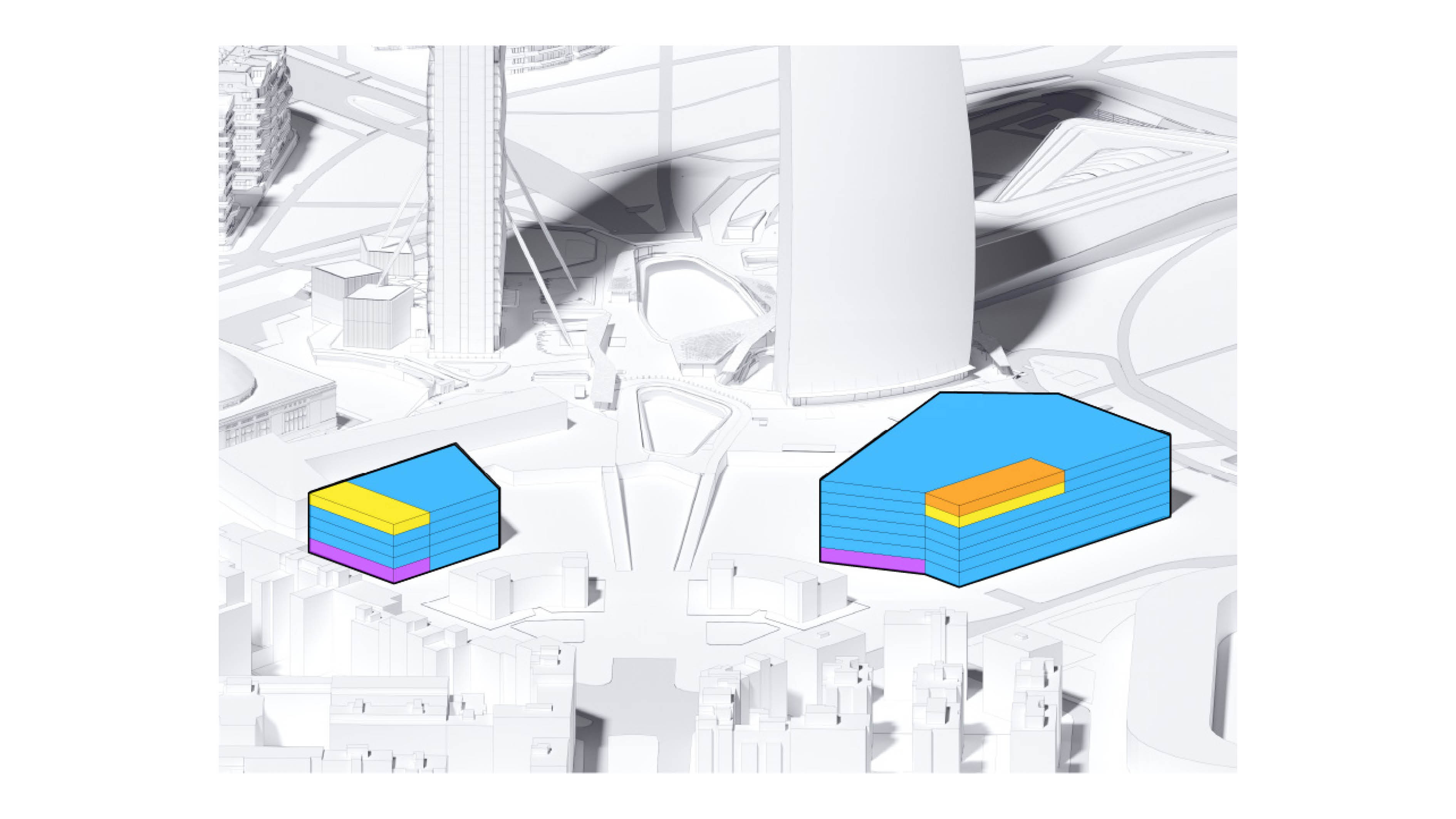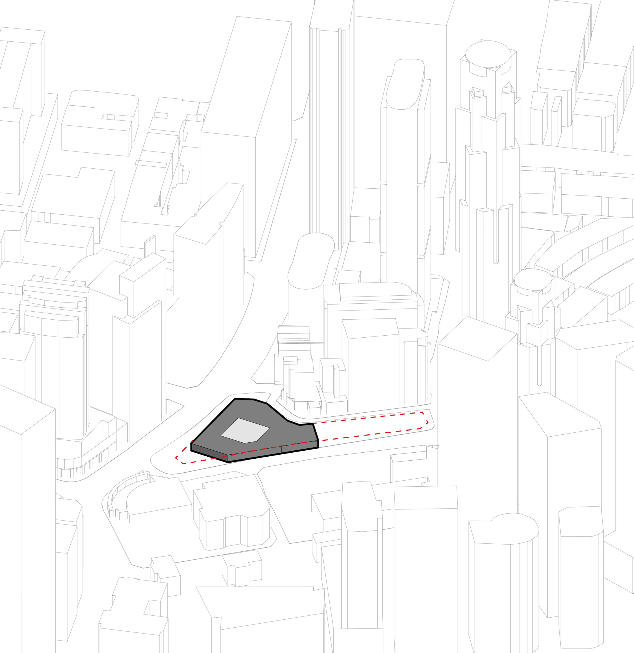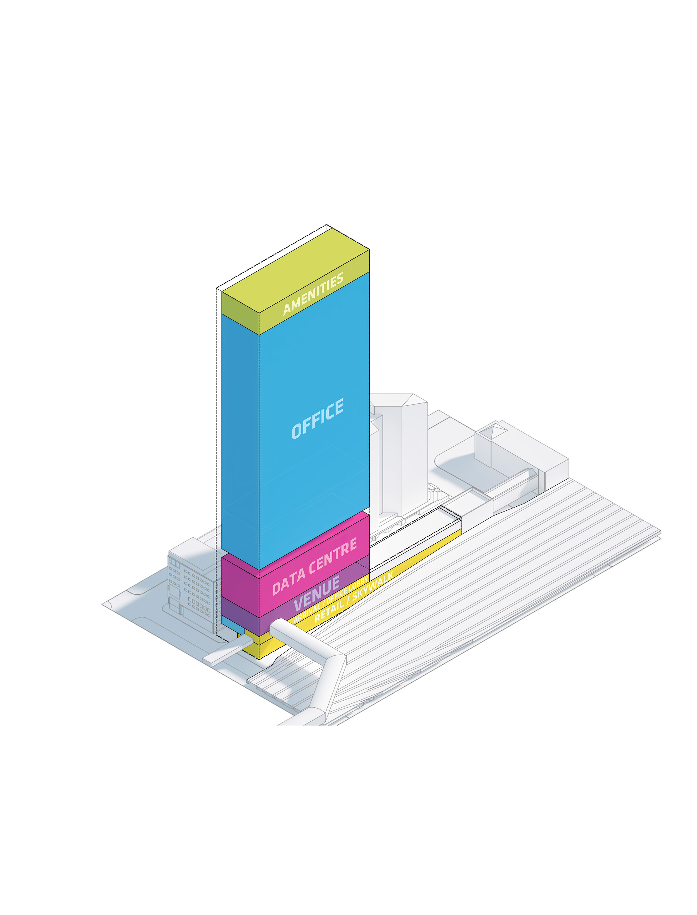 The building footprint results from expanding the public realm, significantly increasing public park space while minimizing the building area at the ground level. Framing the new park are public facing programs – a new 47,000 sq ft YMCA; 30,000 sq ft of neighborhood-oriented retail space; and 4,500 sq ft of community occupied kiosks.
