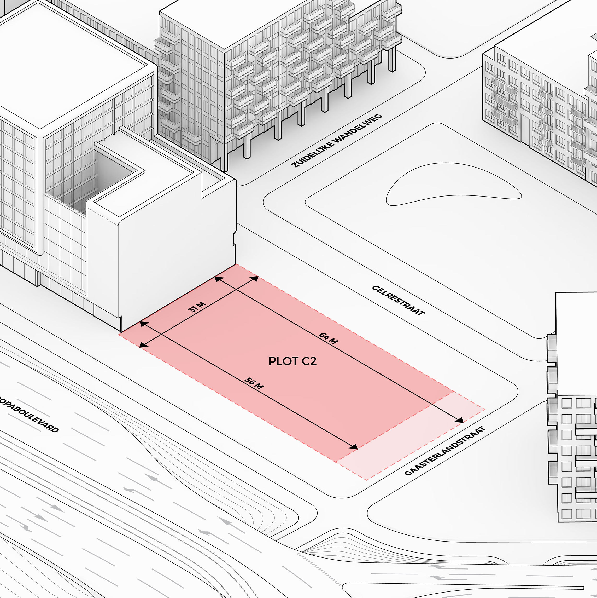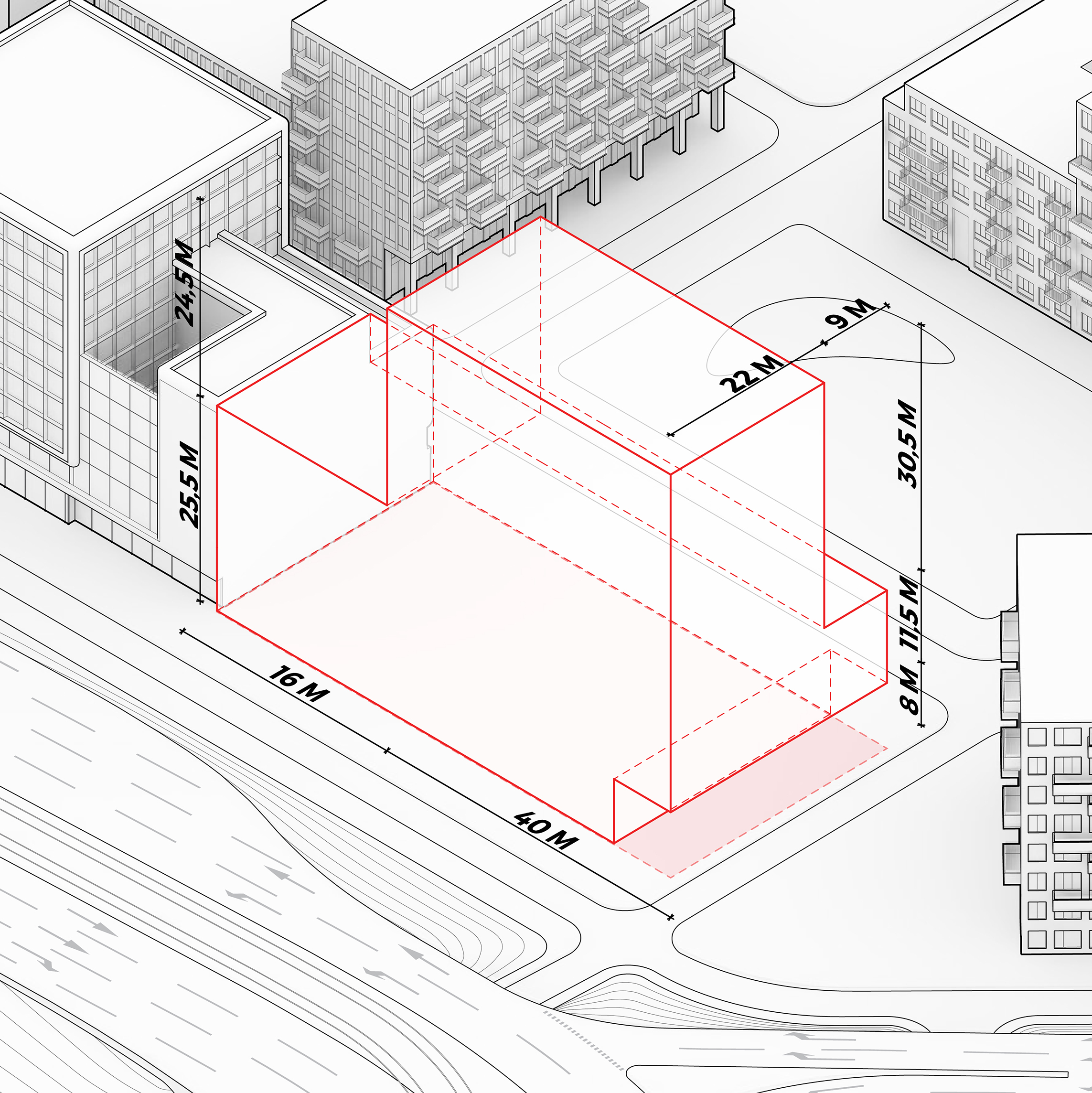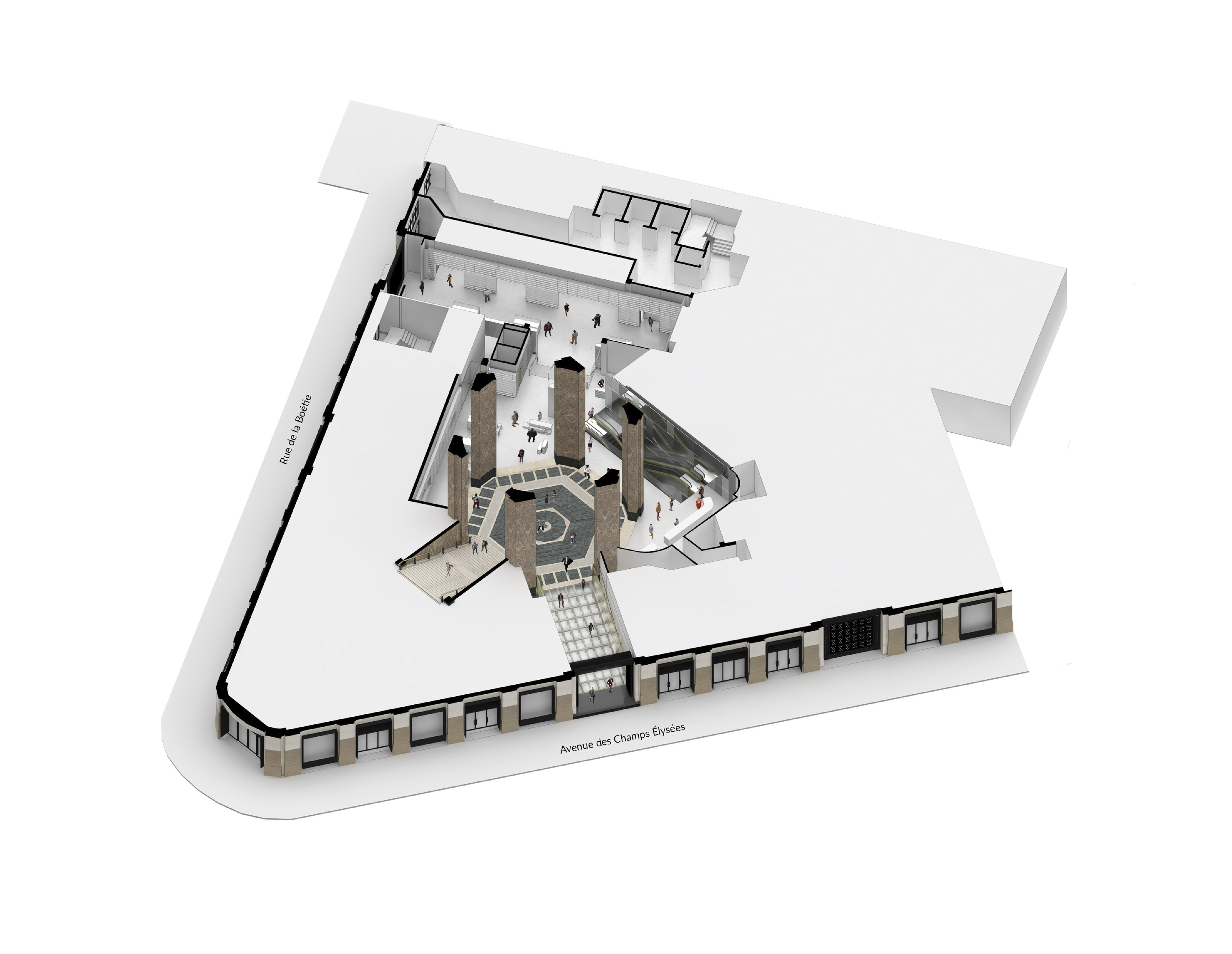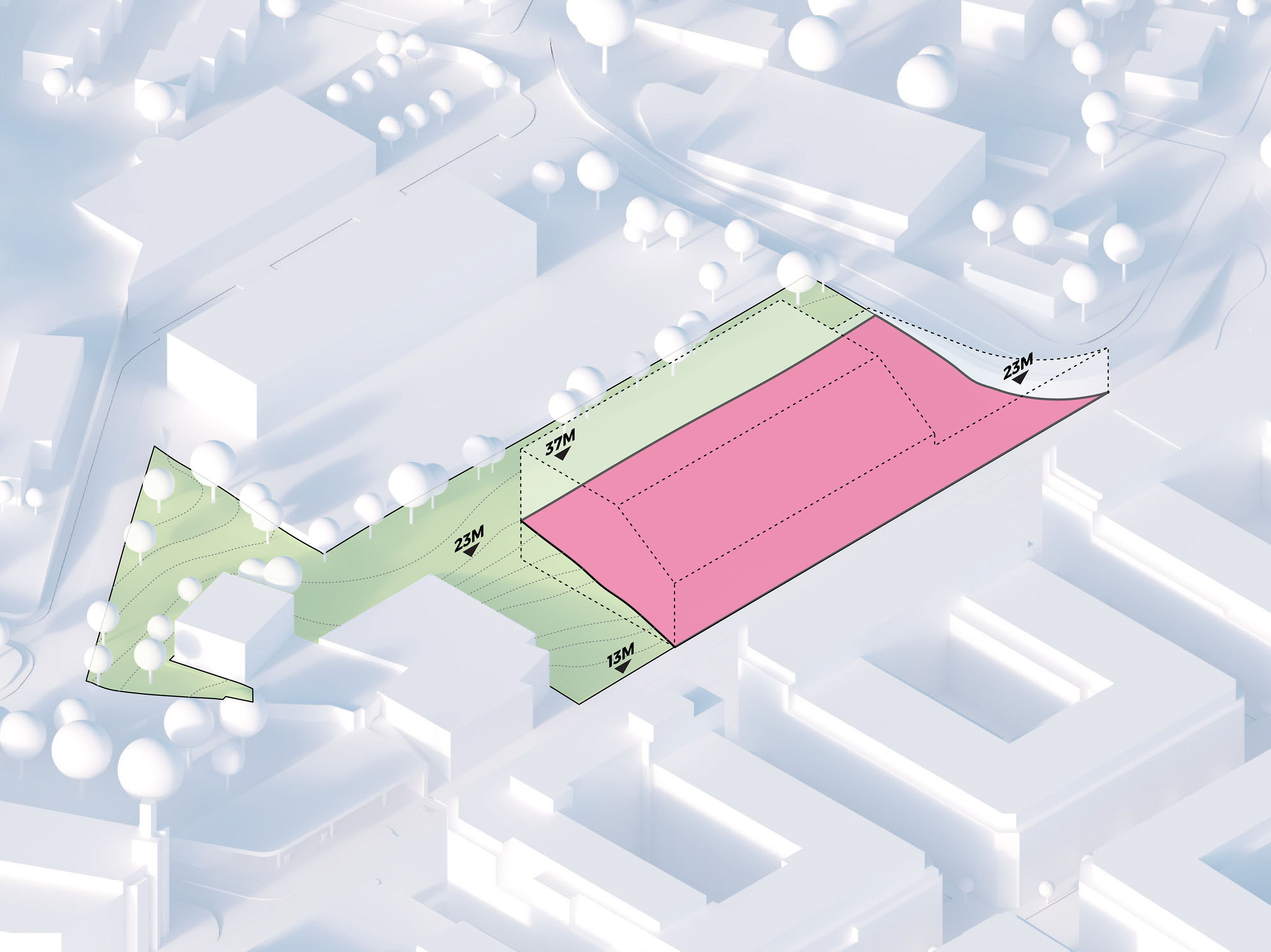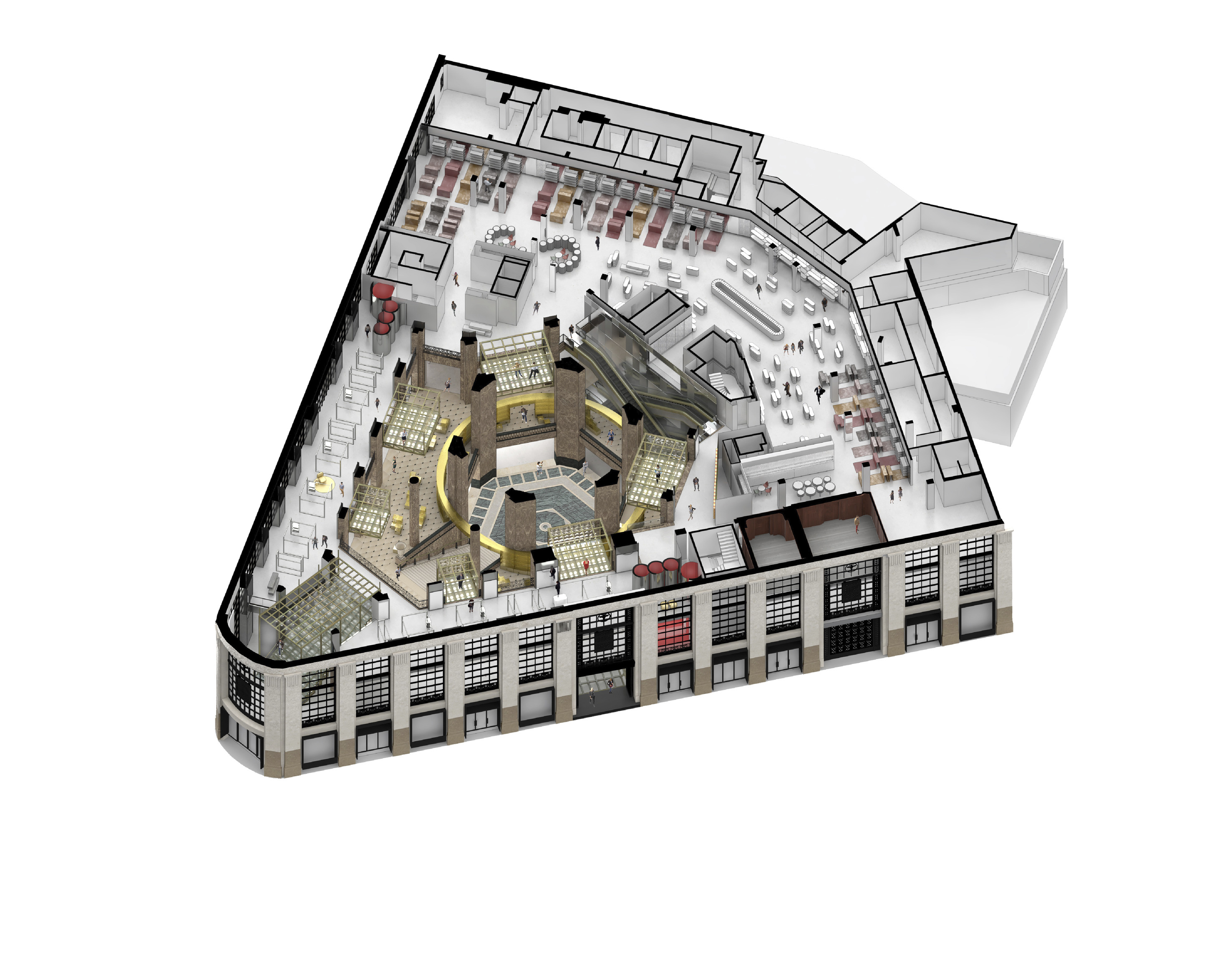 The building footprint results from expanding the public realm, significantly increasing public park space while minimizing the building area at the ground level. Framing the new park are public facing programs – a new 47,000 sq ft YMCA; 30,000 sq ft of neighborhood-oriented retail space; and 4,500 sq ft of community occupied kiosks.