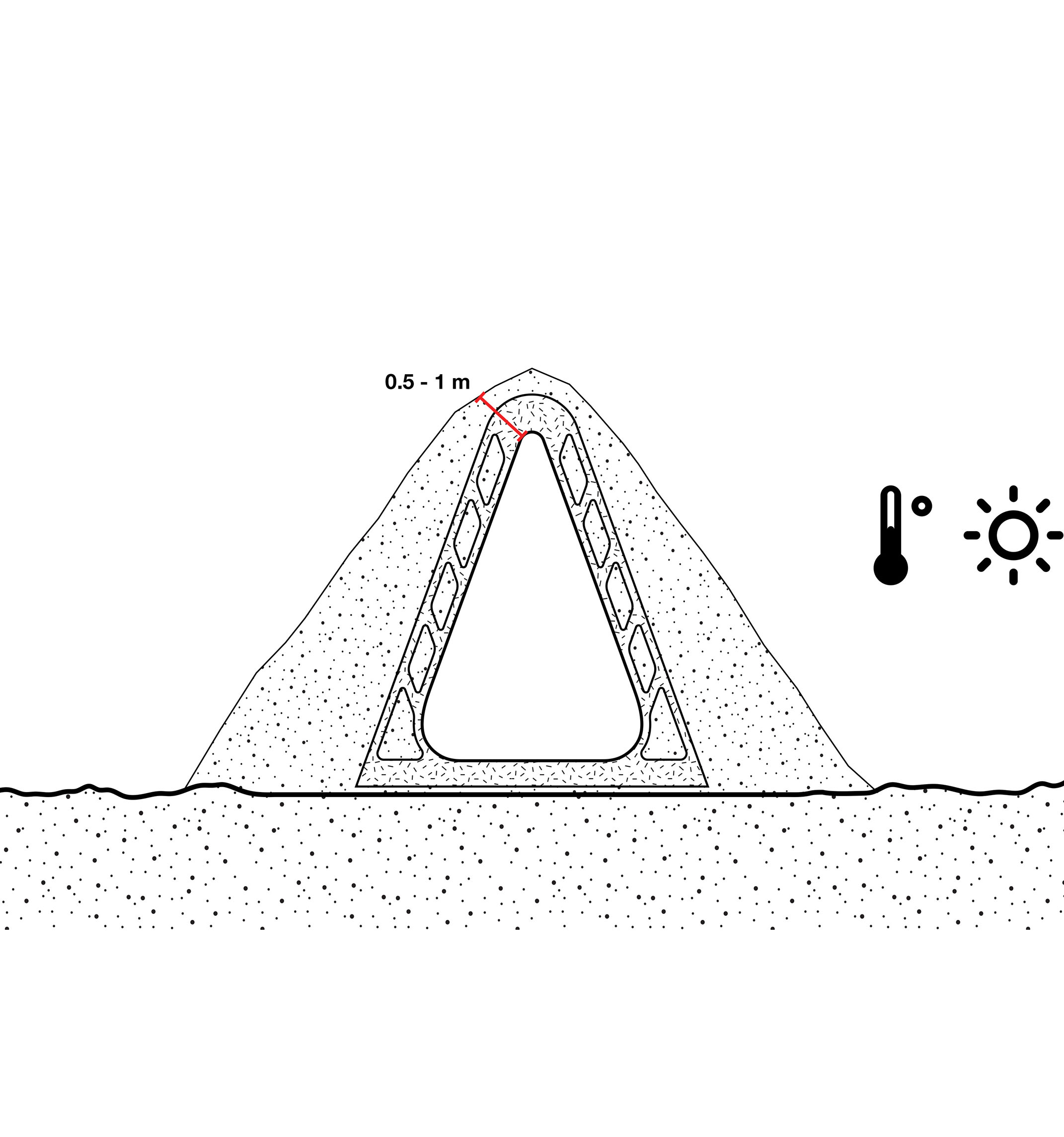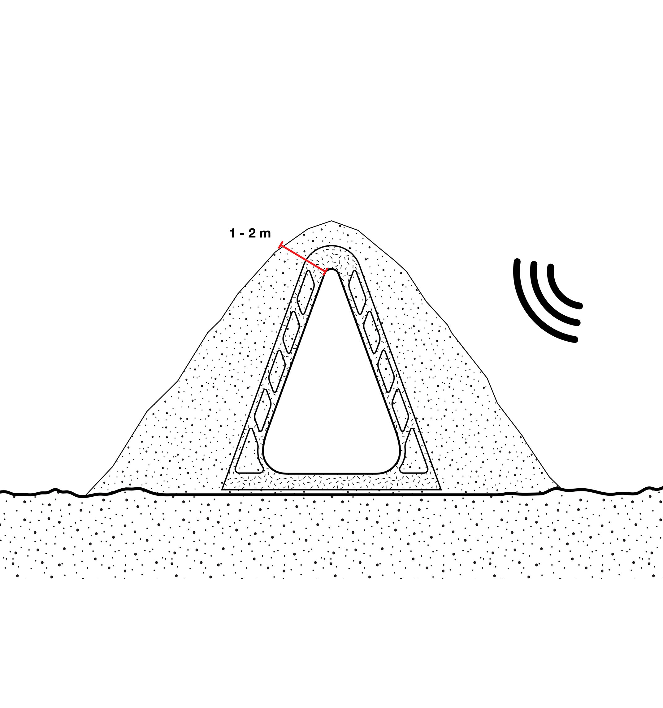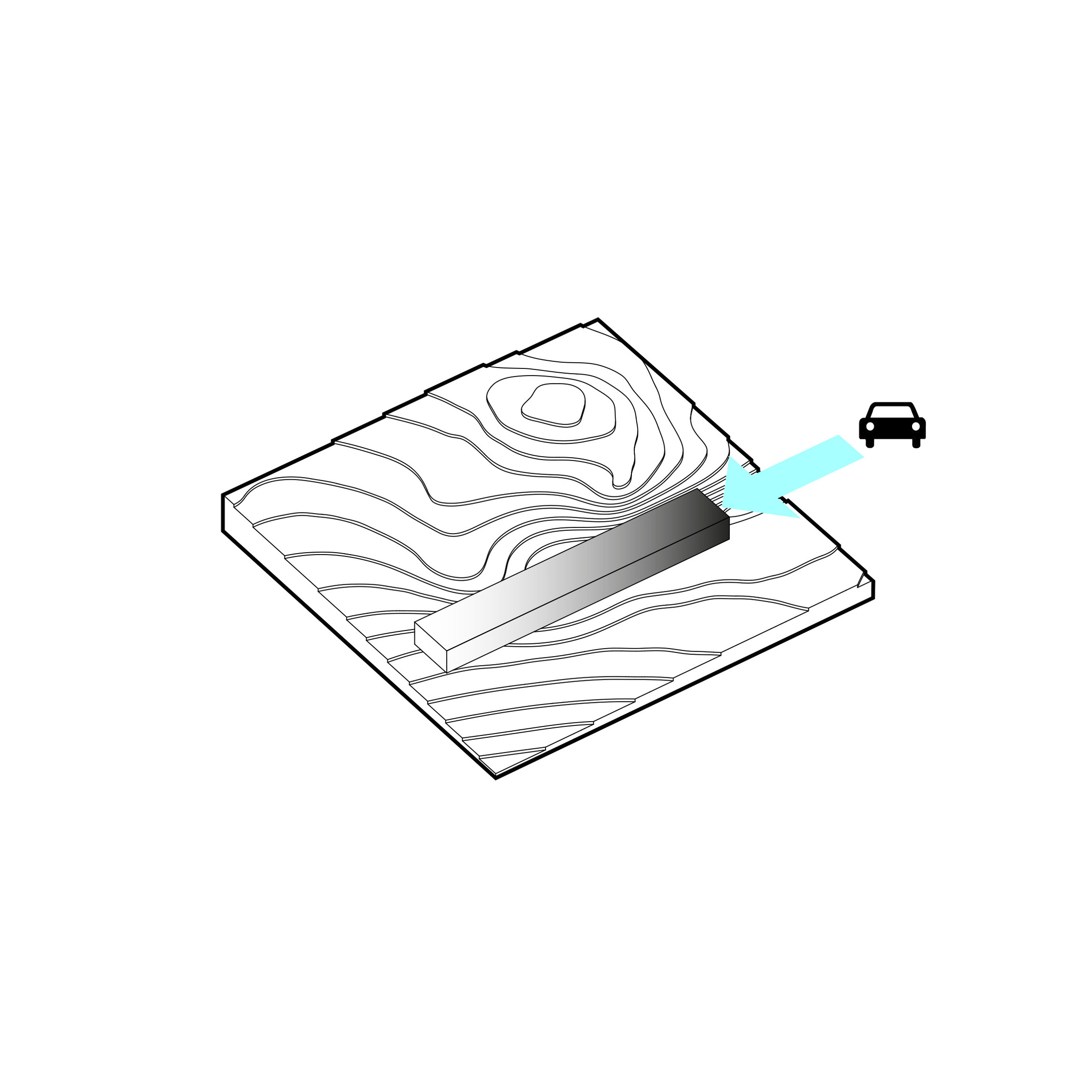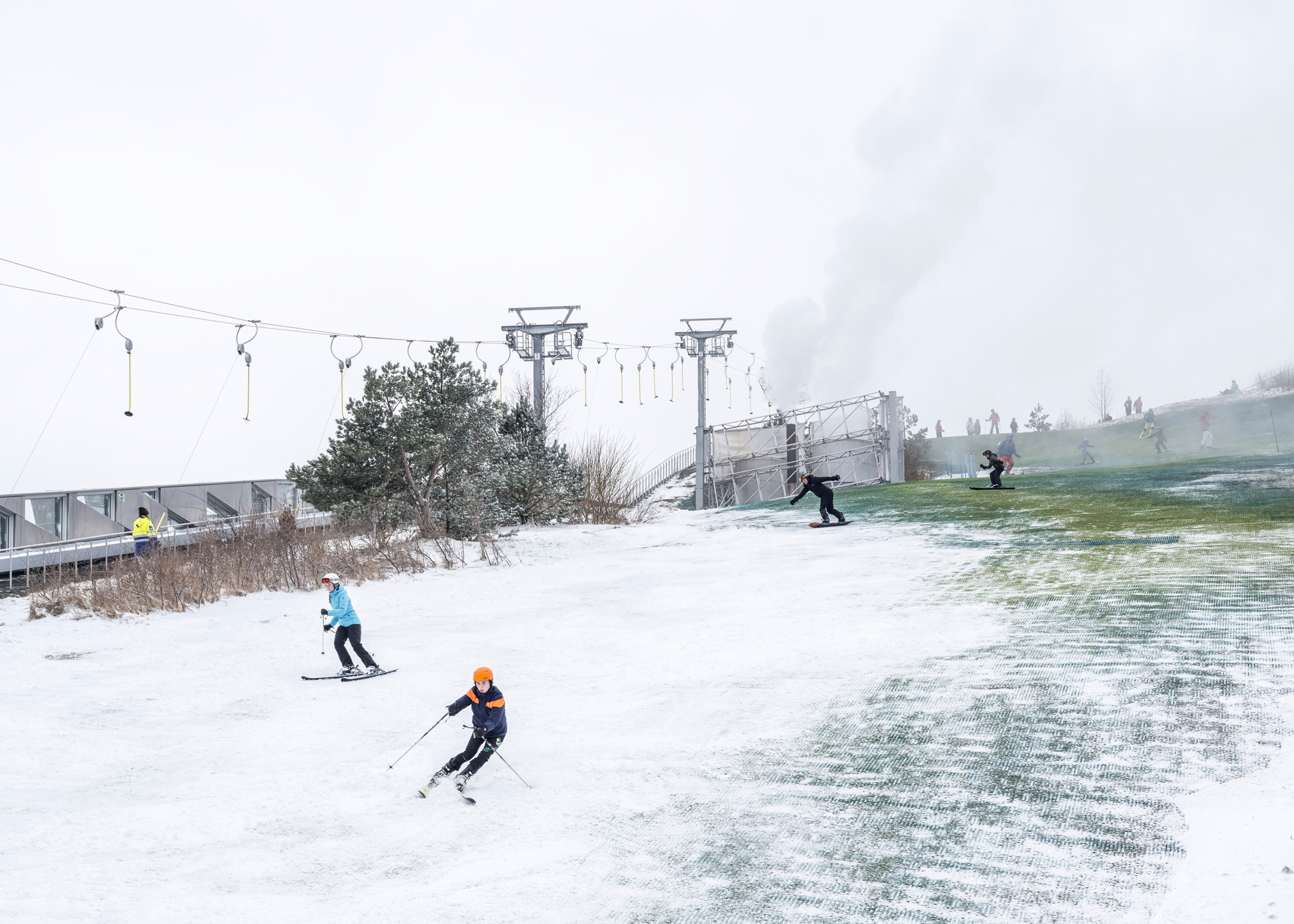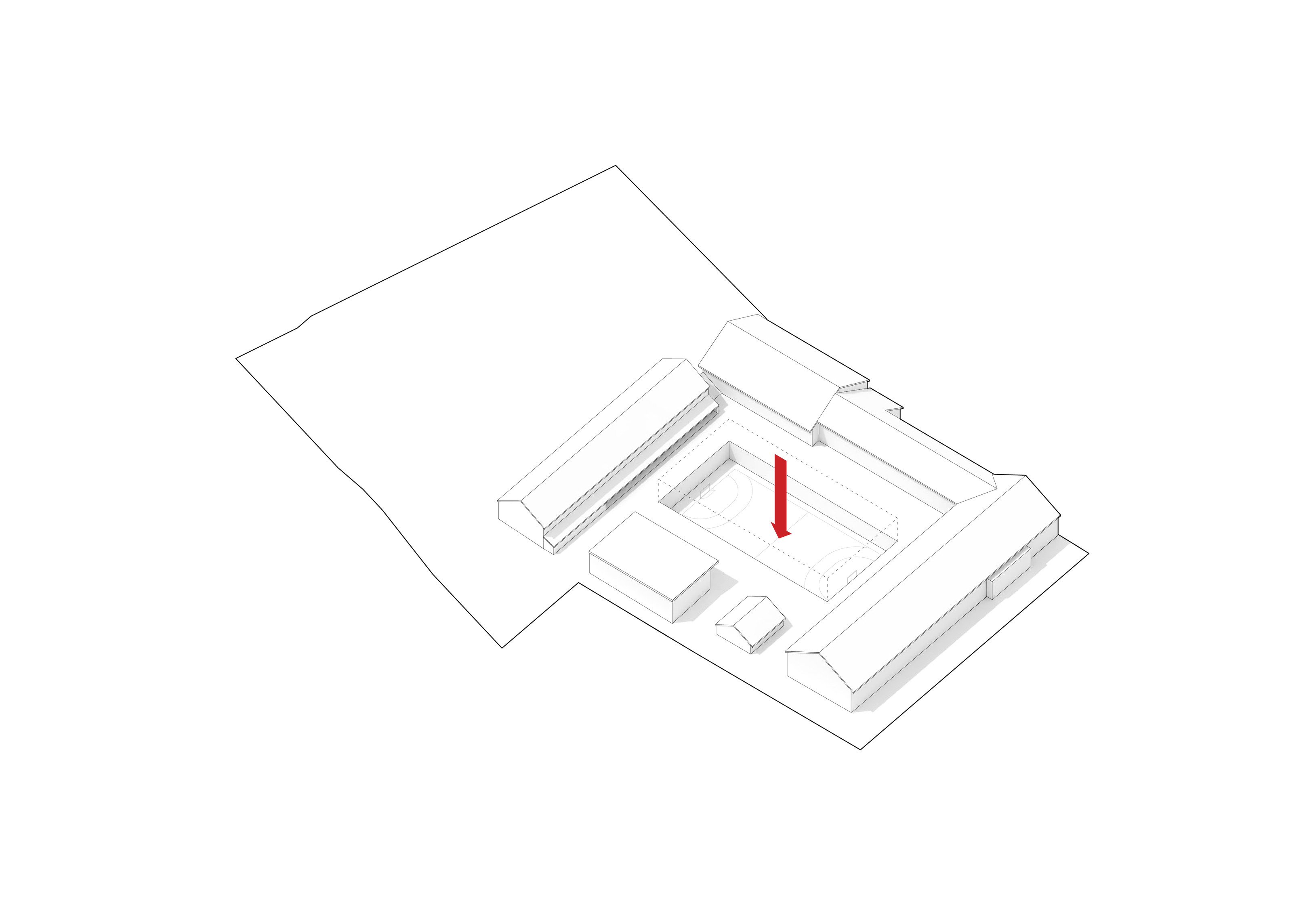 The roof construction of the building is a key element in the clinic’s contextual disguise. In places where the building is half rooted underground the green lawn slips over the roof, making the clinic a natural environment for the cure of mental illness.