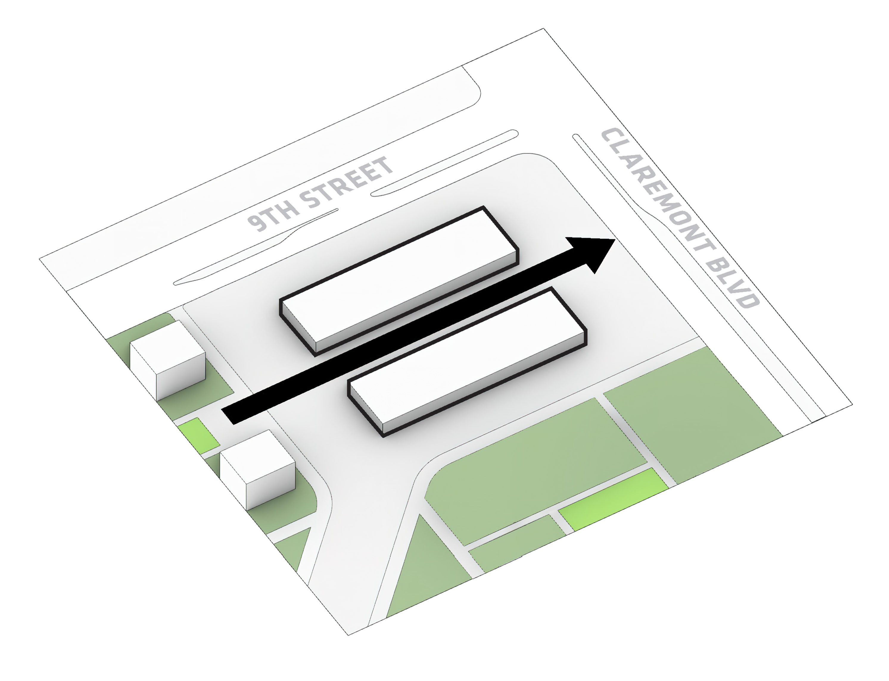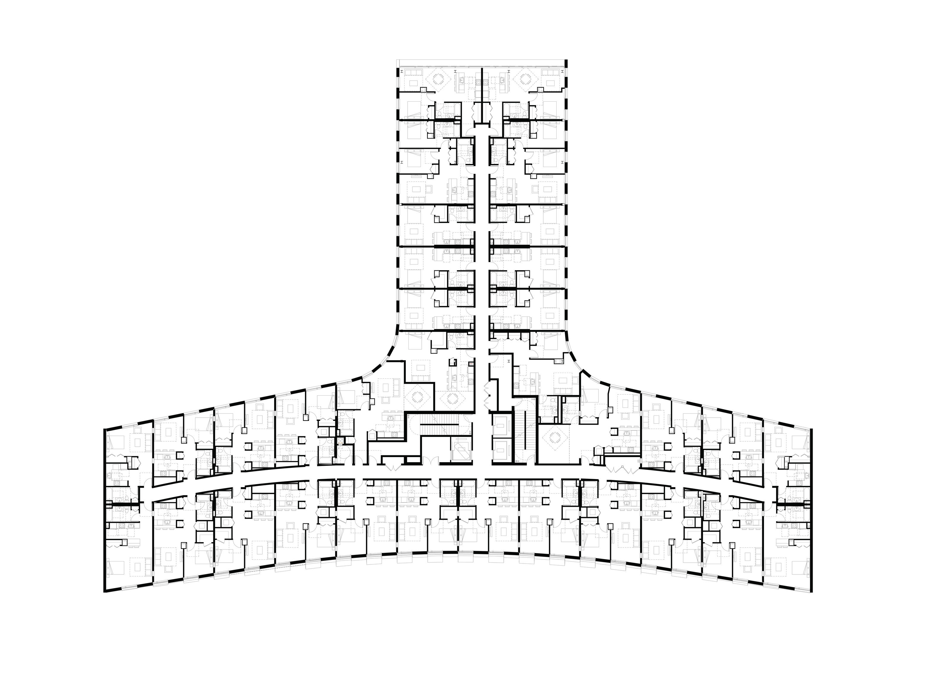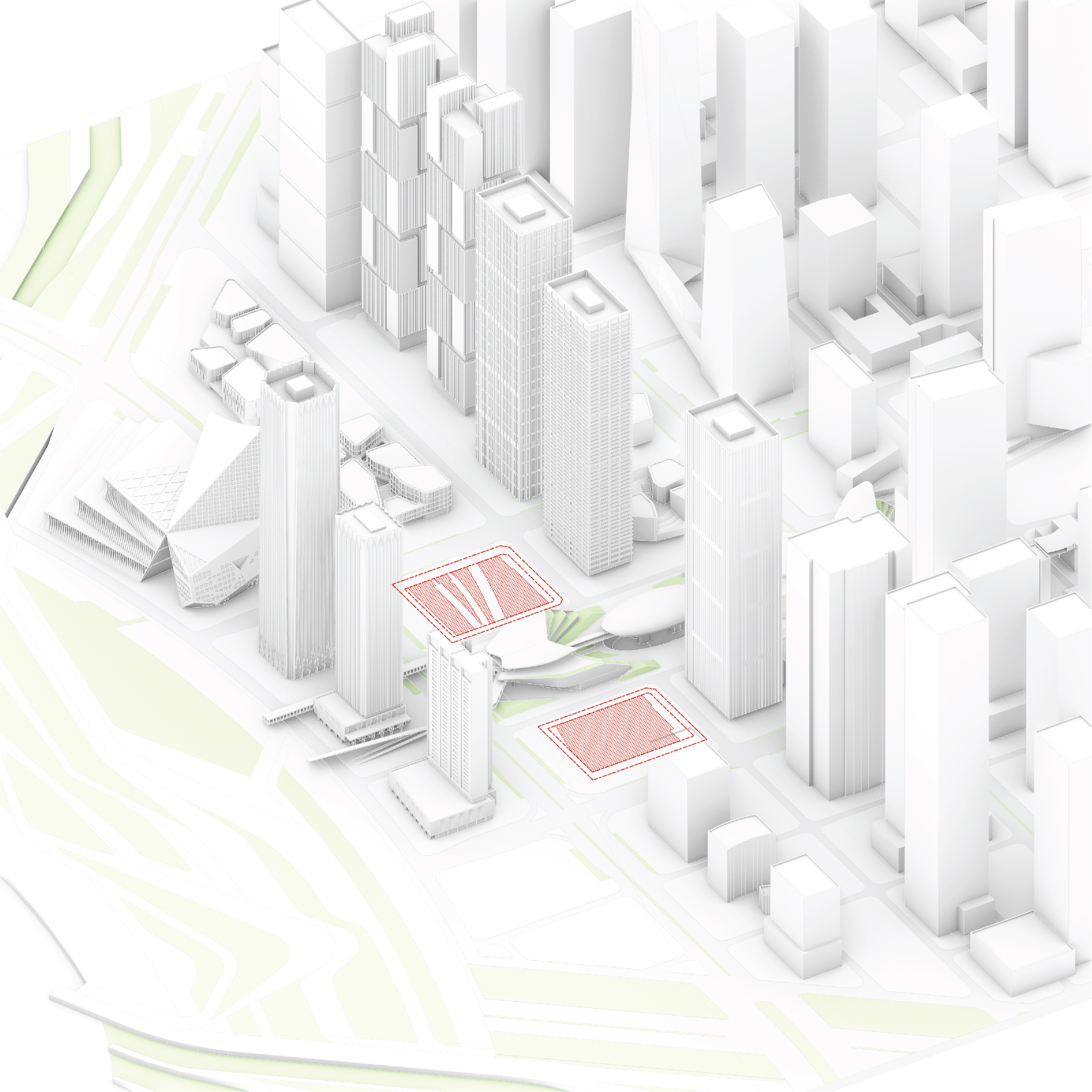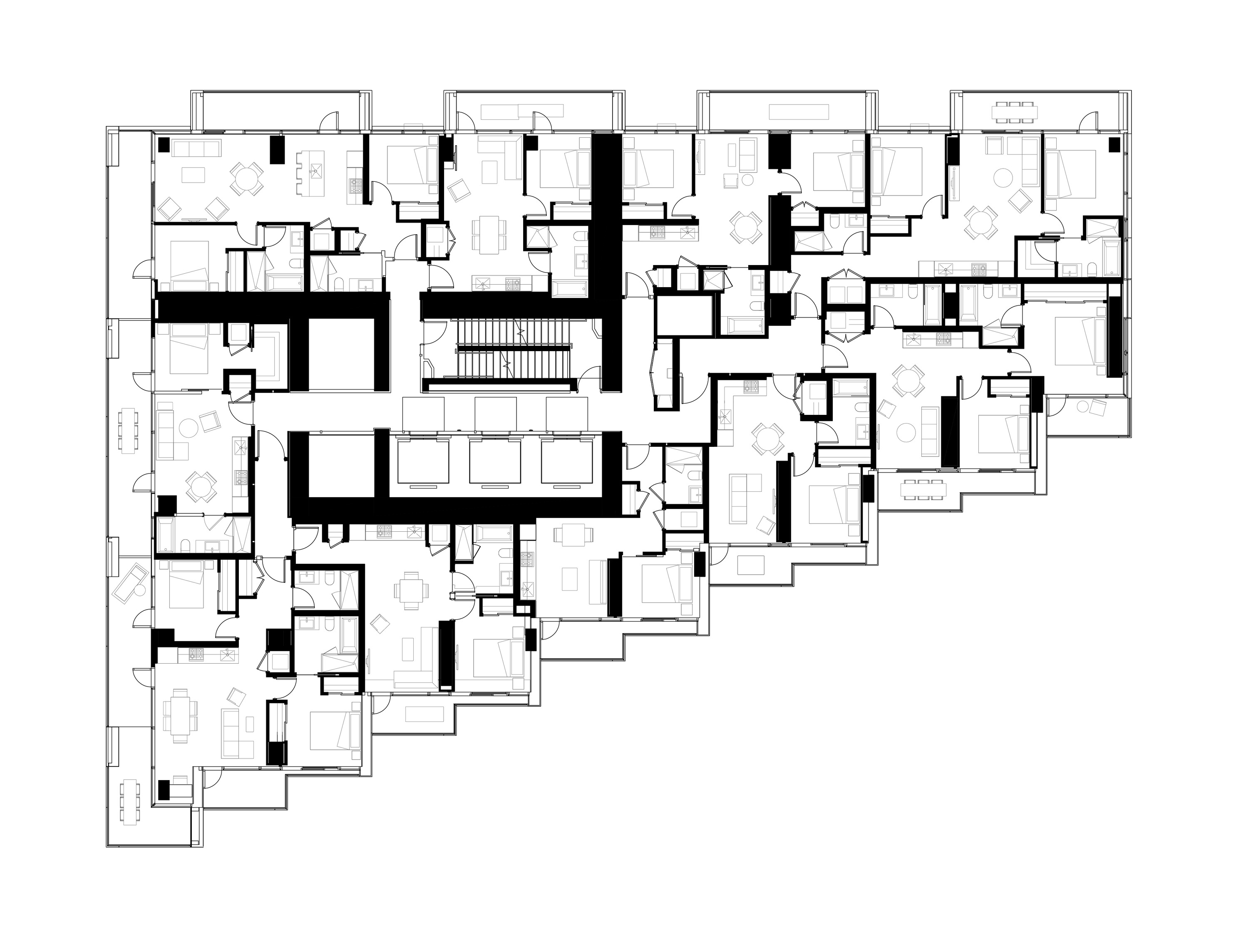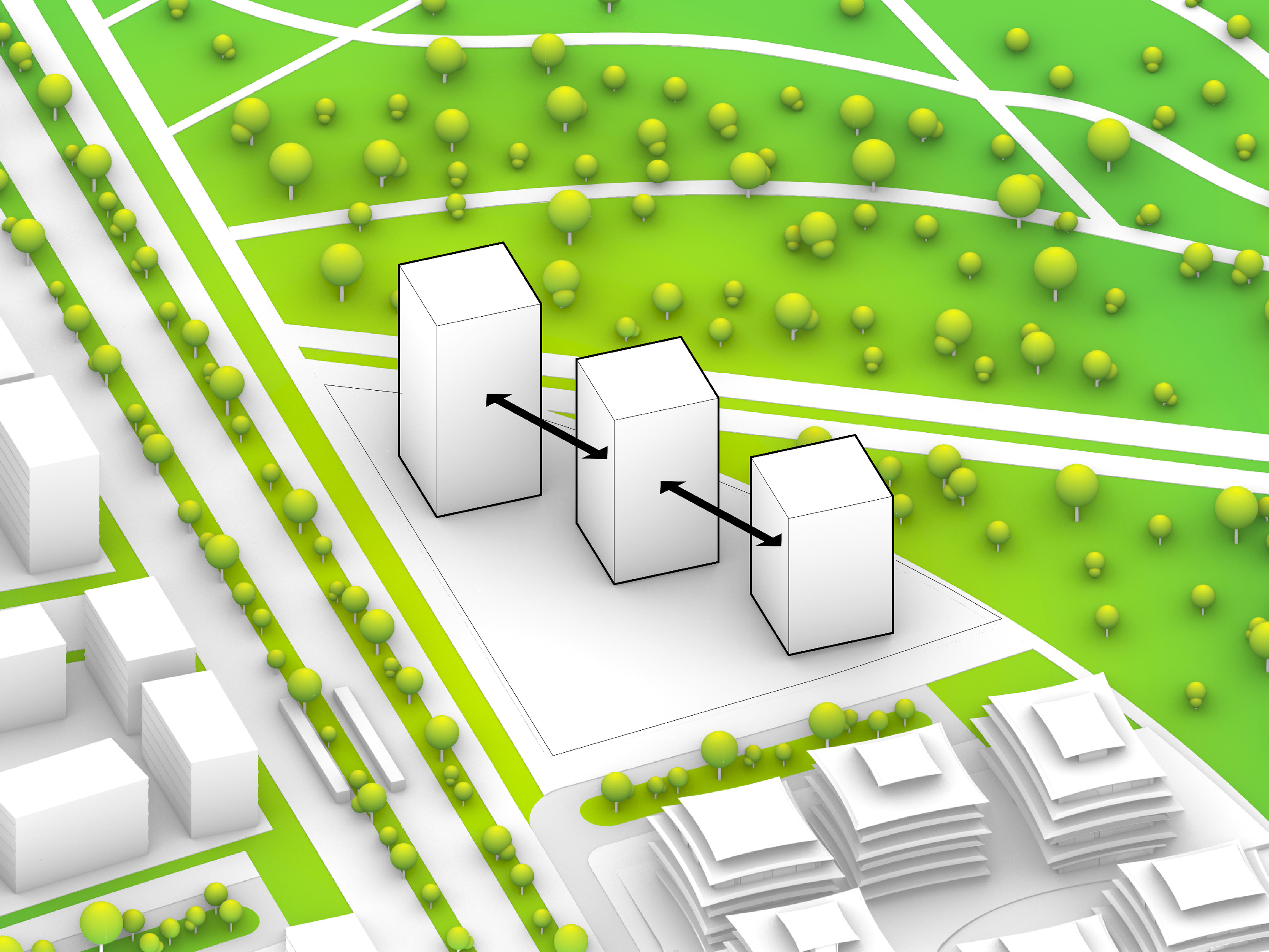 At its base, a pedestrian through-block connection forms a new gateway to the park and subway station. Throughout its height, soft openings are carved into the building mass to create eight distinct blocks. These ‘buildings within a building’ are connected by large, communal green terraces at different elevations.