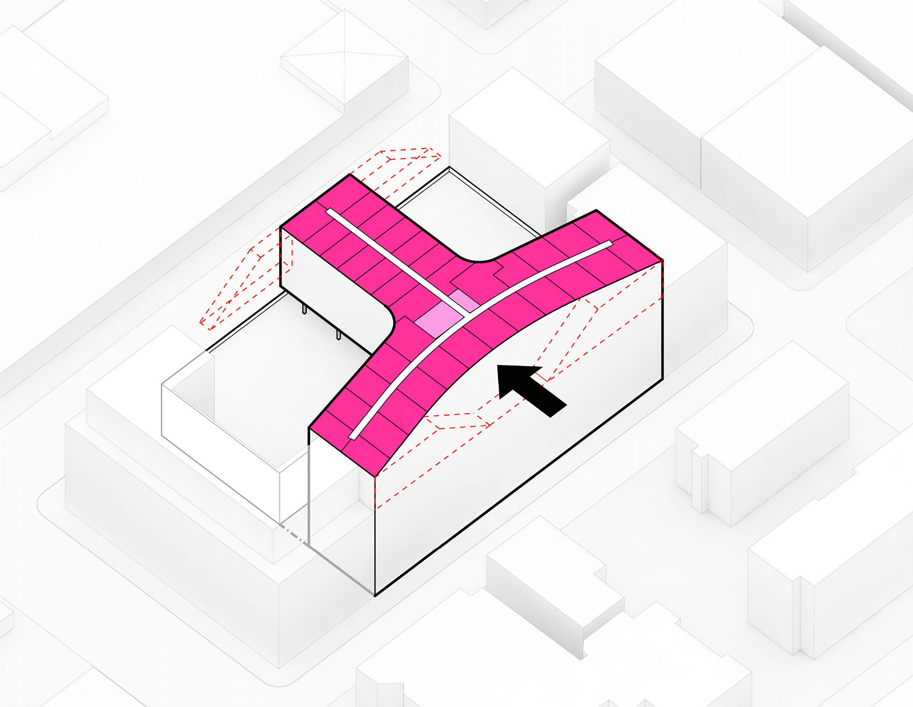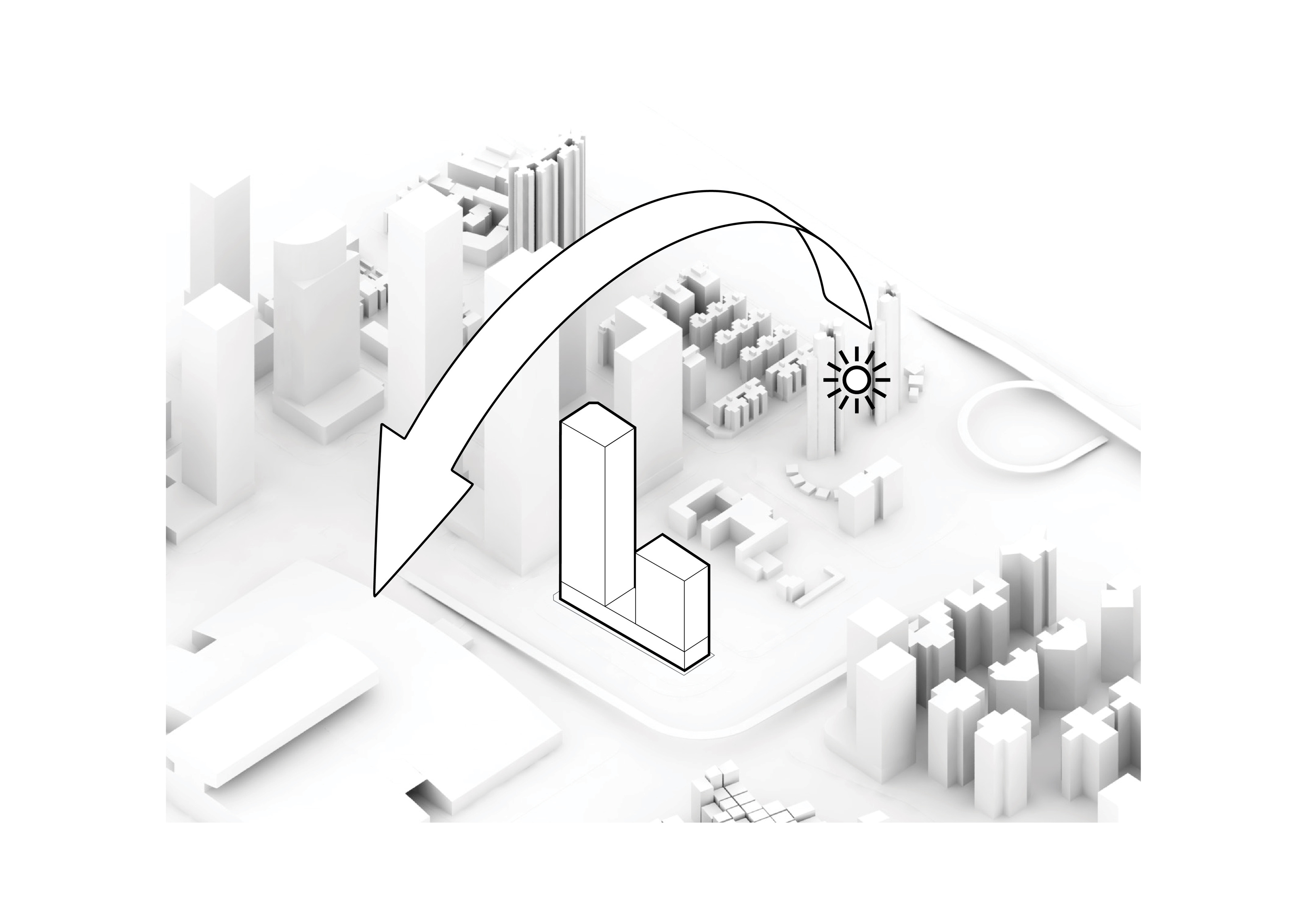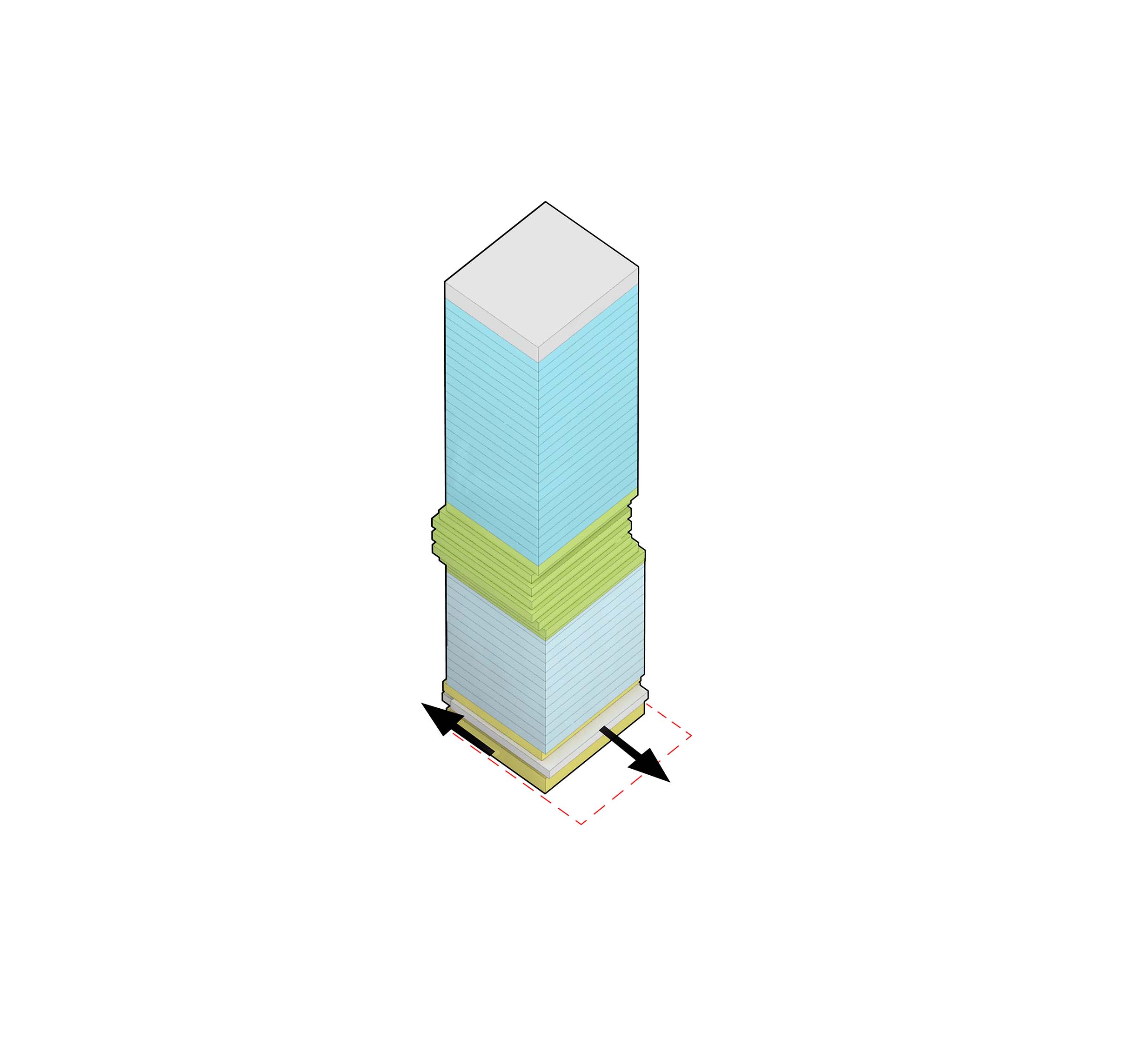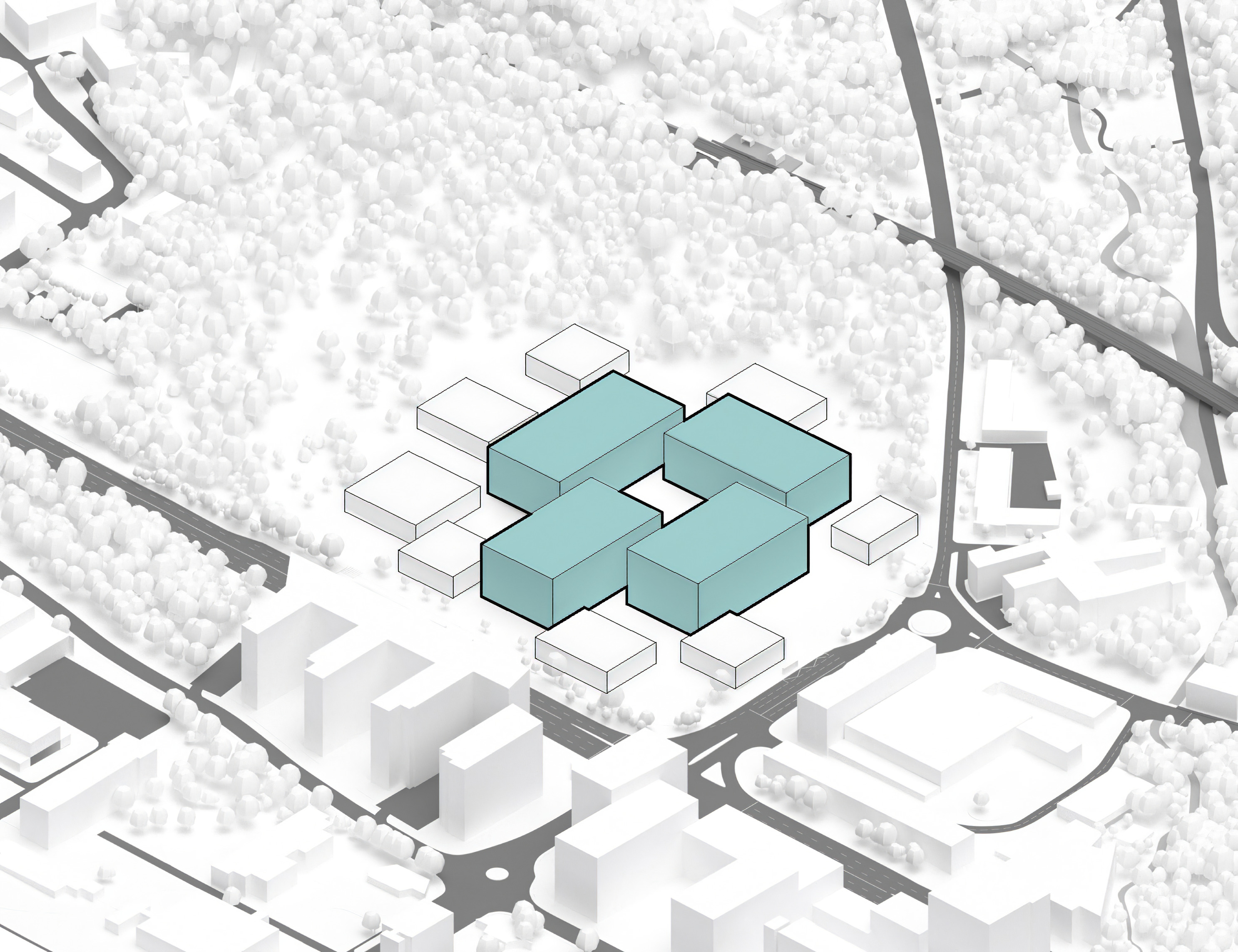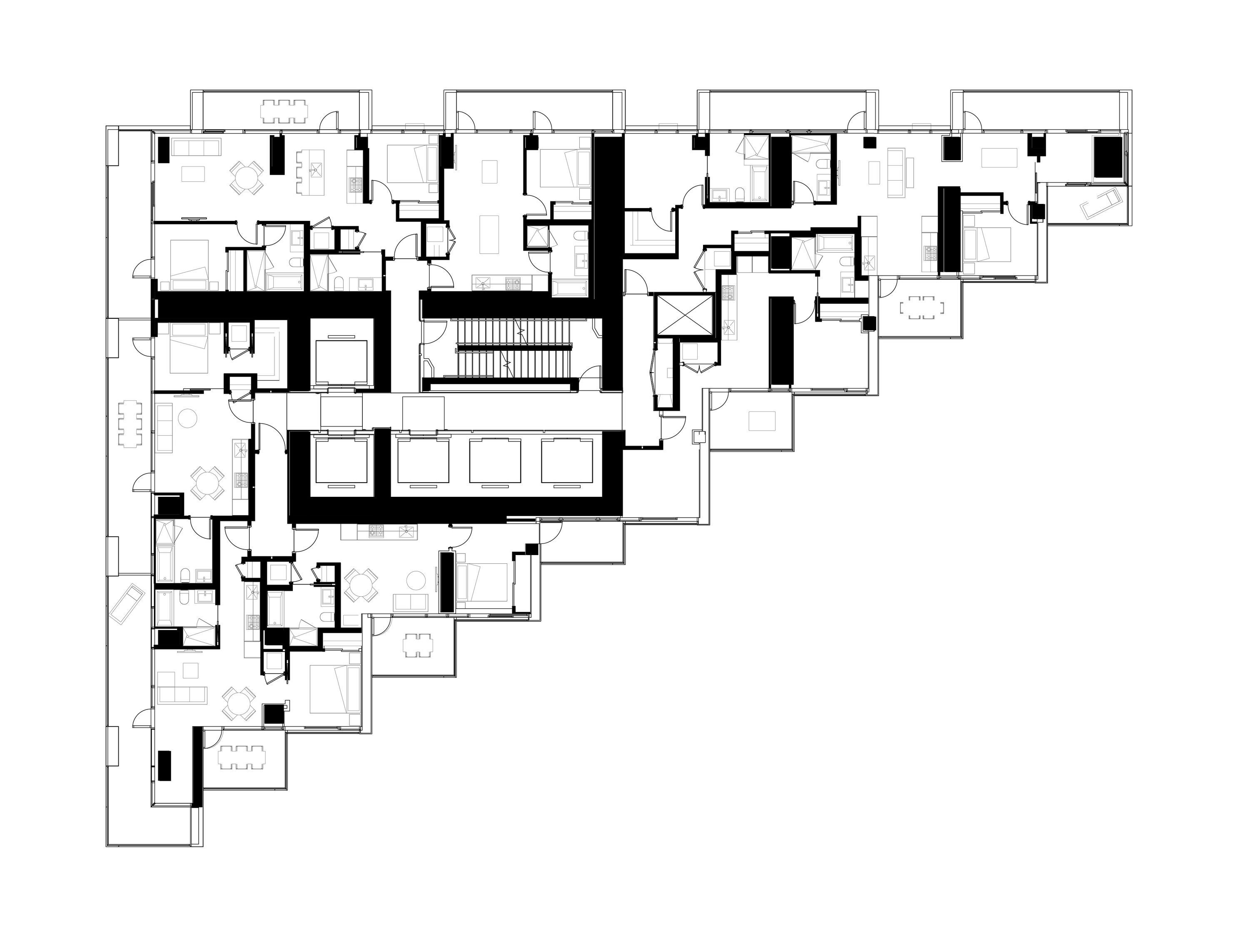 At its base, a pedestrian through-block connection forms a new gateway to the park and subway station. Throughout its height, soft openings are carved into the building mass to create eight distinct blocks. These ‘buildings within a building’ are connected by large, communal green terraces at different elevations.