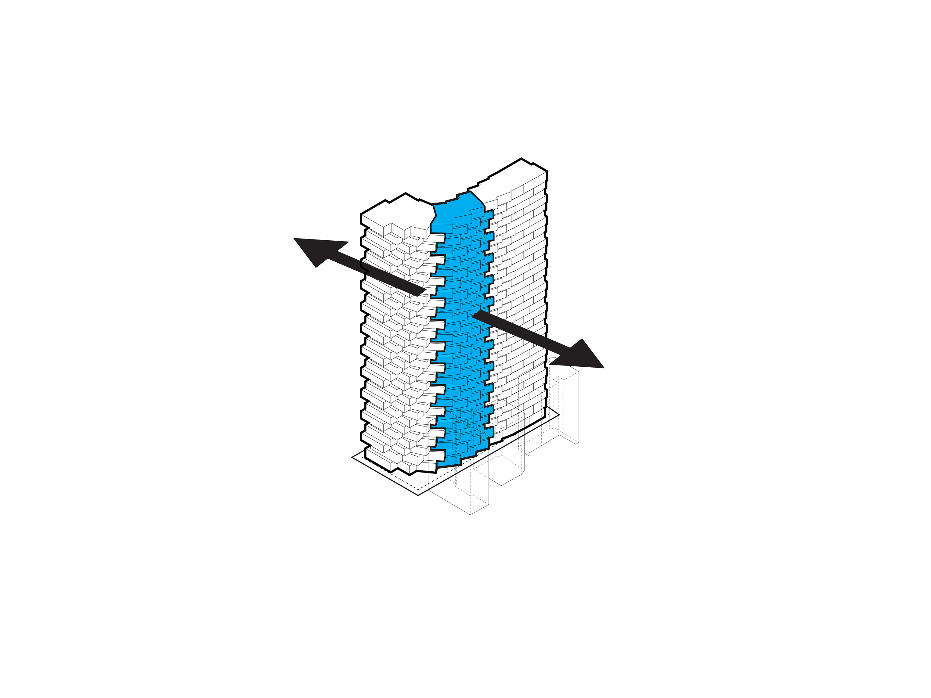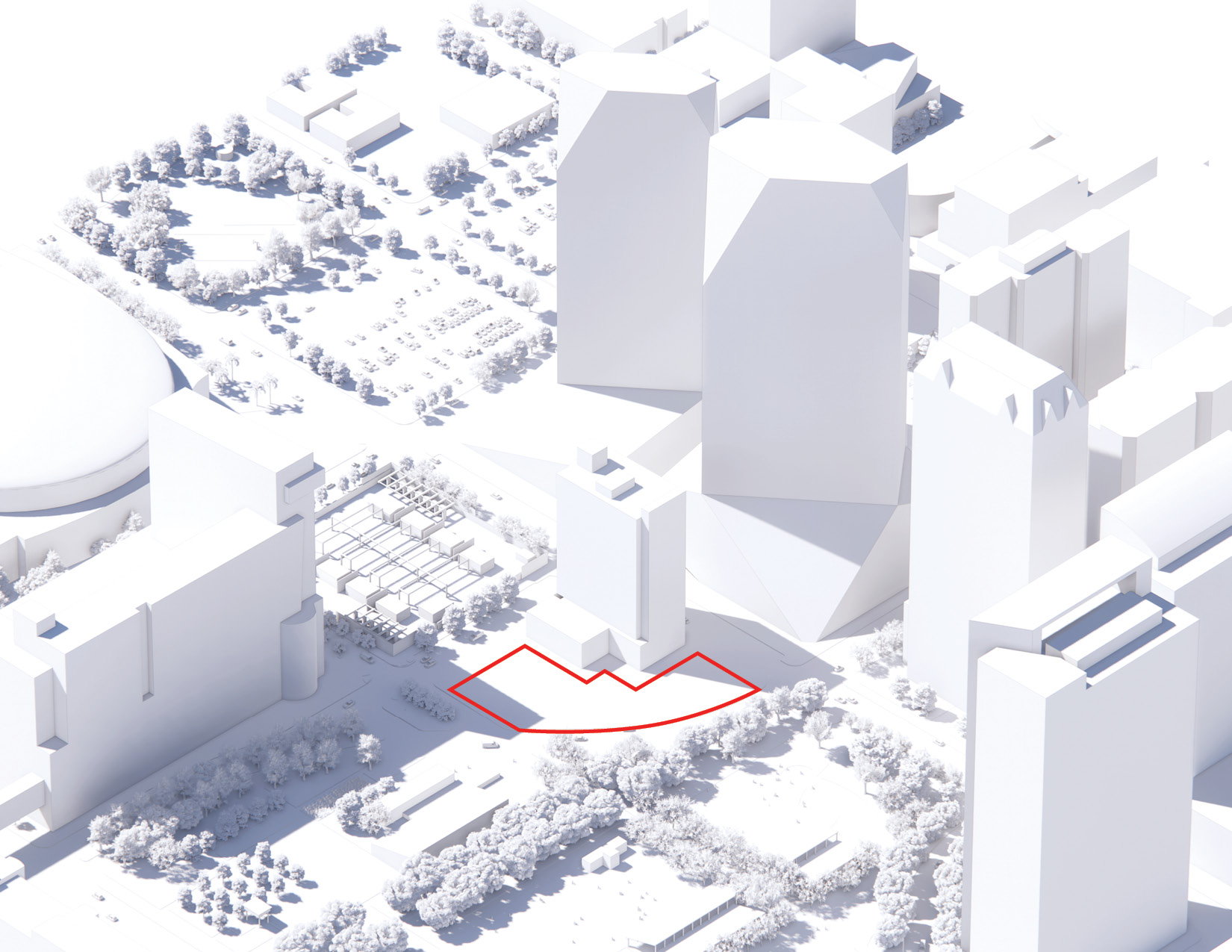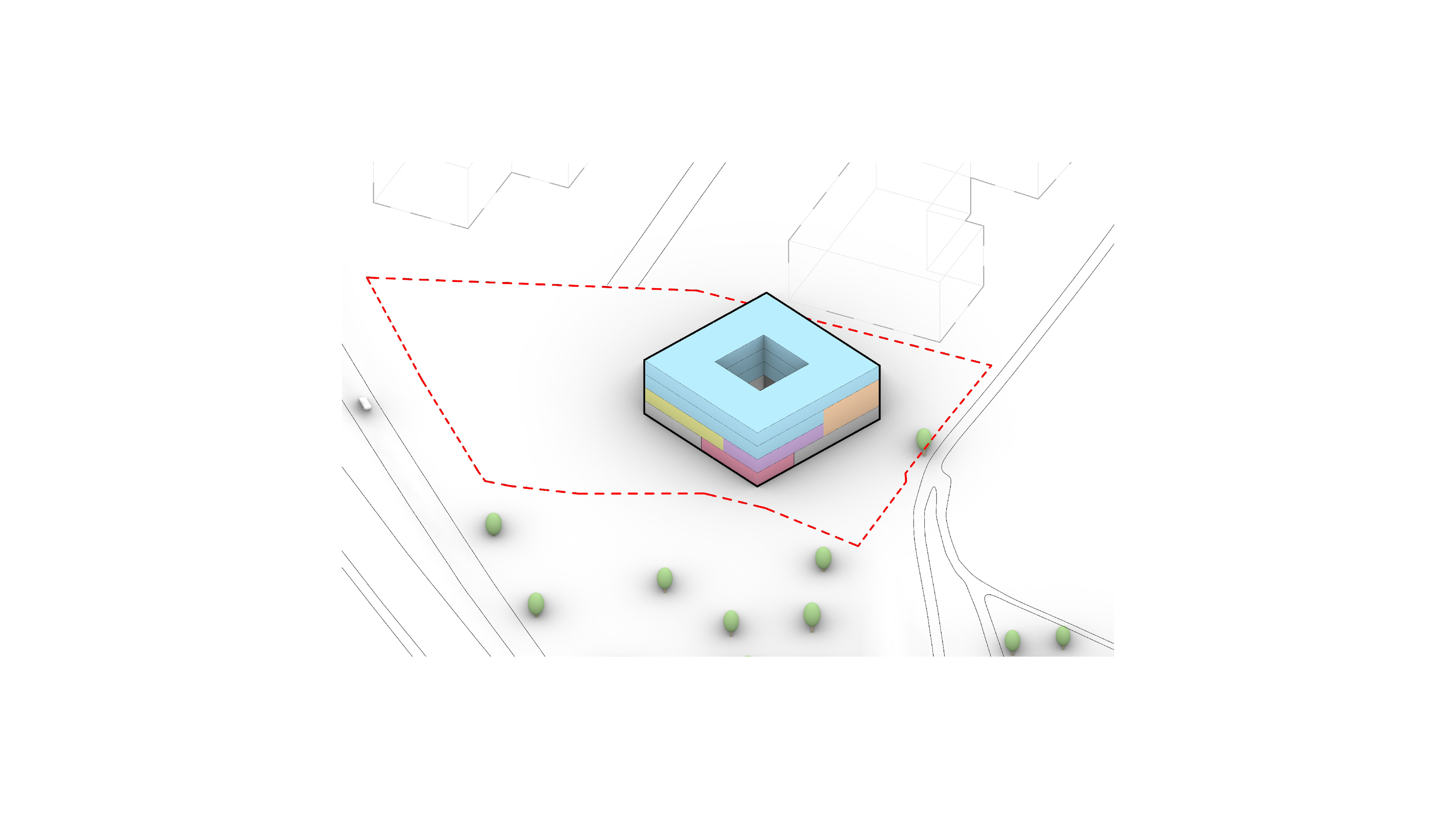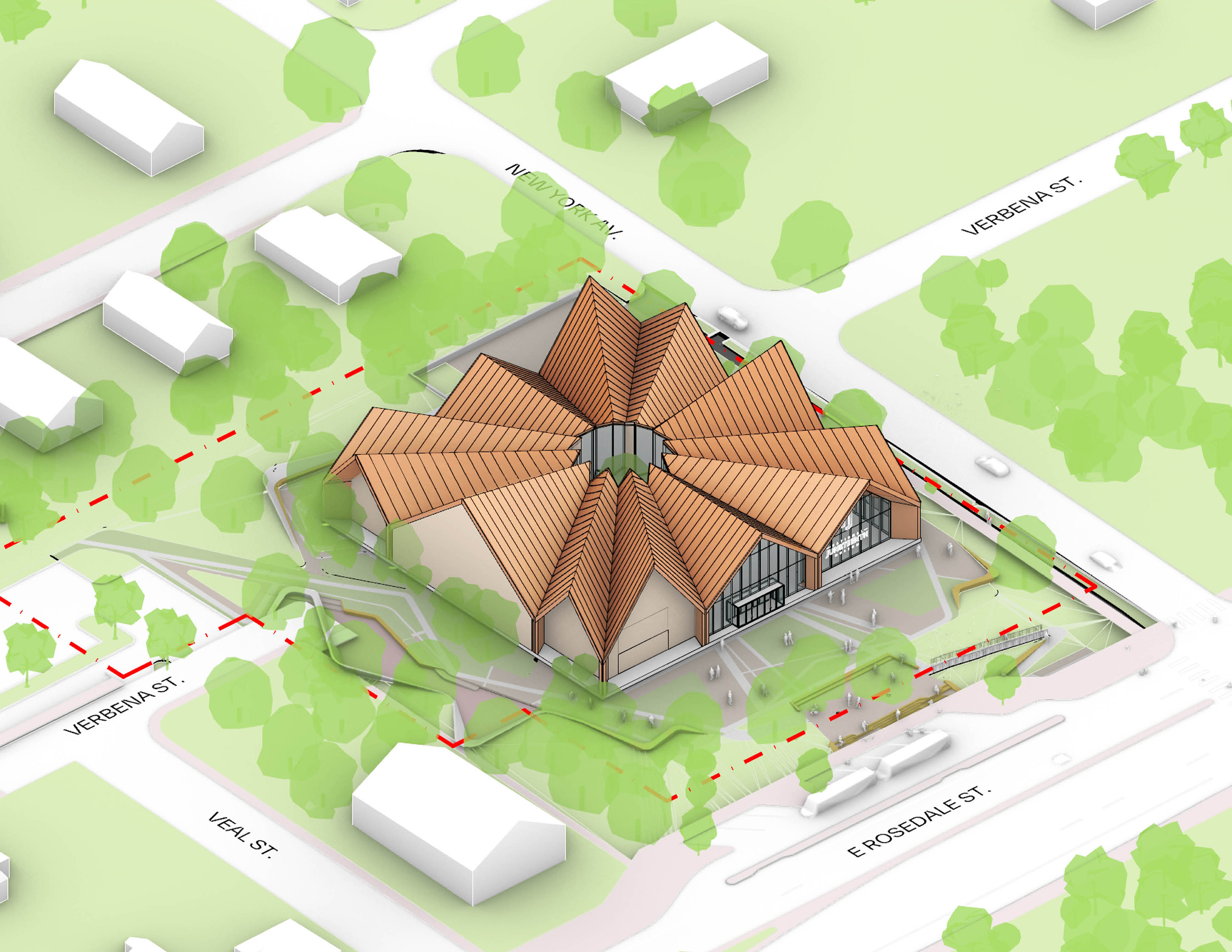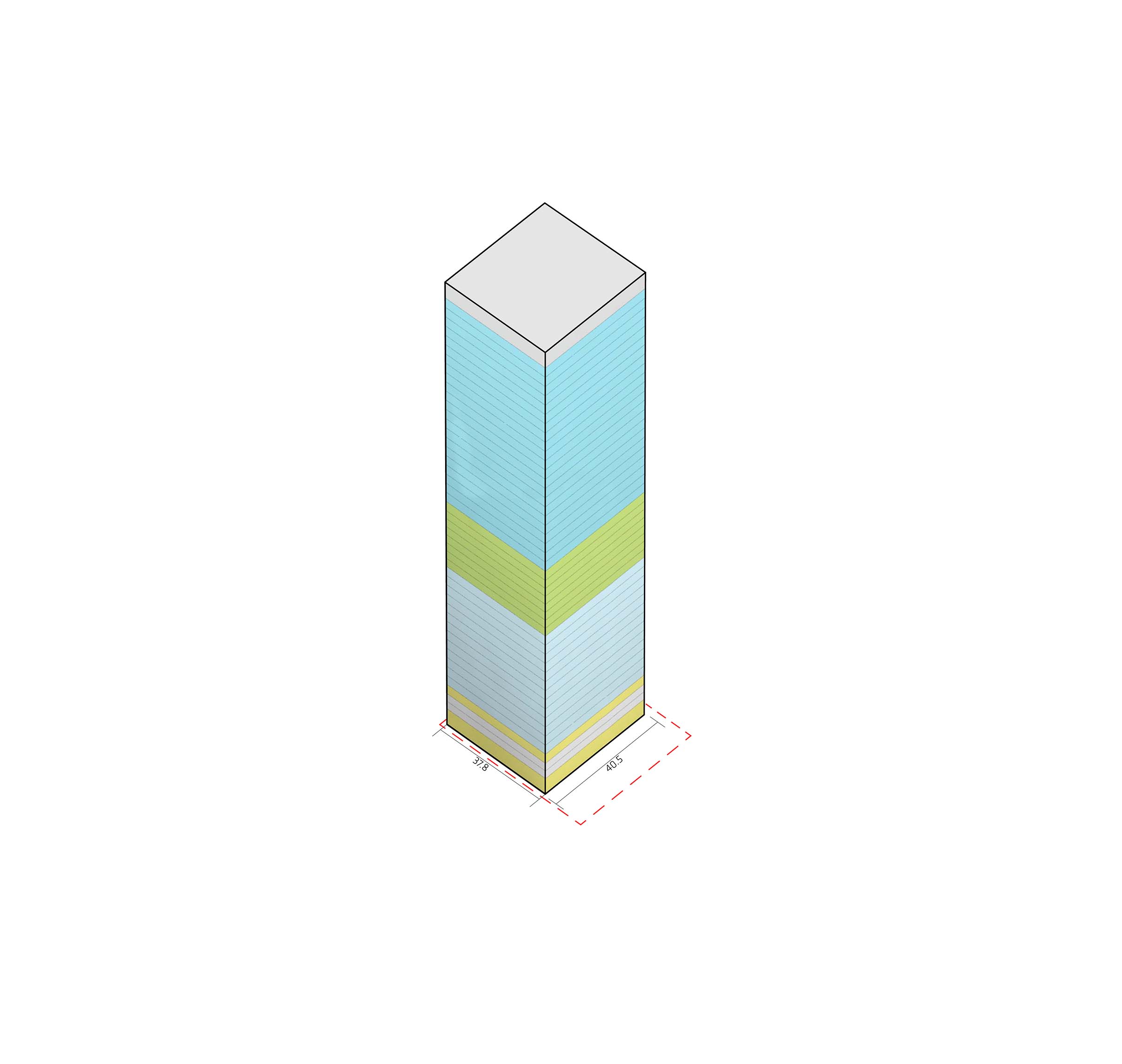 At its base, a pedestrian through-block connection forms a new gateway to the park and subway station. Throughout its height, soft openings are carved into the building mass to create eight distinct blocks. These ‘buildings within a building’ are connected by large, communal green terraces at different elevations.