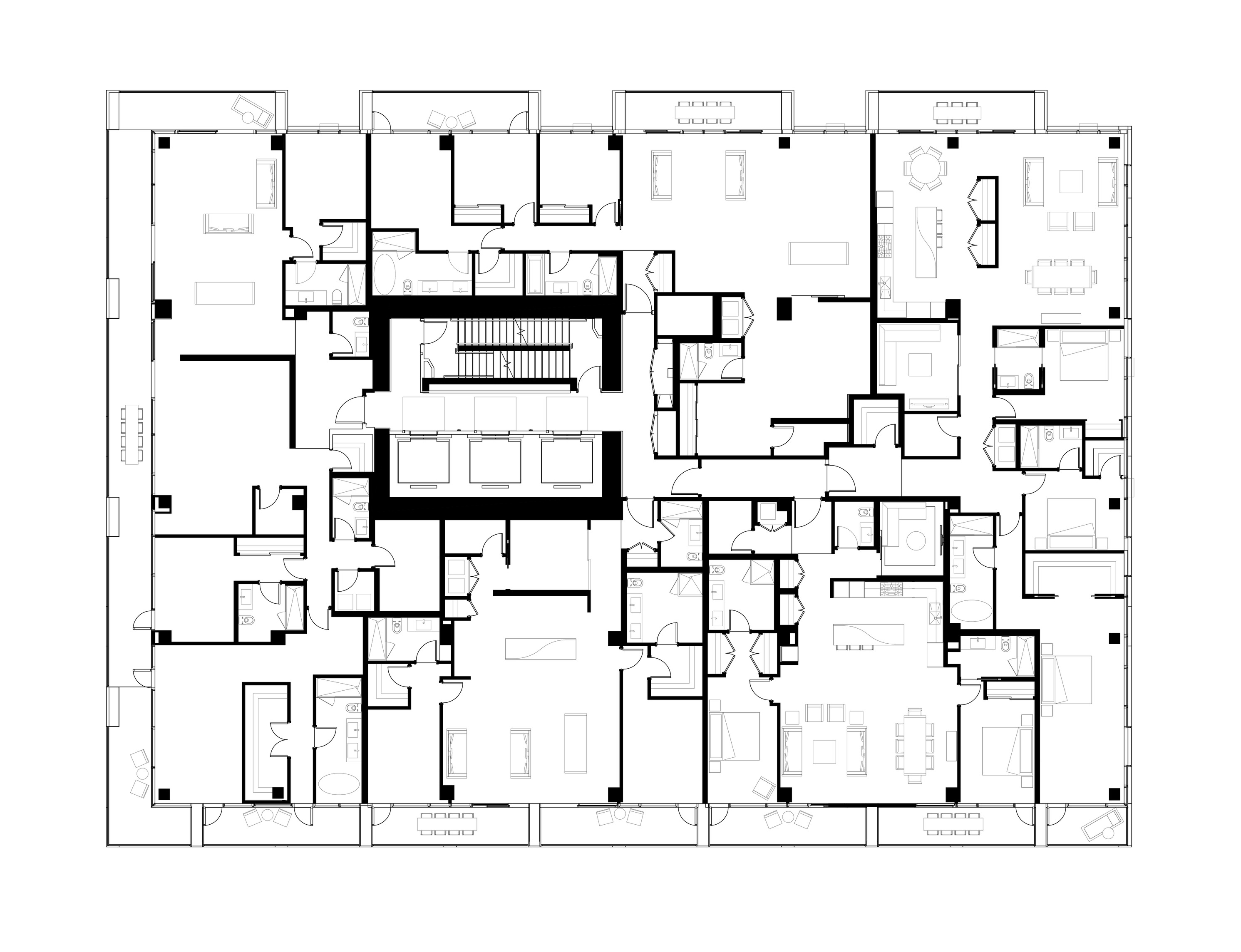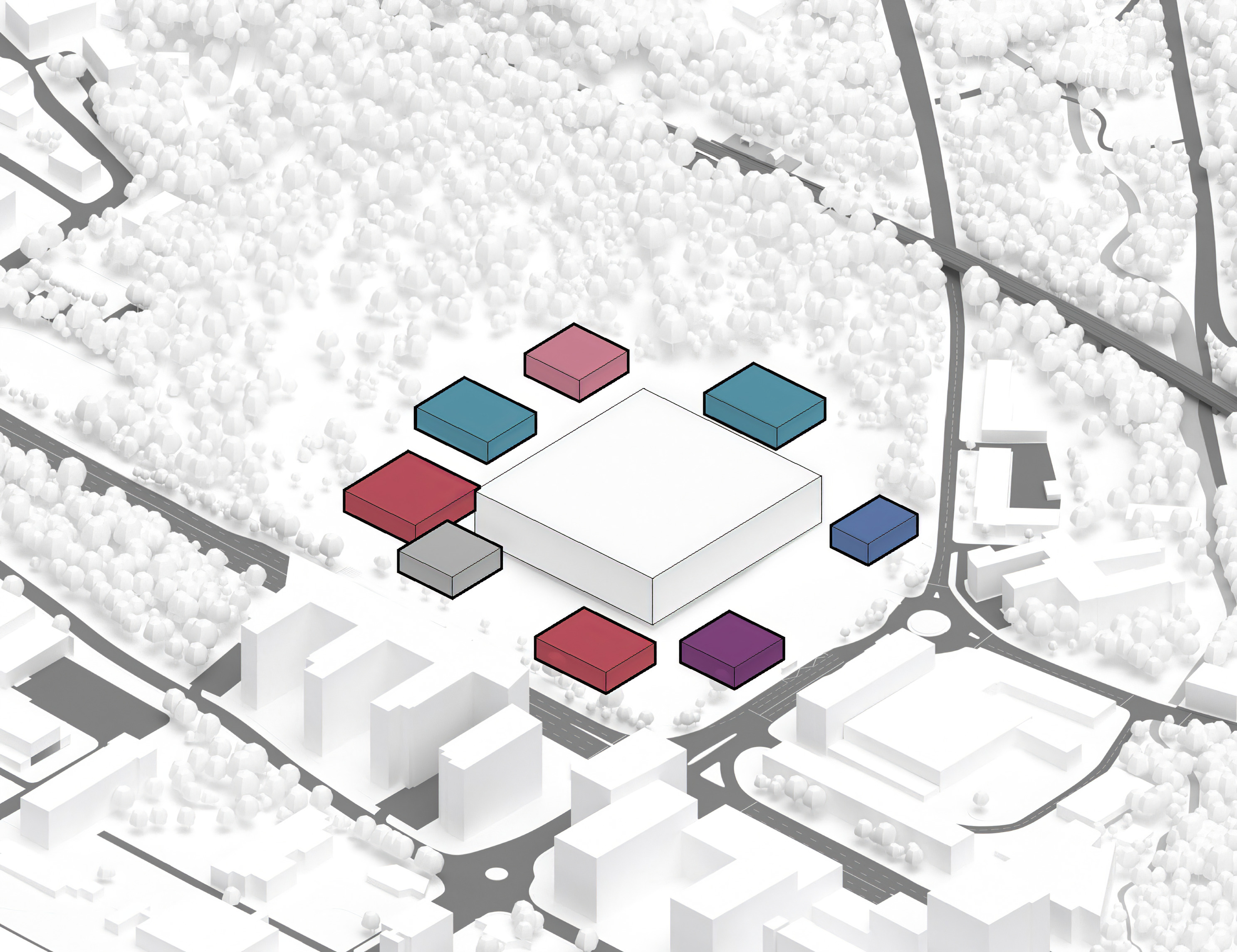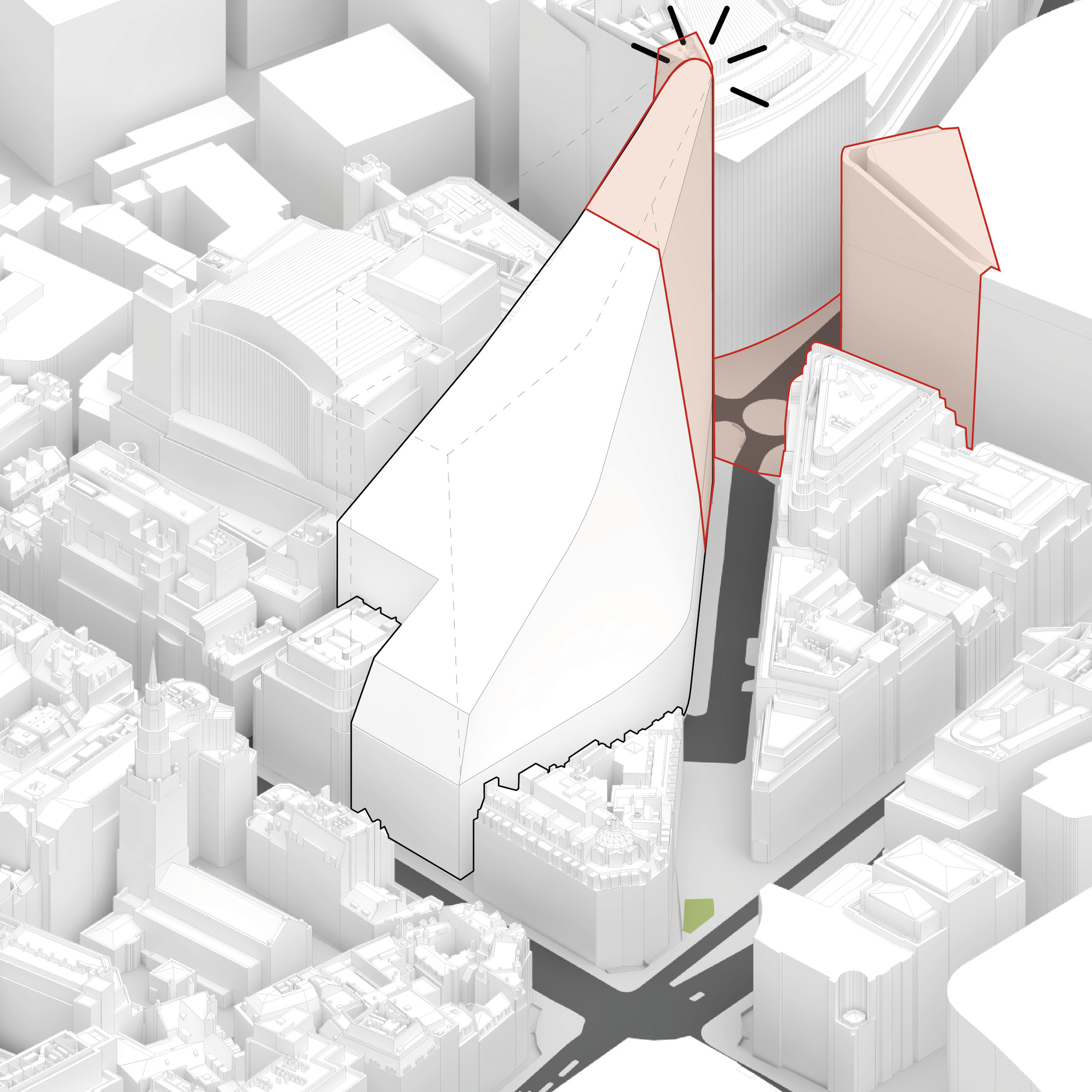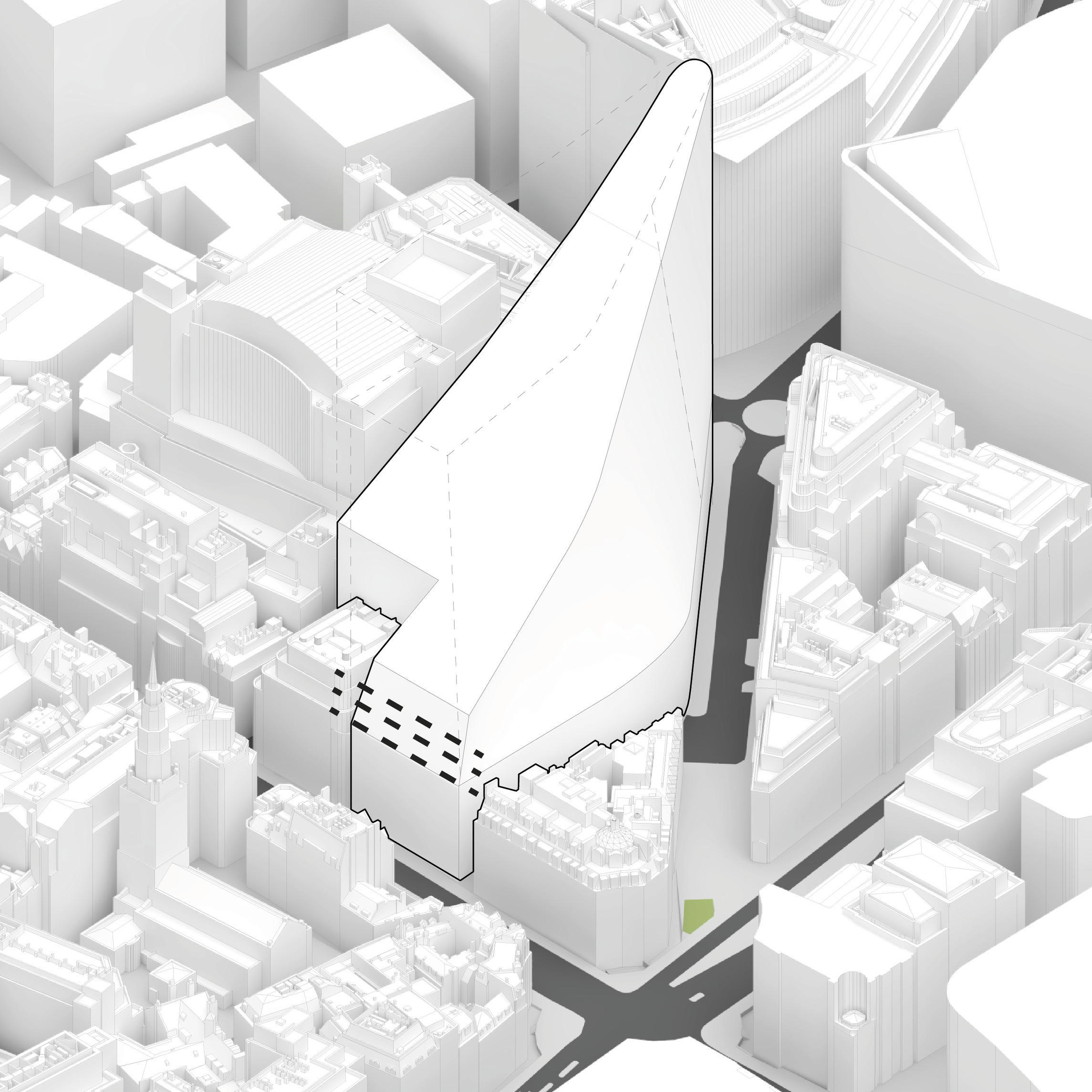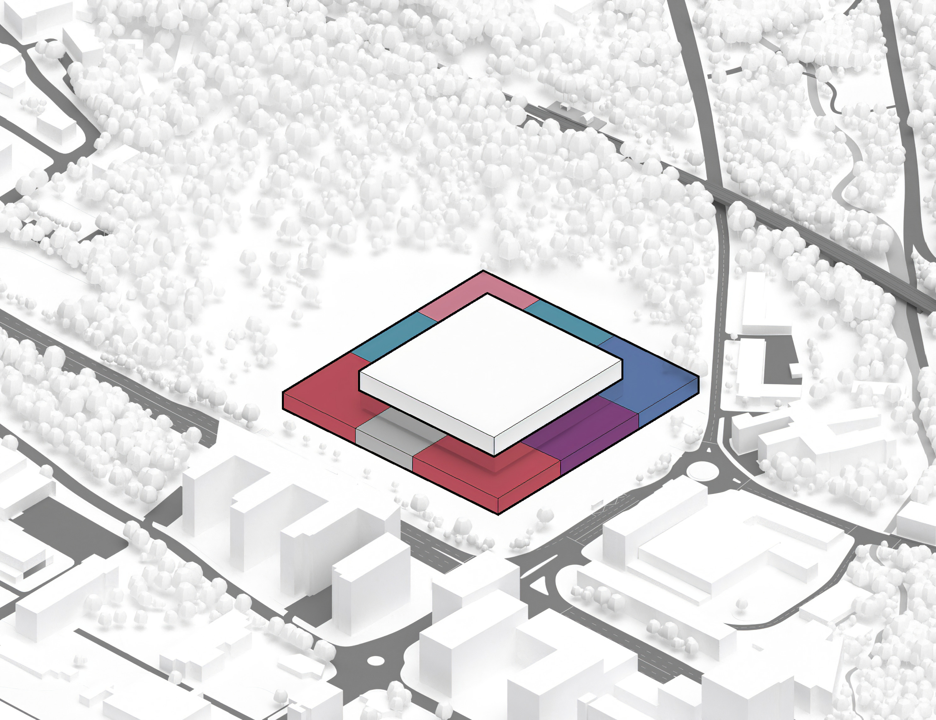 At its base, a pedestrian through-block connection forms a new gateway to the park and subway station. Throughout its height, soft openings are carved into the building mass to create eight distinct blocks. These ‘buildings within a building’ are connected by large, communal green terraces at different elevations.