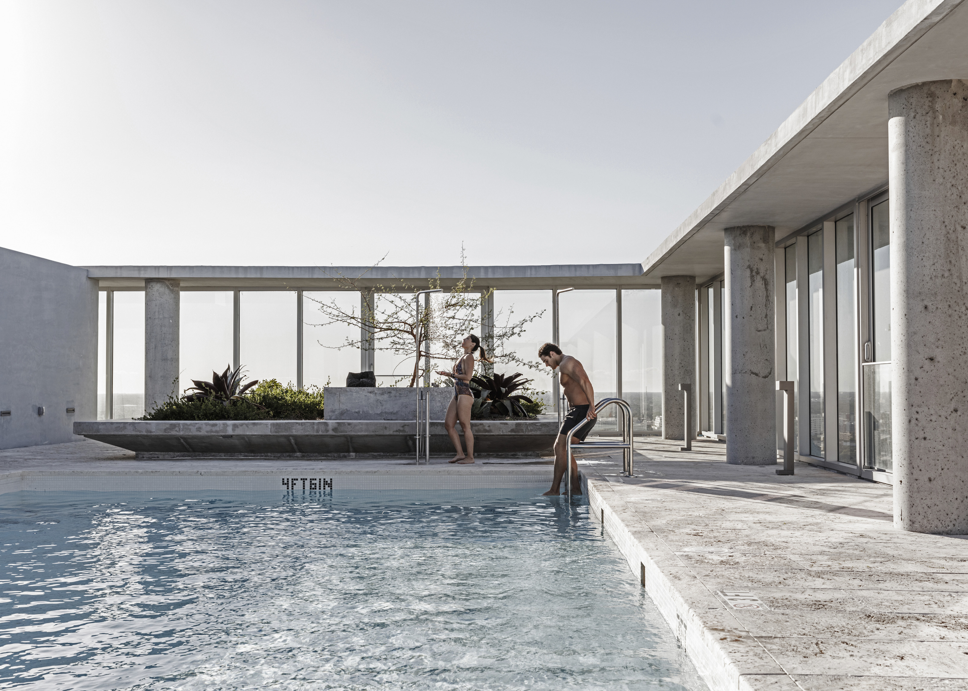 1200 Intrepid’s front façade is created by the strategic stacking of High Concrete’s precast panels of varying sizes, figured in a basket-weave pattern to realize the top of the building’s straight edge. As the panels reach upward they also tilt outward, creating an inviting, cave-like canopy over the building’s front sidewalk. Each of the building’s other three sides stand straight up, maintaining the structure’s signature paneling.