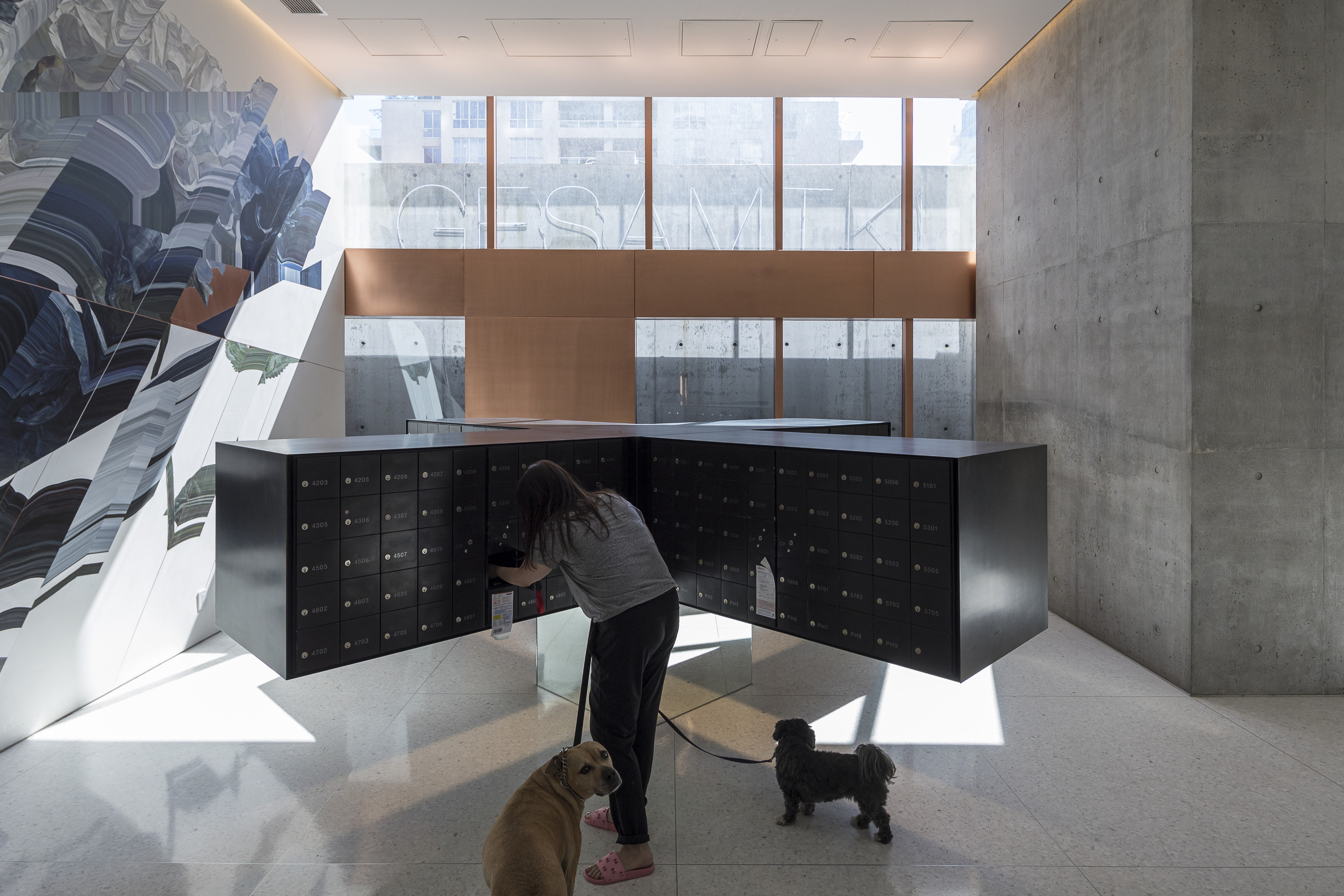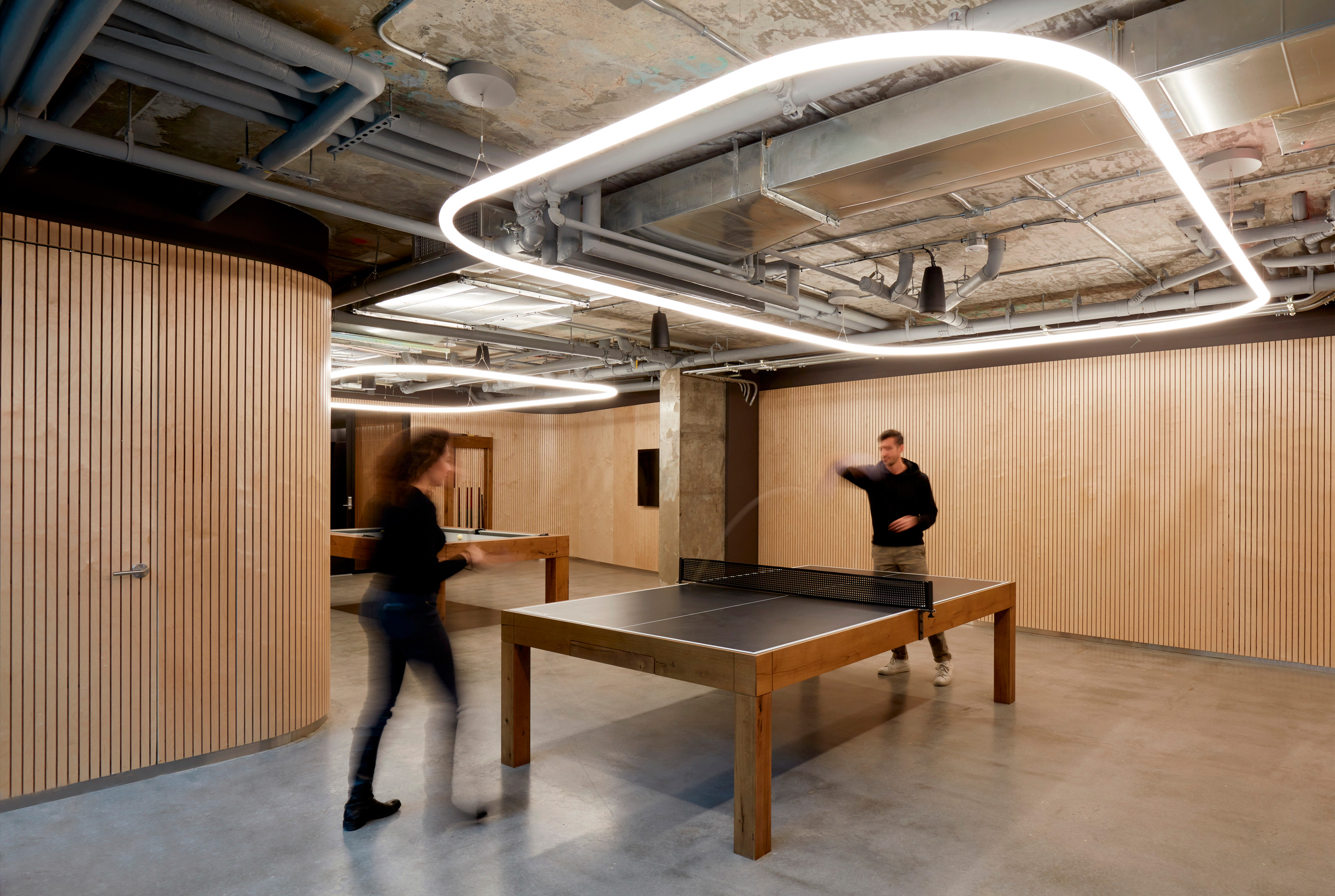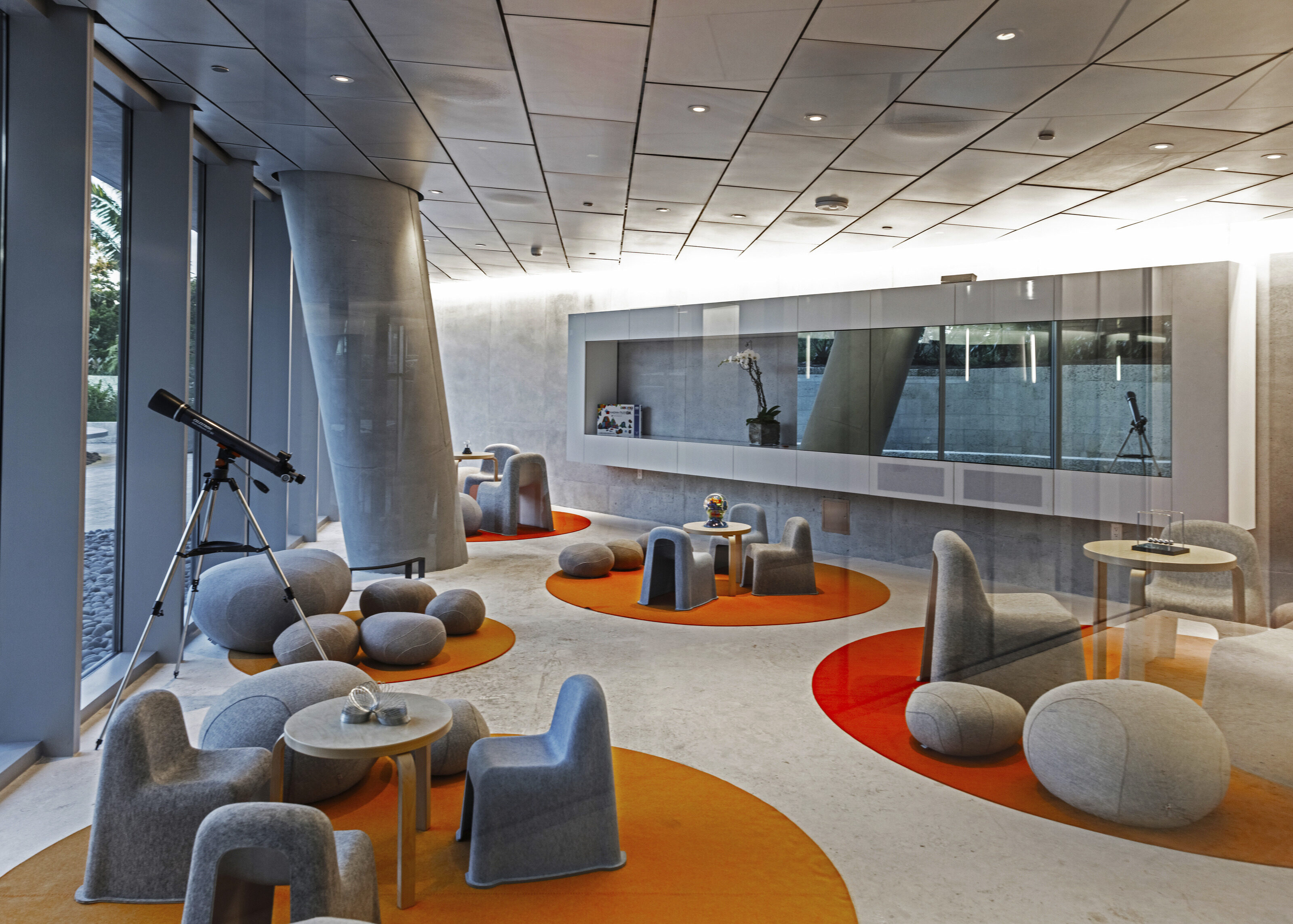 Referencing the Navy Yard’s maritime history while providing much needed natural light, a functioning periscope penetrates the core of the building, projecting views of the Navy Yard basin into the center of the elevator lobby.