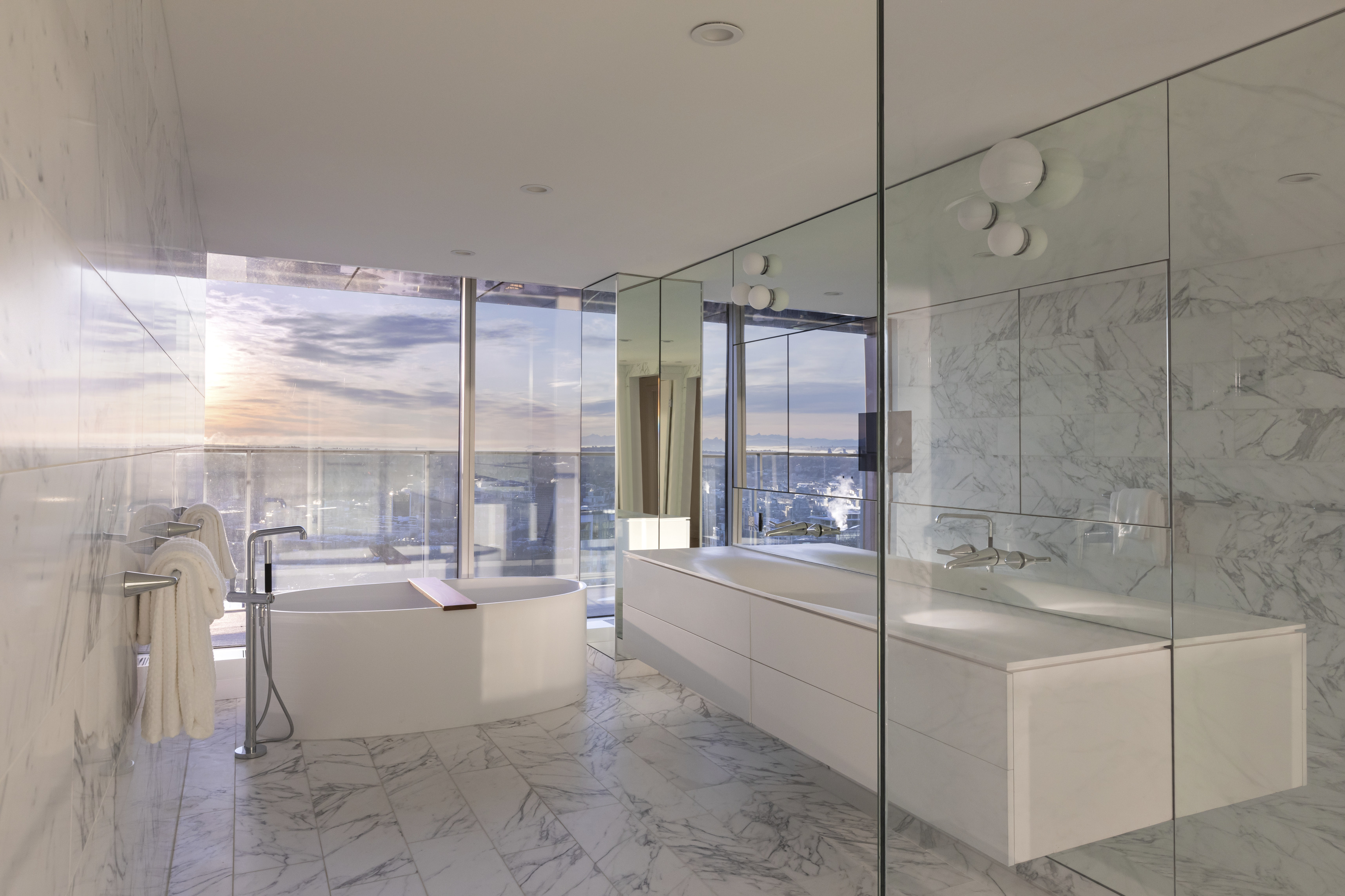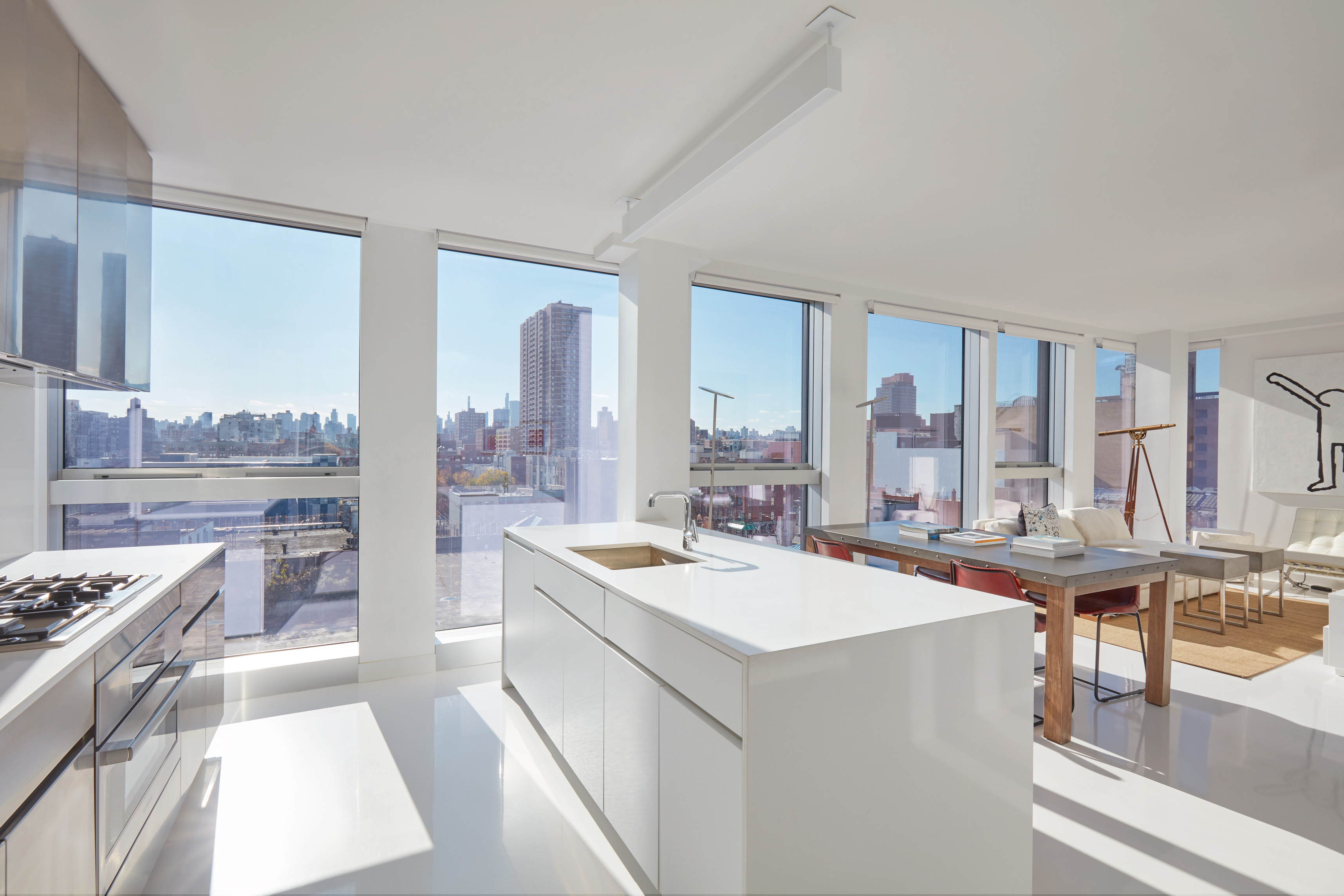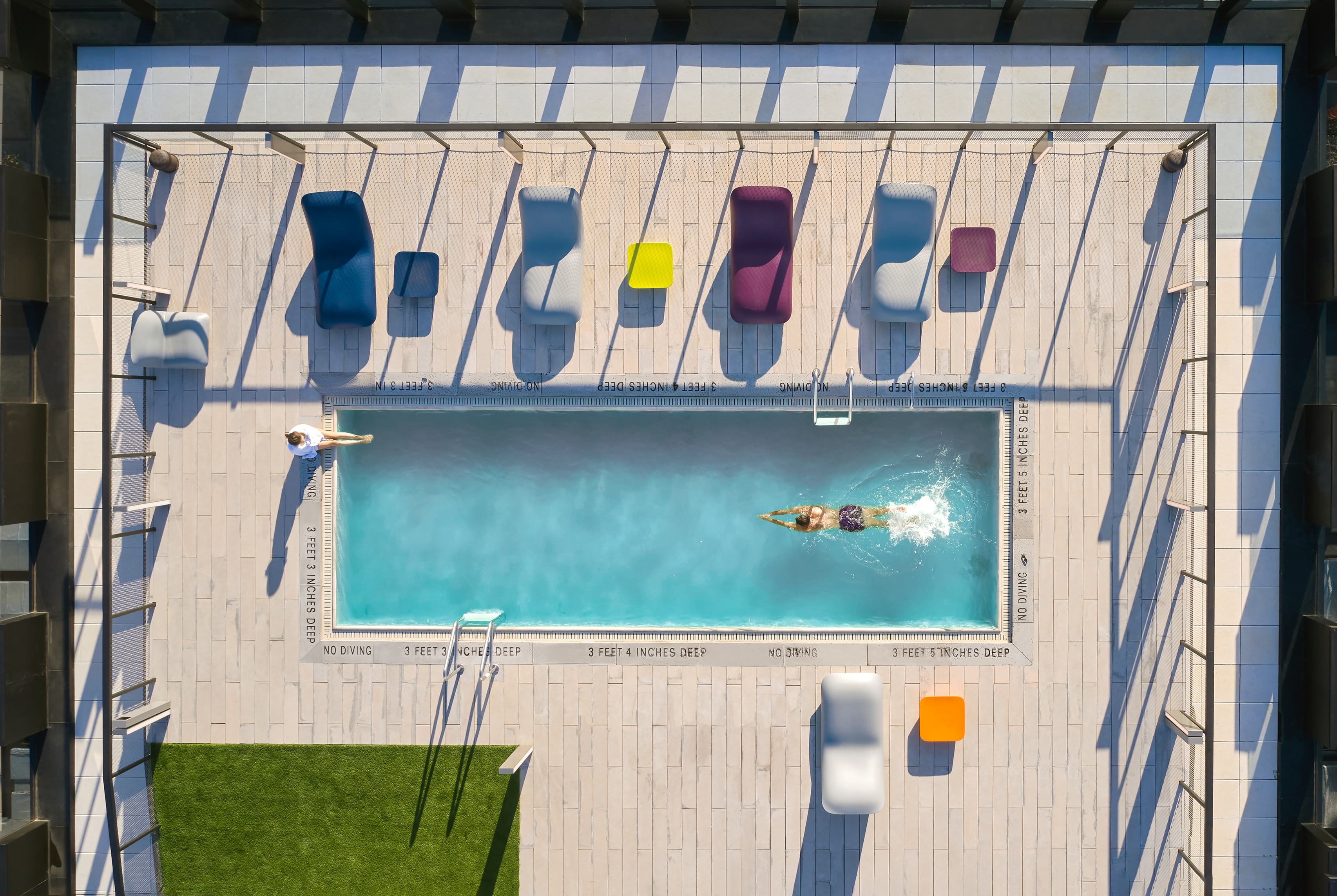 Referencing the Navy Yard’s maritime history while providing much needed natural light, a functioning periscope penetrates the core of the building, projecting views of the Navy Yard basin into the center of the elevator lobby.