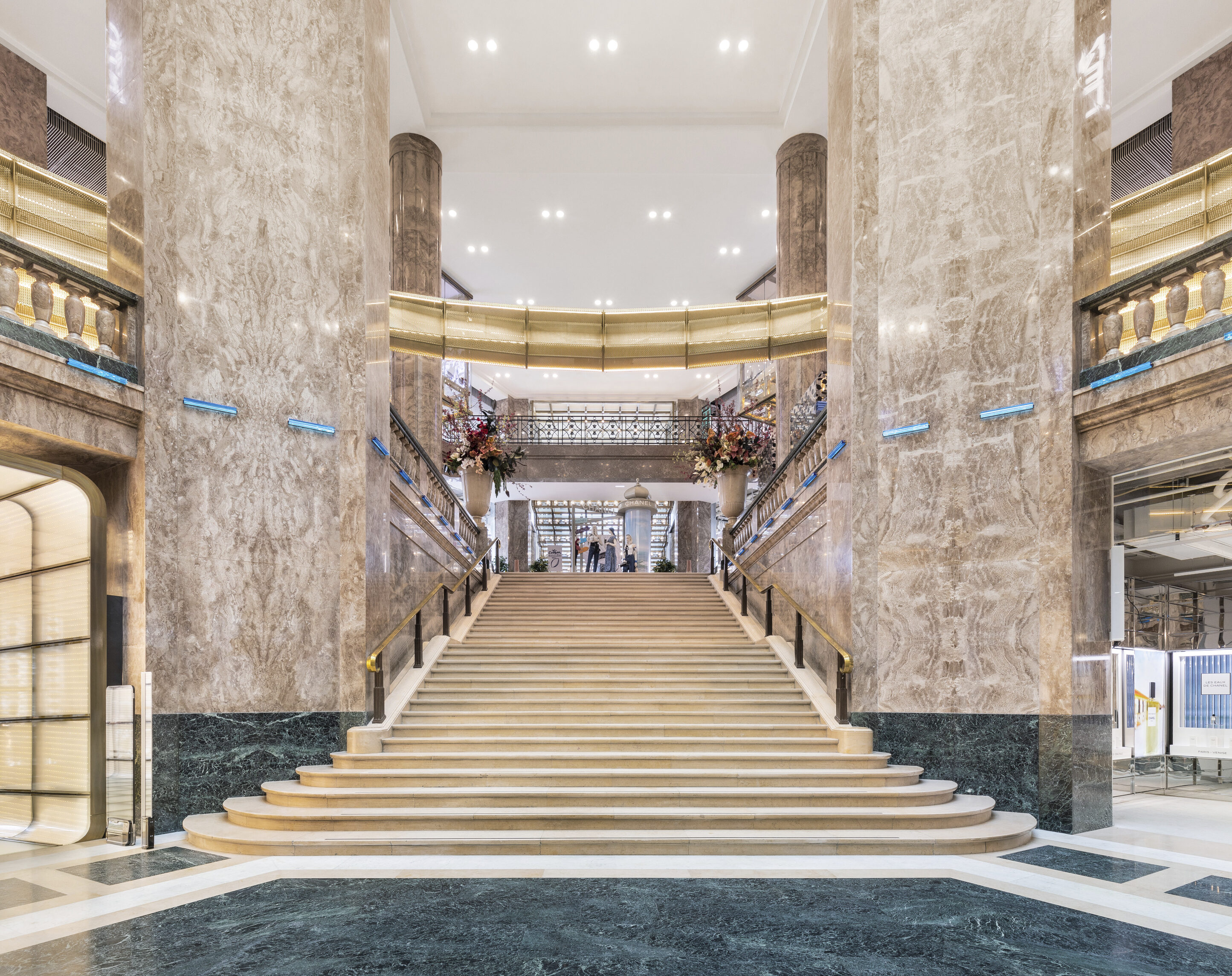 Clad in rippled and curved glass and warm-toned stainless steel, the façades reflect the surrounding sky, water, and gardens – blurring the boundaries between architecture and the natural environment. The pavilions are connected above and underground via bridges and tunnels, offering the museum flexibility to manage circulation according to seasons and exhibitions. Together, the rooms frame a sequence of gardens and courtyards, guiding visitors on a journey that intertwines art, history, nature, and water.