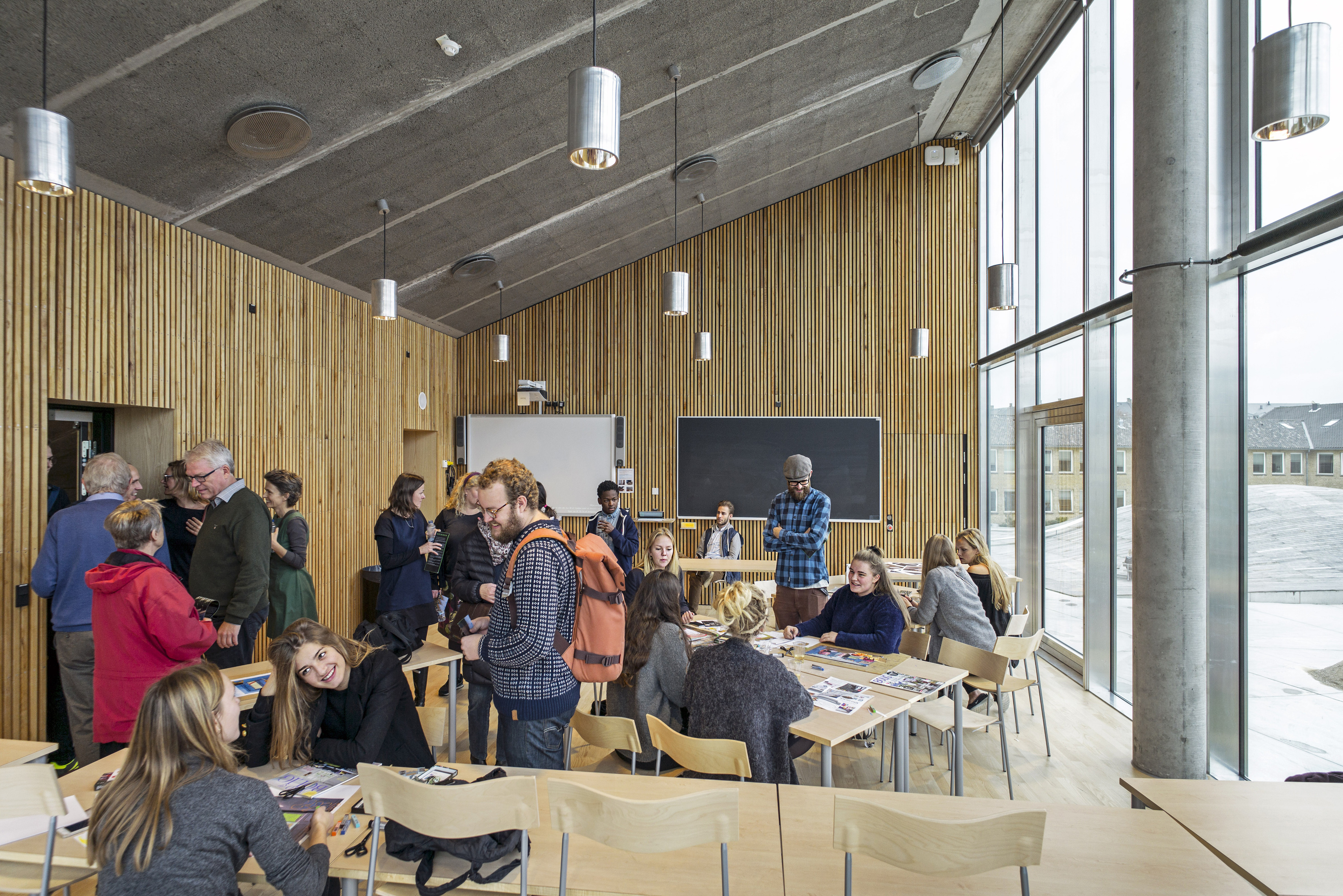 In the design concept for Ellsinore Psychiatric Clinic BIG steered clear of all clinical stereotypes: the traditional hospital hallway without windows and rooms on both sides; artificial easy-cleaning materials like plastic paint, linoleum floors or ceilings made of gypsum, etc. Instead, all materials have their natural surfaces. Cast floors in concrete or lively colors and walls made of glass, wood and concrete. Functionally the hospital is tailor-made to modern psychiatric treatment and therapy. Experientially the hospital appears as anything but a hospital.