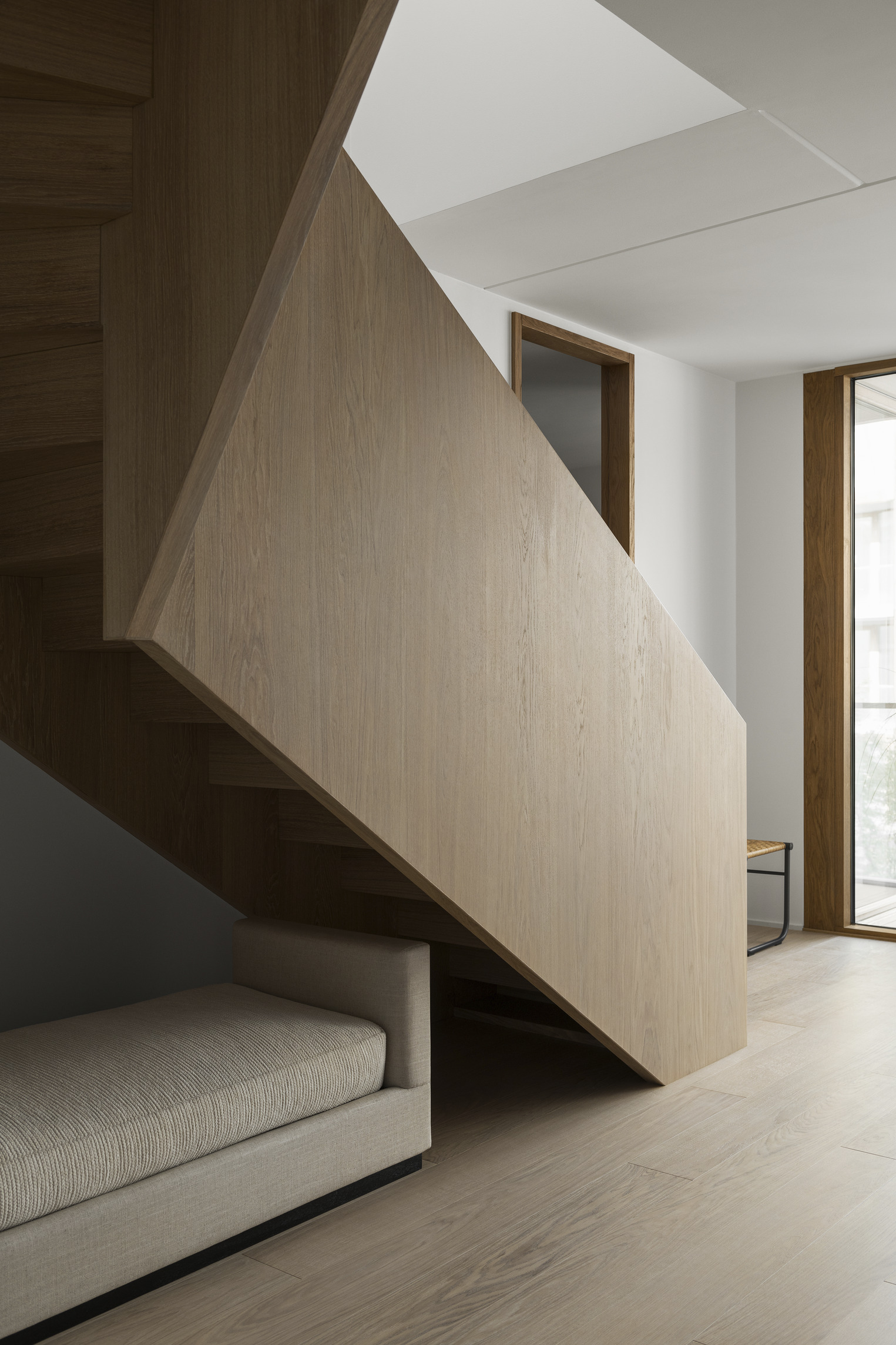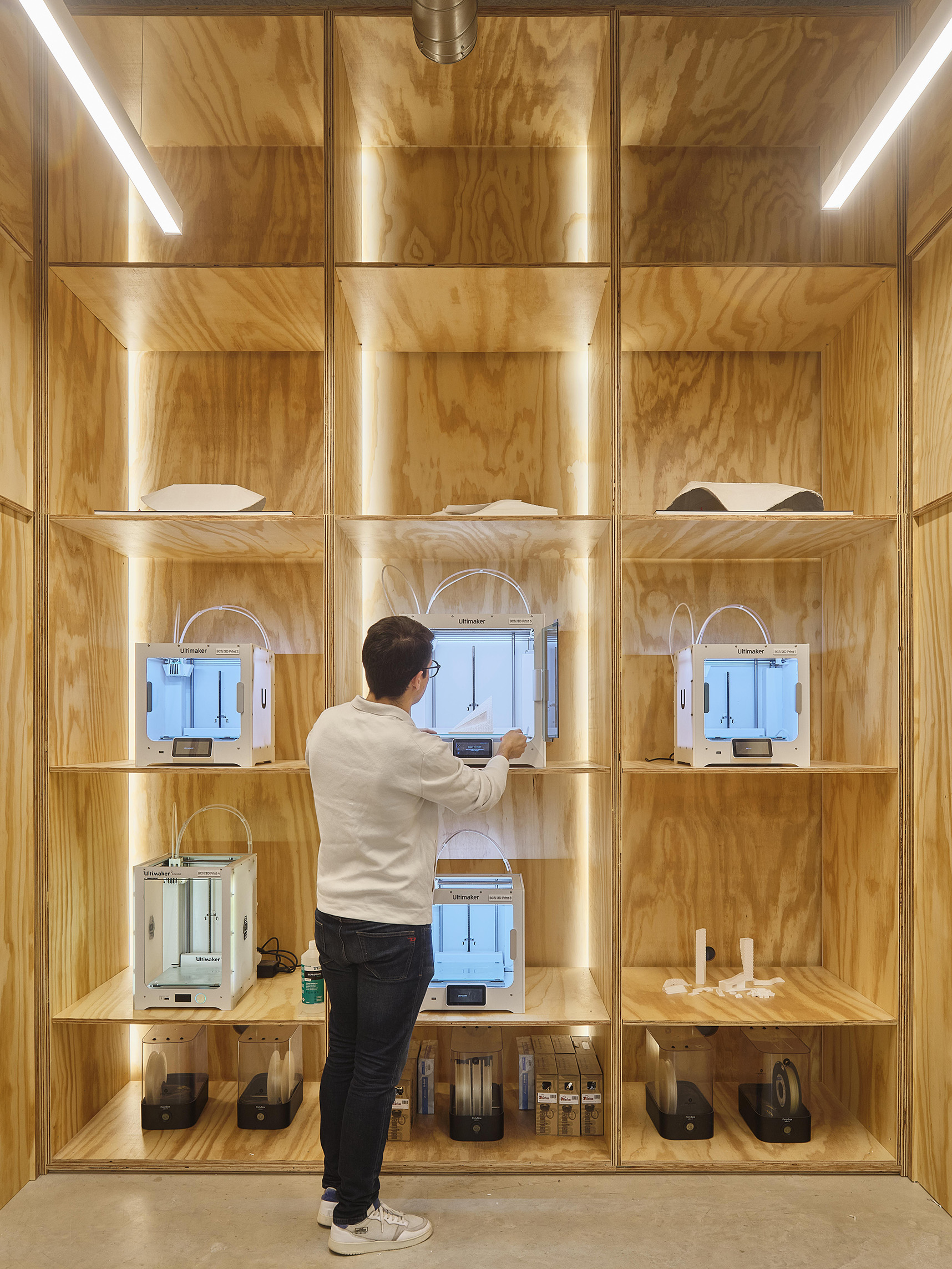 Inside, a central staircase leads to a sun-drenched ‘living room’ that anchors the heart of the building, surrounded by spaces tailored to the needs of the Hopkins community. The timber structure creates a warm and acoustically comfortable environment, while the clerestory windows set between the roof planes bring natural light deep into the interior.