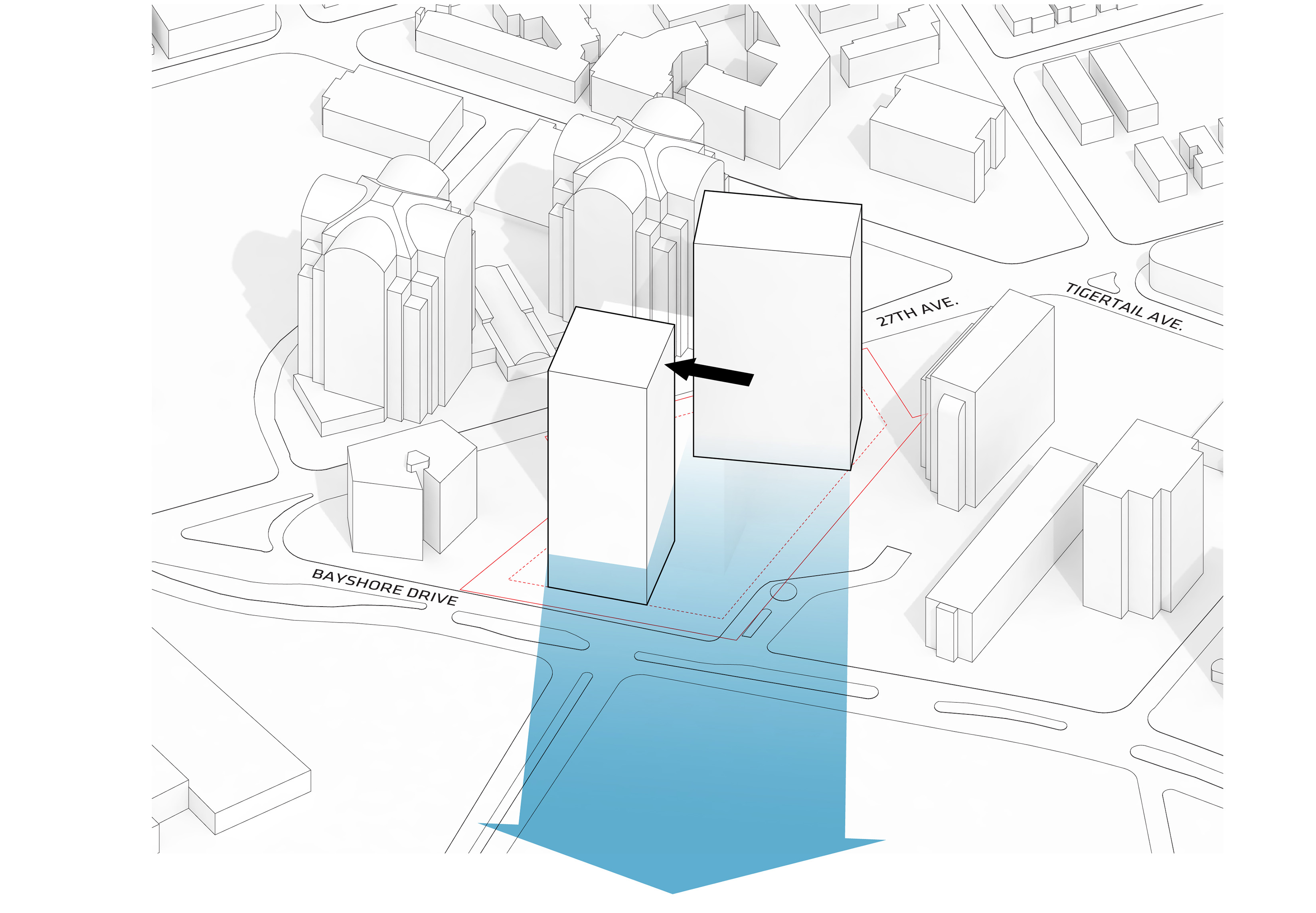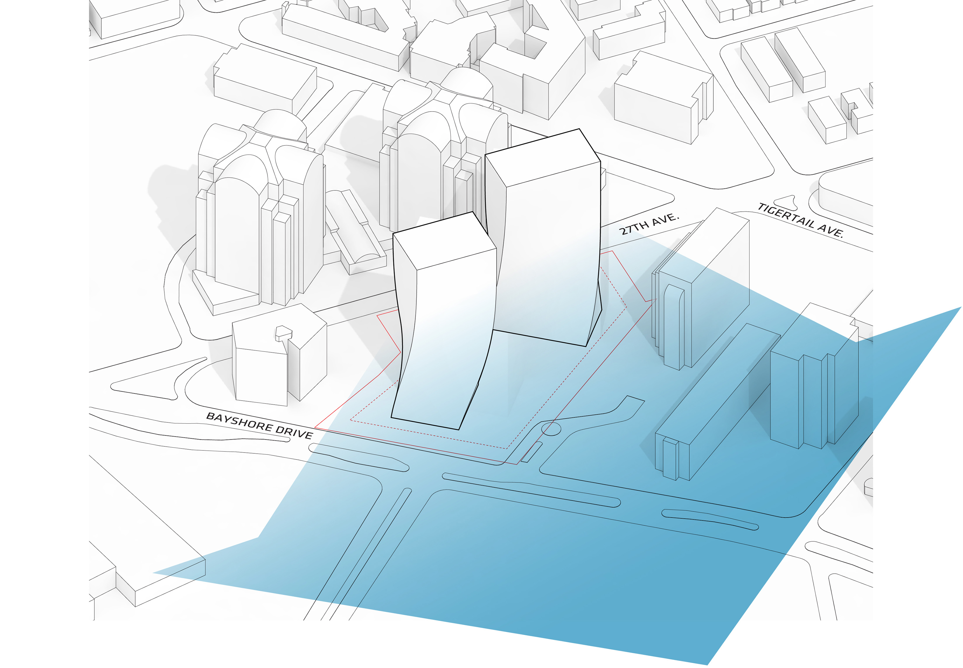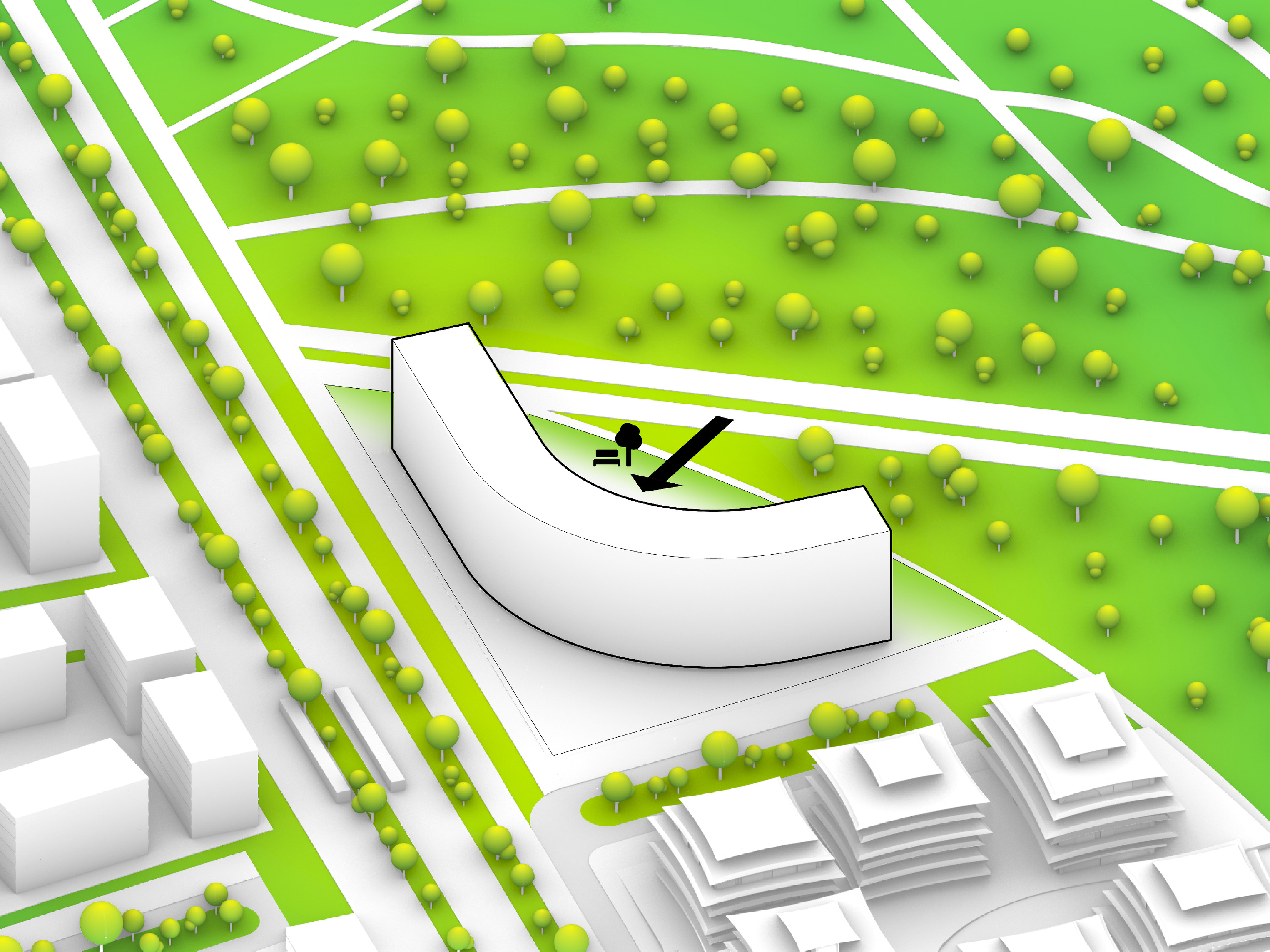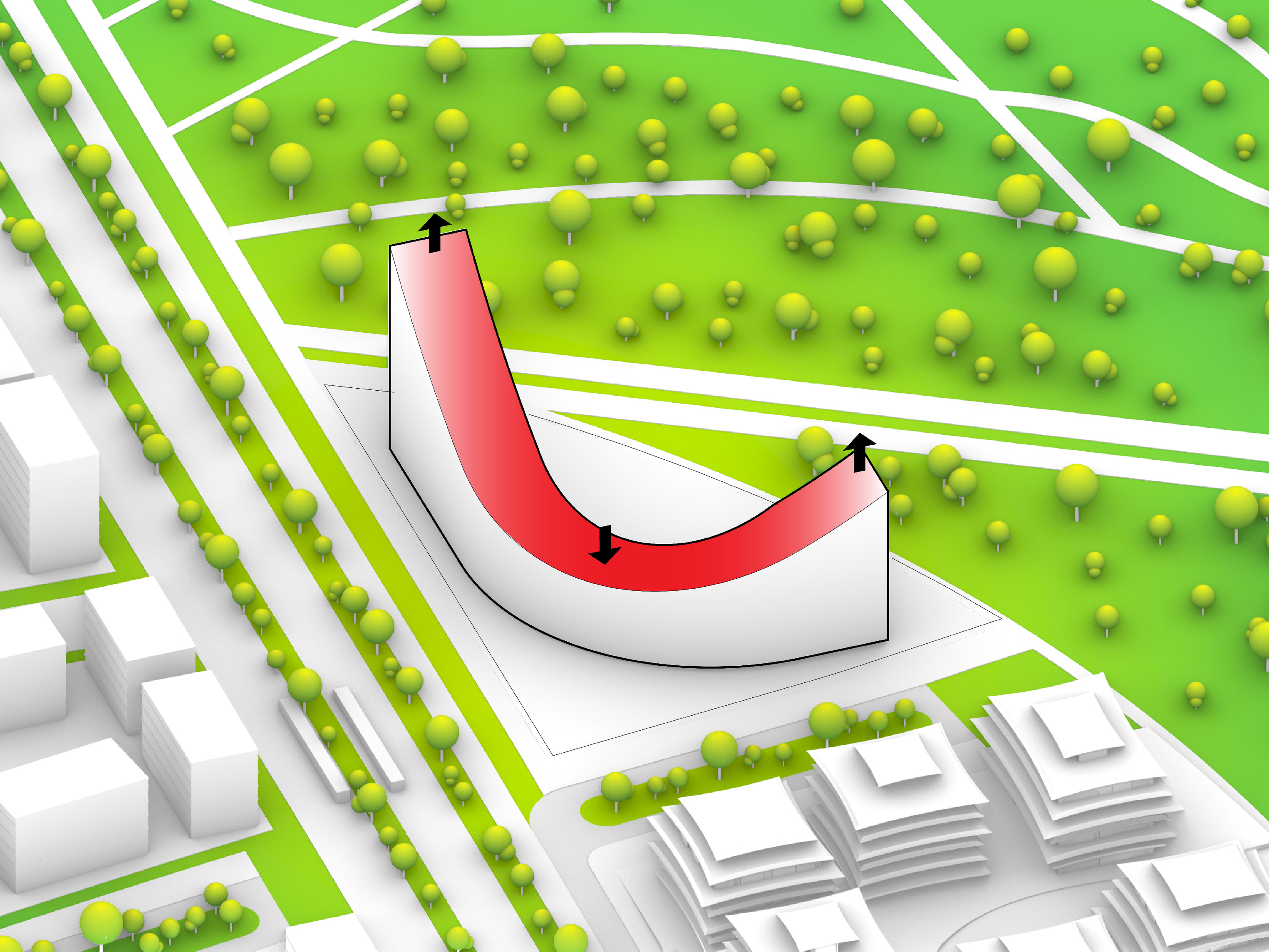 The residential towers are oriented to limit view obstruction from the neighborhood and maximize the Metropolitan Avenue view corridor. Blending the towers with the landscape softens the relationship between building and park, forming a gateway that welcomes the community to the water.
