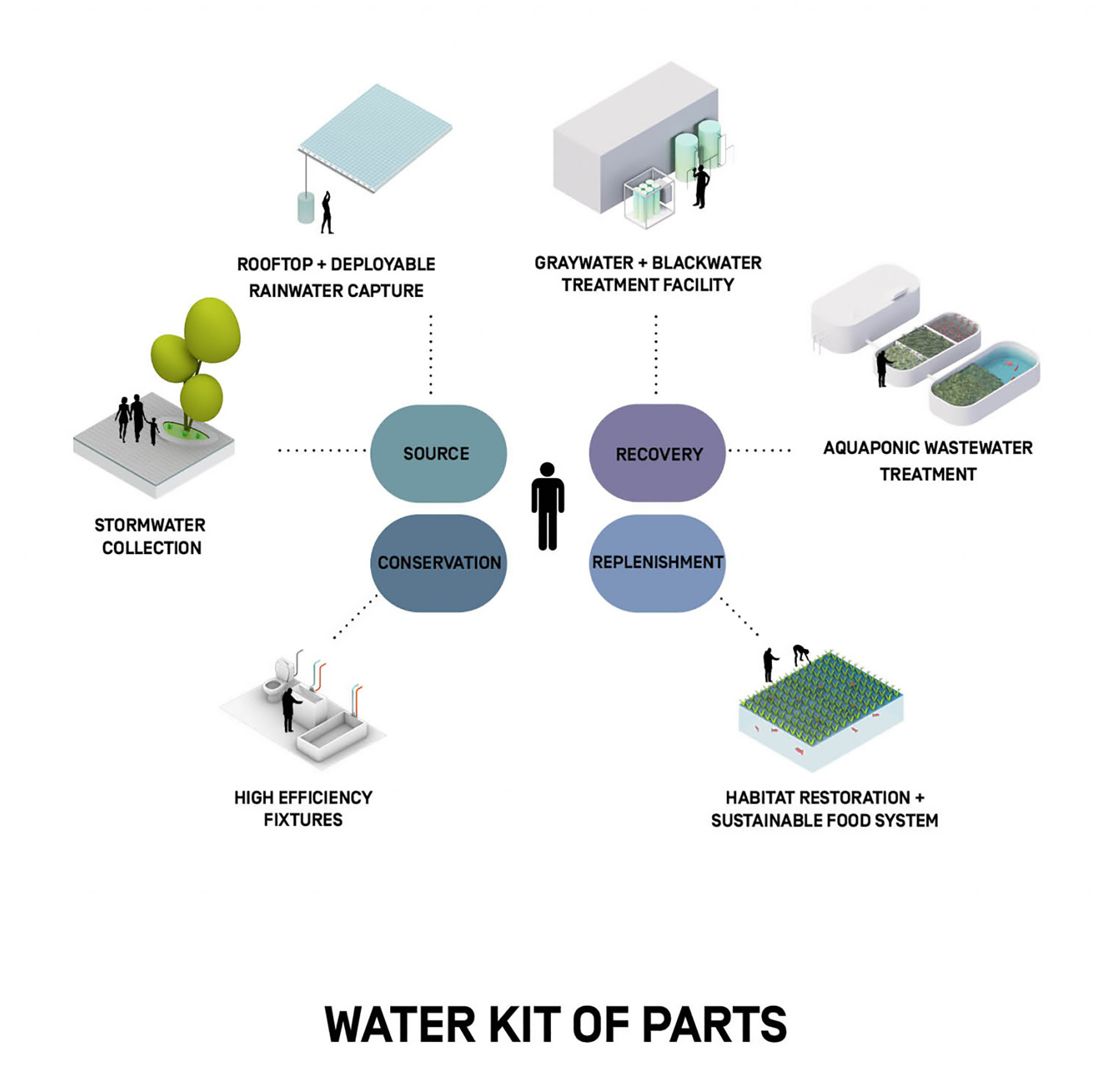 Telosa will provide a model of how best to incorporate an existing natural environment into a new city’s design and operations to ensure continuity of the natural resource flow. The air quality of the region will be maintained by banning fossil-fuel vehicles, requiring zero stack emissions, and minimizing the heat-island impact of the city to avoid associated air quality issues. Maximum permeability of the city’s footprint for water infiltration and groundwater recharge will require green infrastructure with all buildings, thoroughfares, and open spaces.