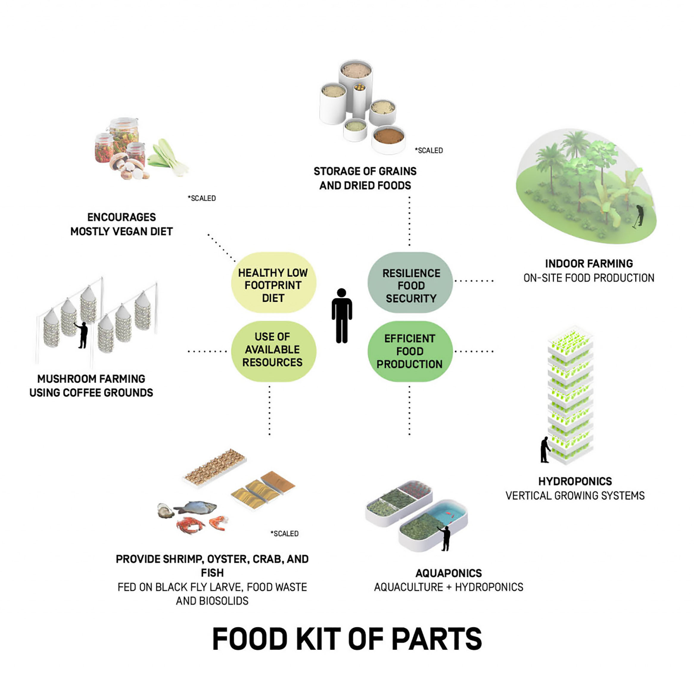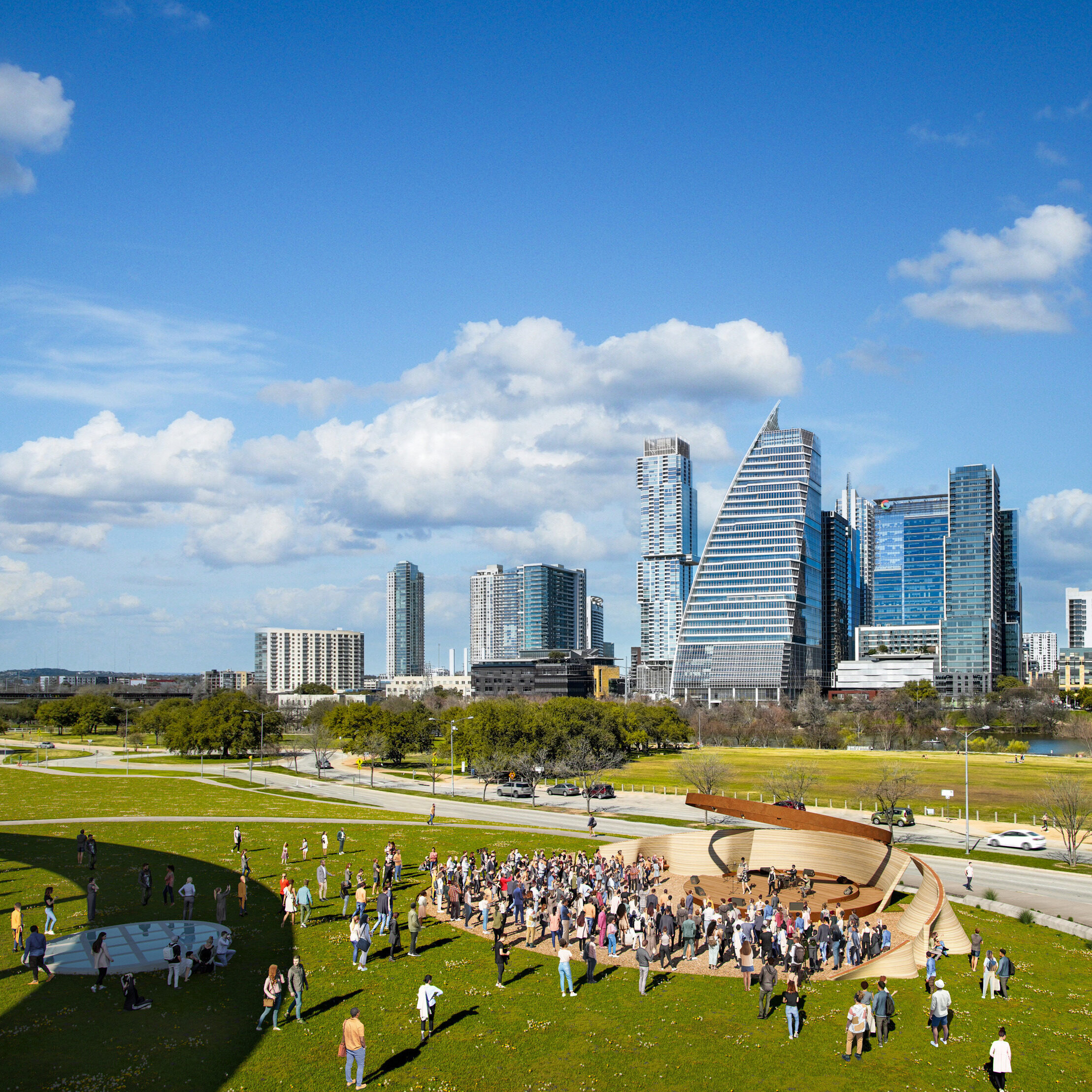 A timber skyscraper dubbed “Equitism Tower” in recognition of Telosa’s new economic model for society is planned to serve as a beacon for the city. Telosa envisions transparent governance through Equitism, a model based on the premise that citizens should have a stake in the land; as the city does better, the residents do better. With Equitism, Telosa aims to create a much higher level of social services offered to residents without additional burdens on taxpayers. Equitism Tower’s projected features include space for water storage, aeroponic farms, and a photovoltaic roof.