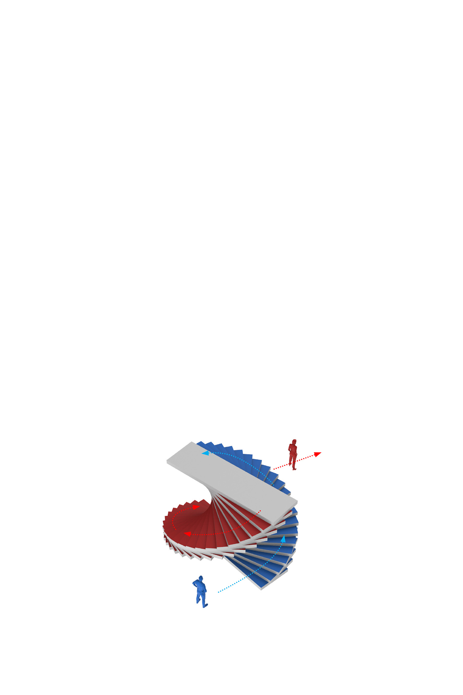 The design of the double helix means visitors traverse 146 steps on the way up and 131 steps on the way down. Each direction wraps around the elevator located at the core of the tower which allows access for wheelchair users.