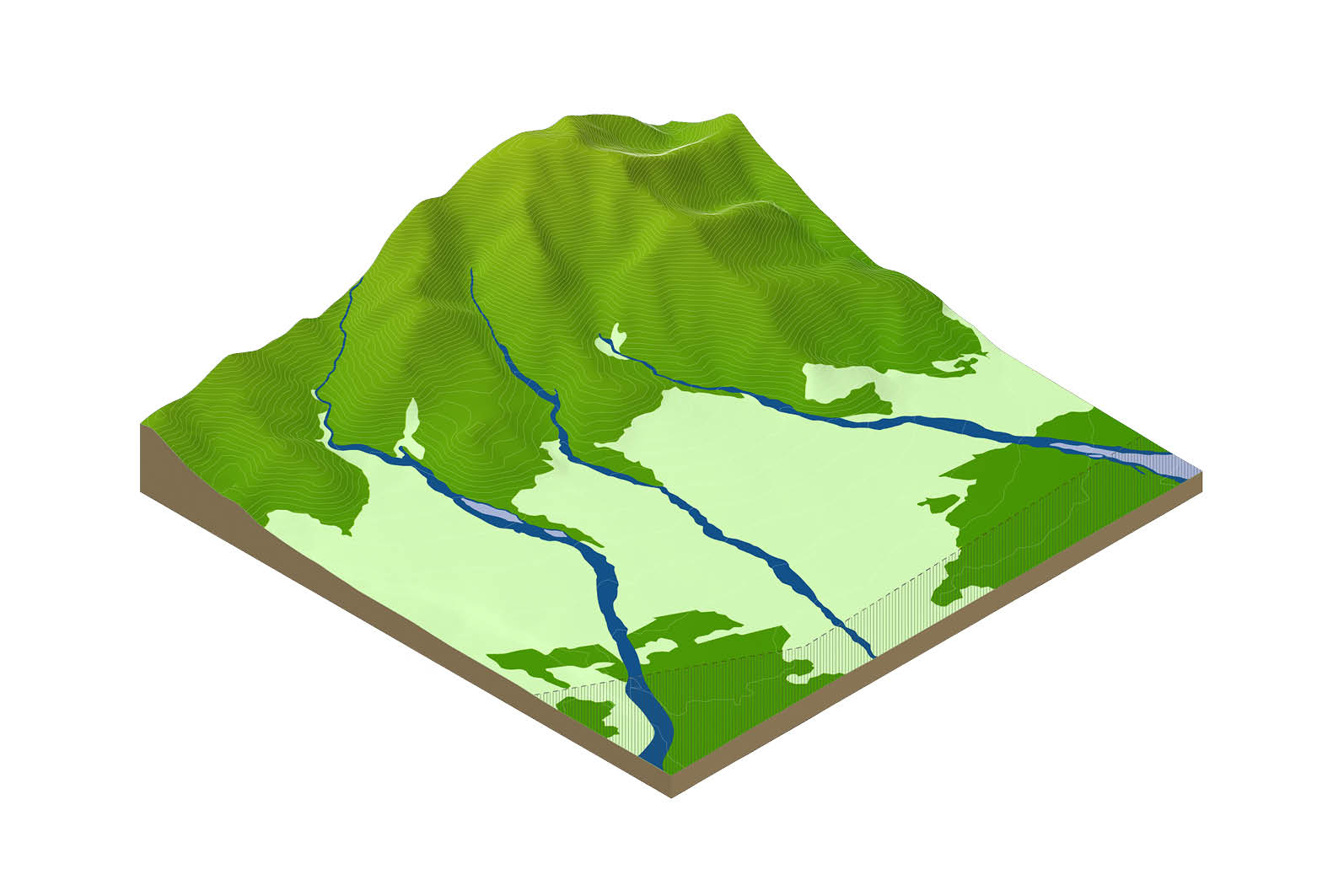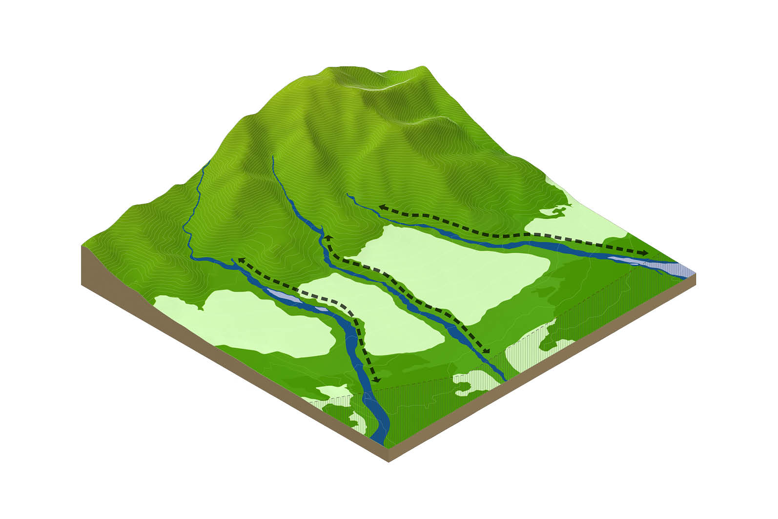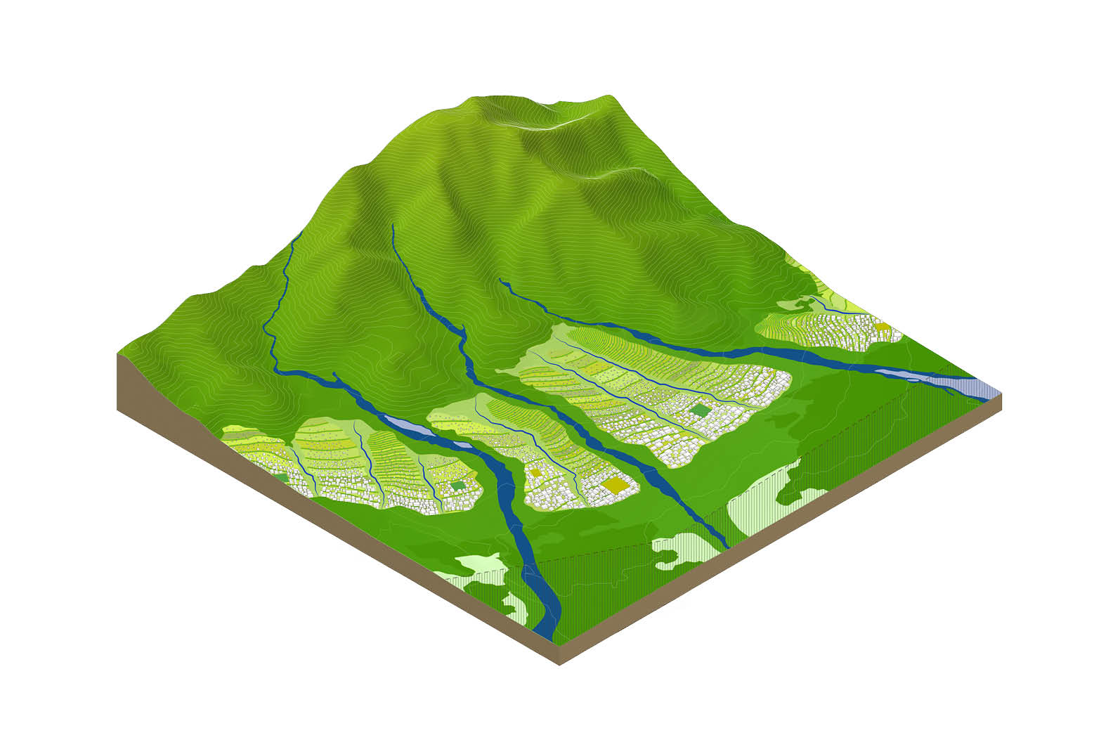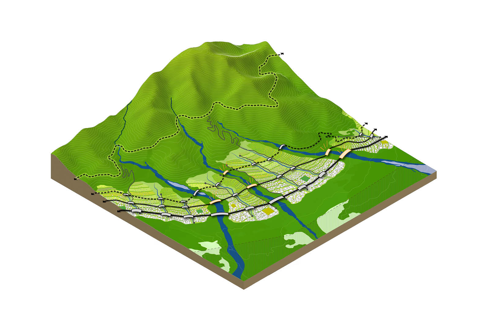 The third type of street is the linear park – a path dedicated to pedestrians, flora, and fauna. An intimate trail provides a safe and pleasant environment for leisurely strolls and nature breaks through the ecological corridor connecting Mount Fuji to the Susono Valley.